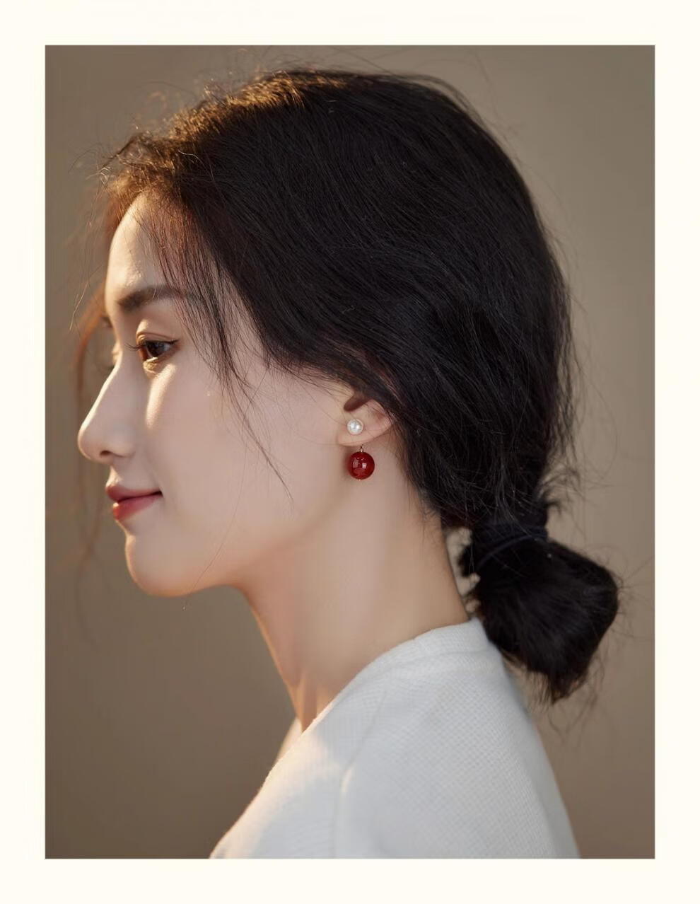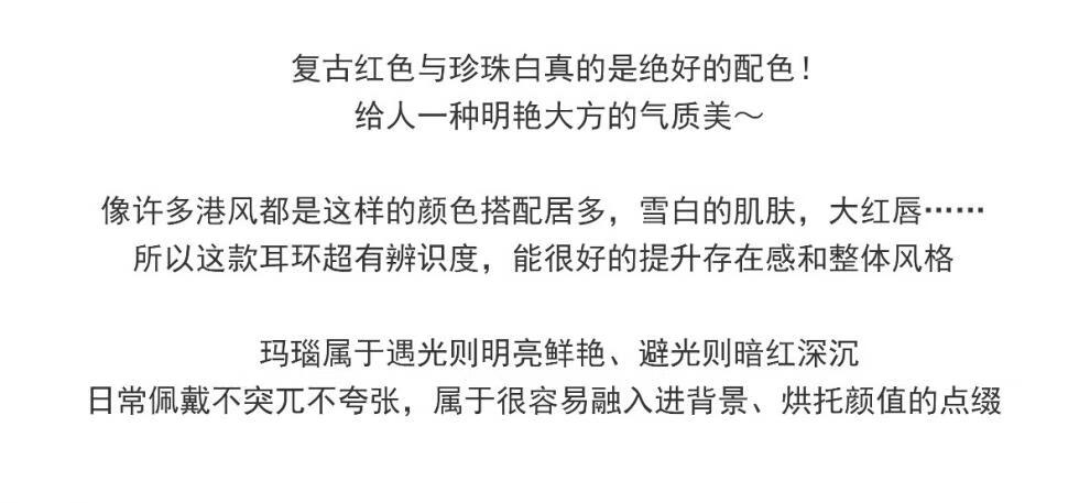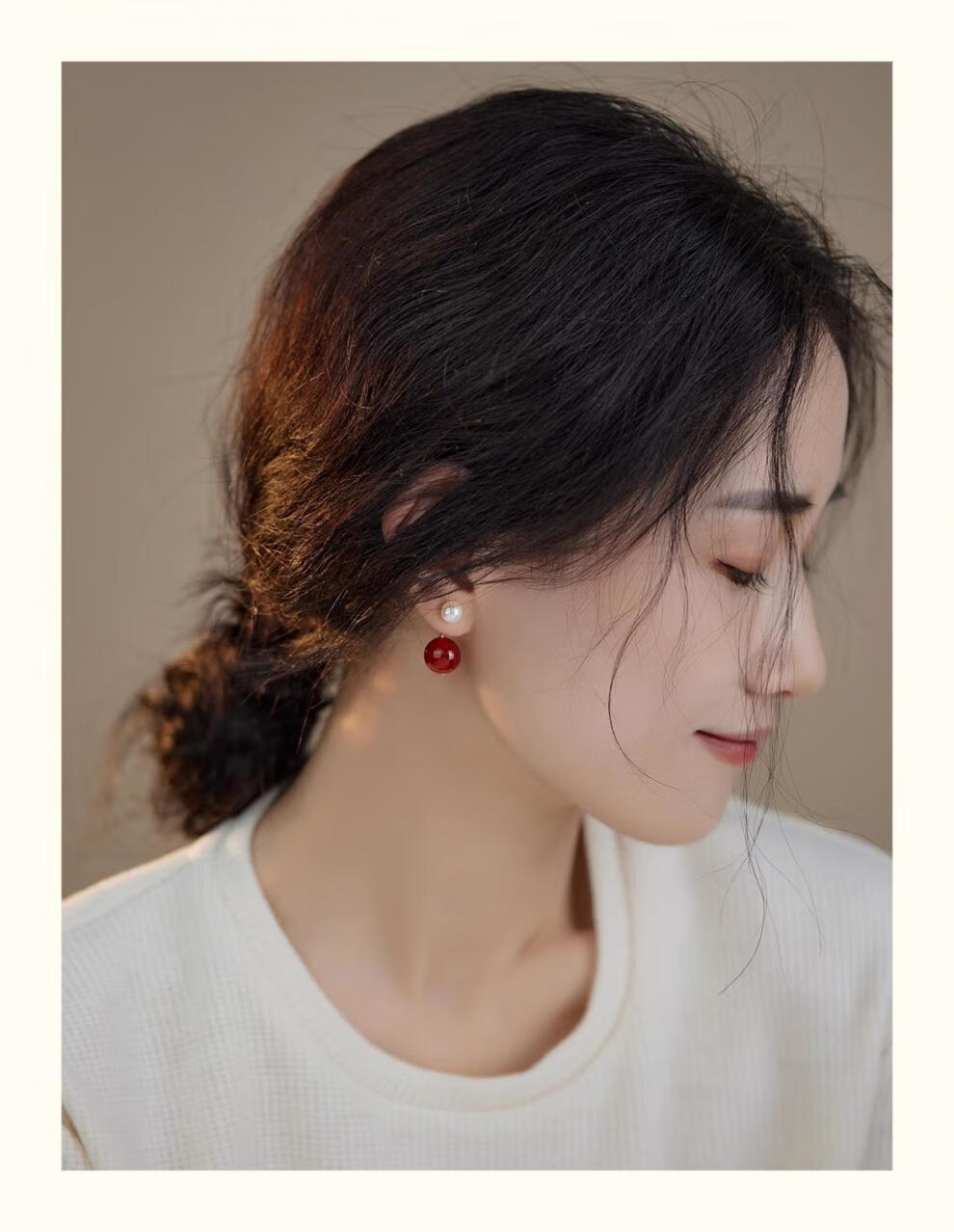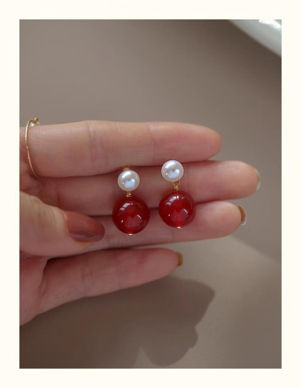 墨利亚(Meliades)复古红色玛瑙珍珠耳钉14K包金耳环耳夹法式轻奢高级气质耳坠ins 珍珠玛瑙复古红色耳钉