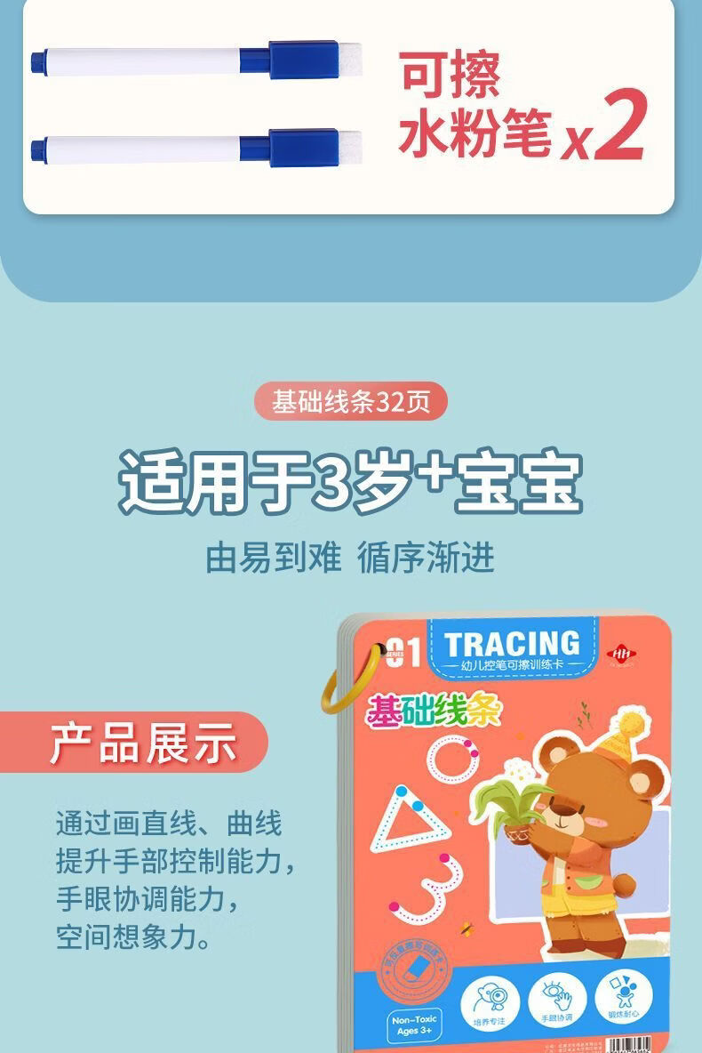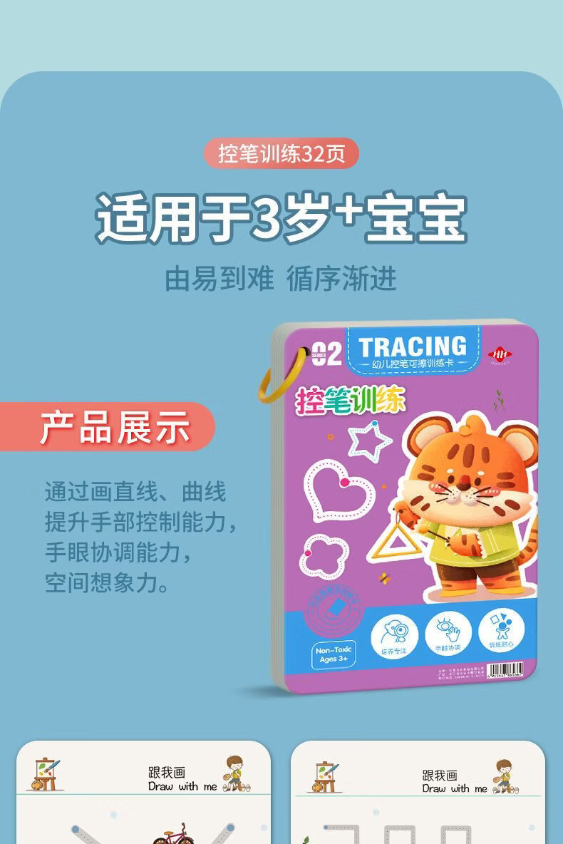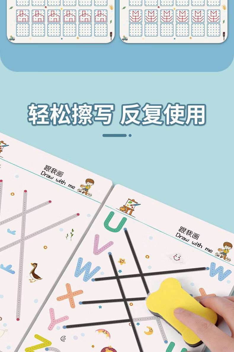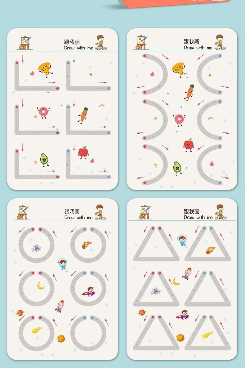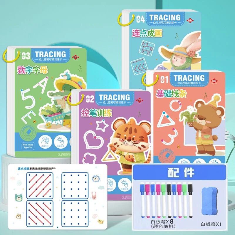 控笔训练幼儿园儿童擦写练习宝宝专注力卡早教启蒙思维益智玩具 【全套四本装】128页+4笔1擦