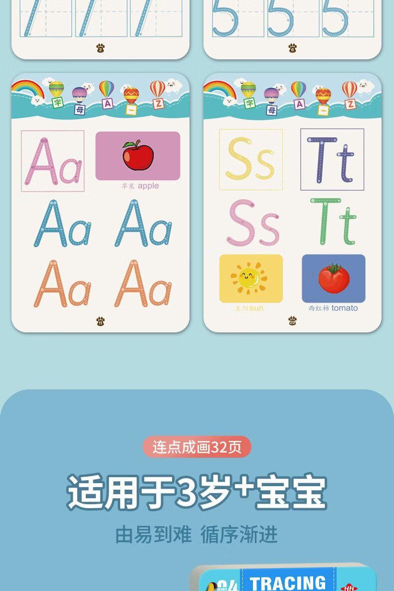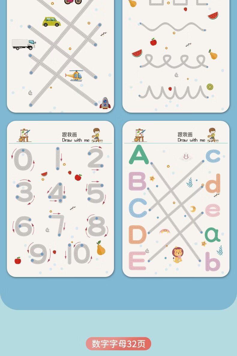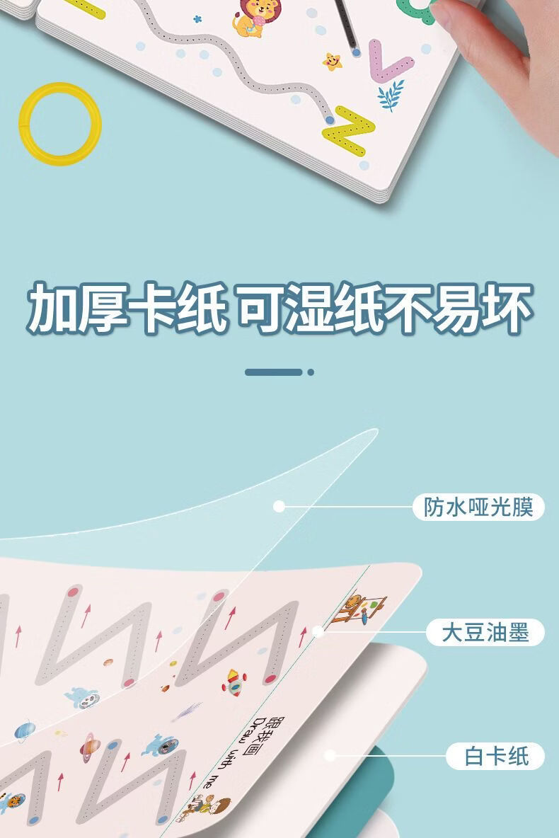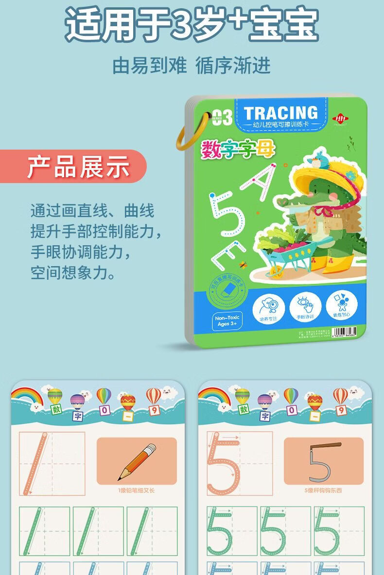 控笔训练幼儿园儿童擦写练习宝宝专注力卡早教启蒙思维益智玩具 【全套四本装】128页+4笔1擦