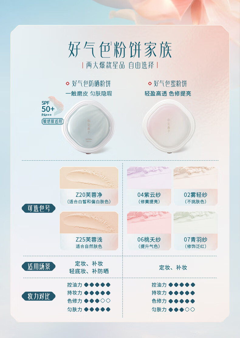 花西子【爆款】好气色防晒粉饼Z25 定妆四合一提亮修容9g生日礼物女