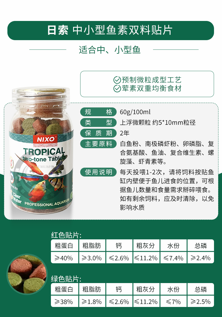 日索NIXO小型鱼饲料仿红虫贴片鱼食慈鲷孔雀灯鱼观赏鱼小颗粒日索鱼粮 小型鱼均衡微颗粒 100ml/55g 上浮