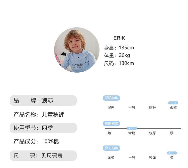 浪莎儿童秋裤男童纯棉单件儿童衬裤中大童棉毛裤薄款保暖裤 蓝色 170(建议身高160-170)