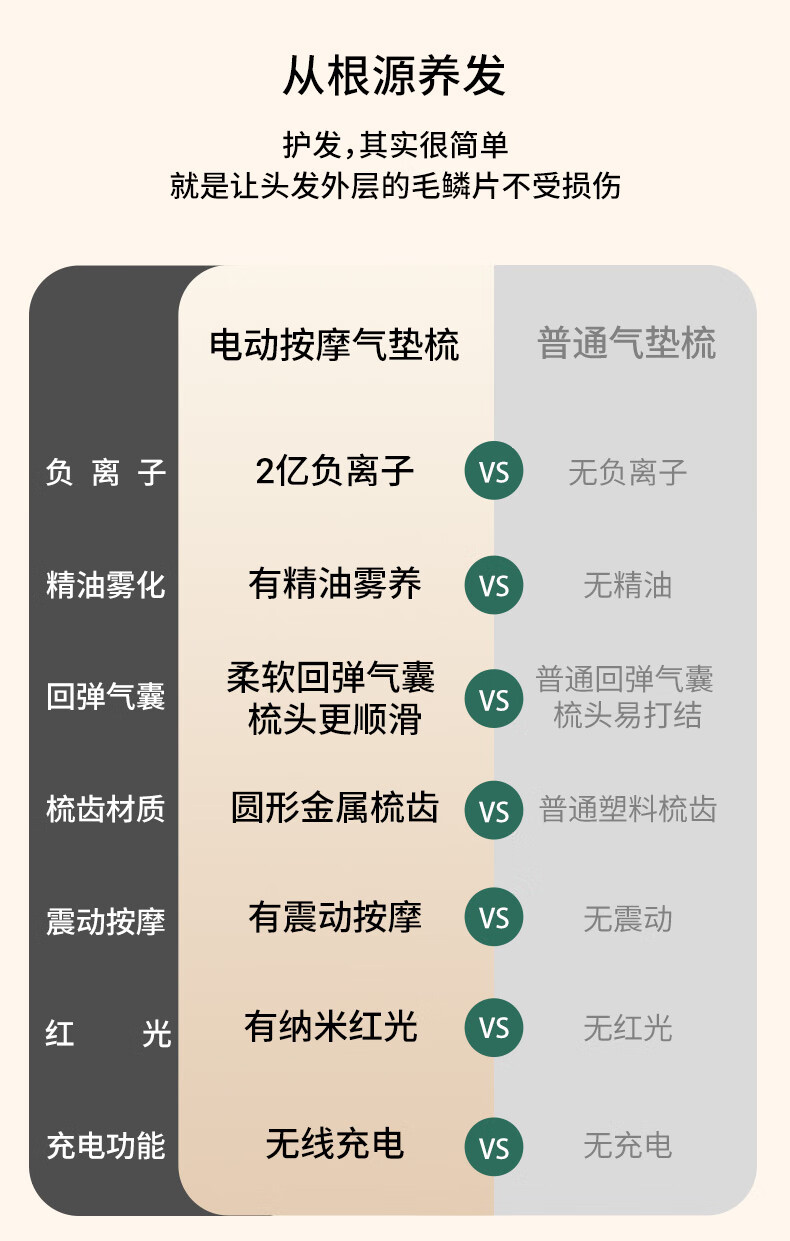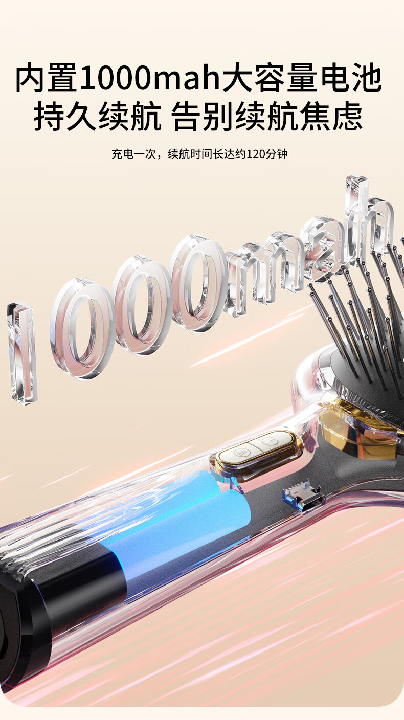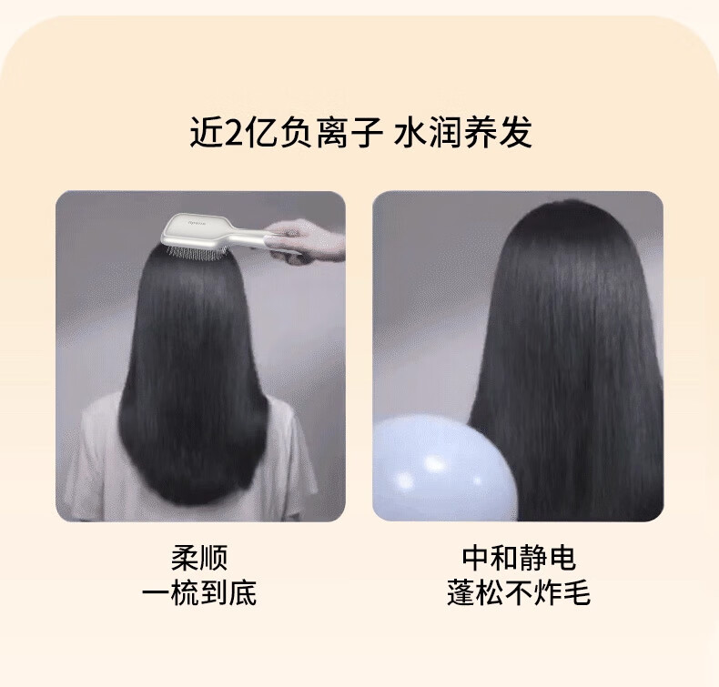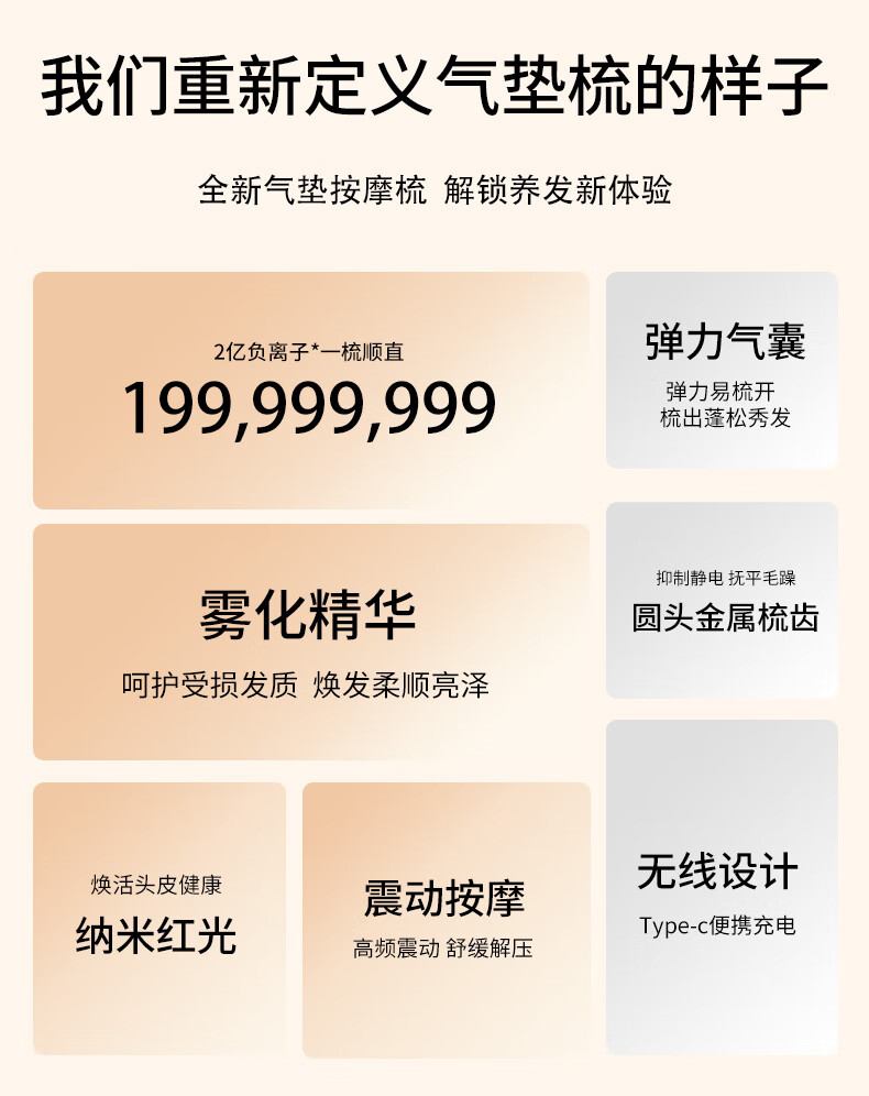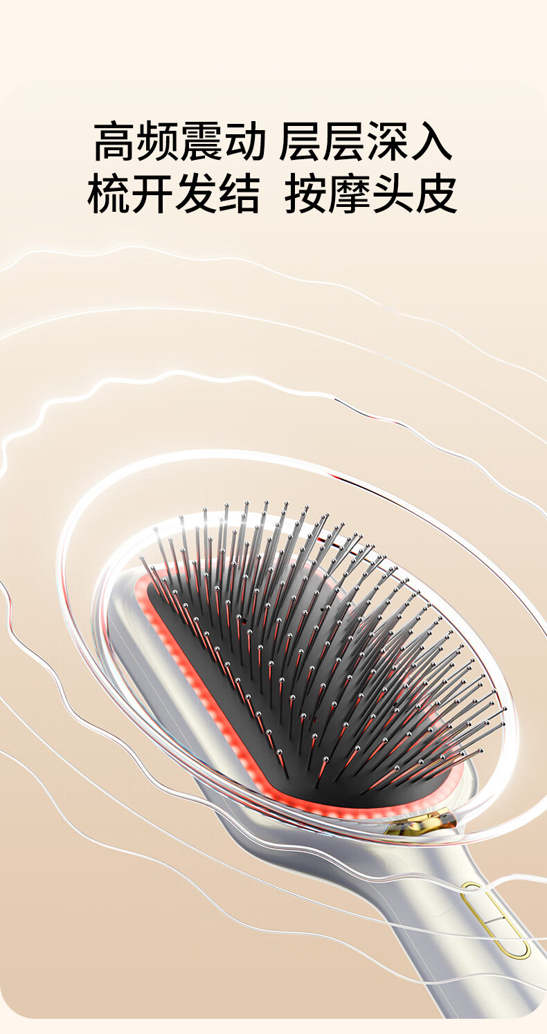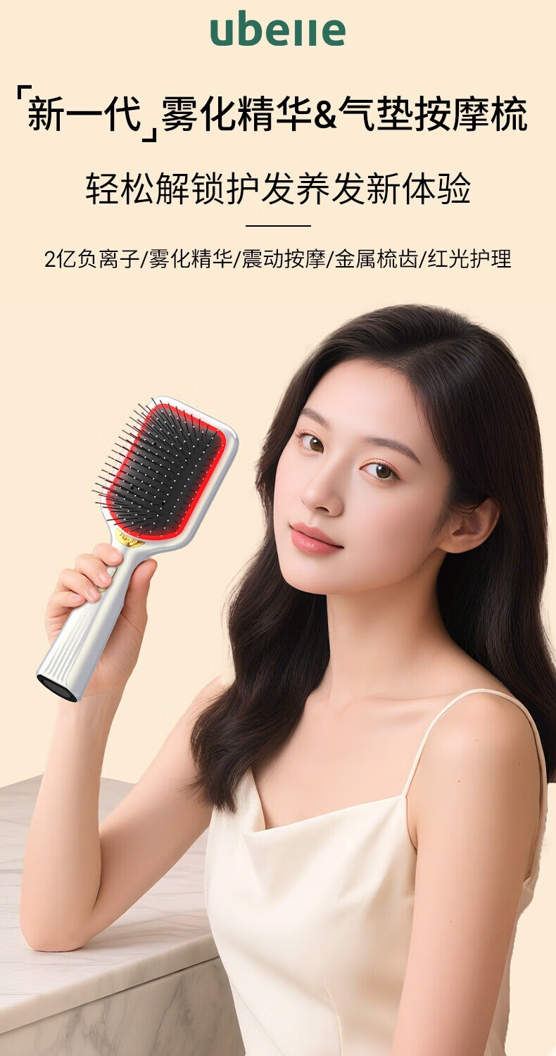 UBelle负离子气垫梳精油红光按摩大板梳生发梳通用型造型生日节日礼物 冷雾白气垫梳【雾化精华2亿负离子电动按摩红光护理]