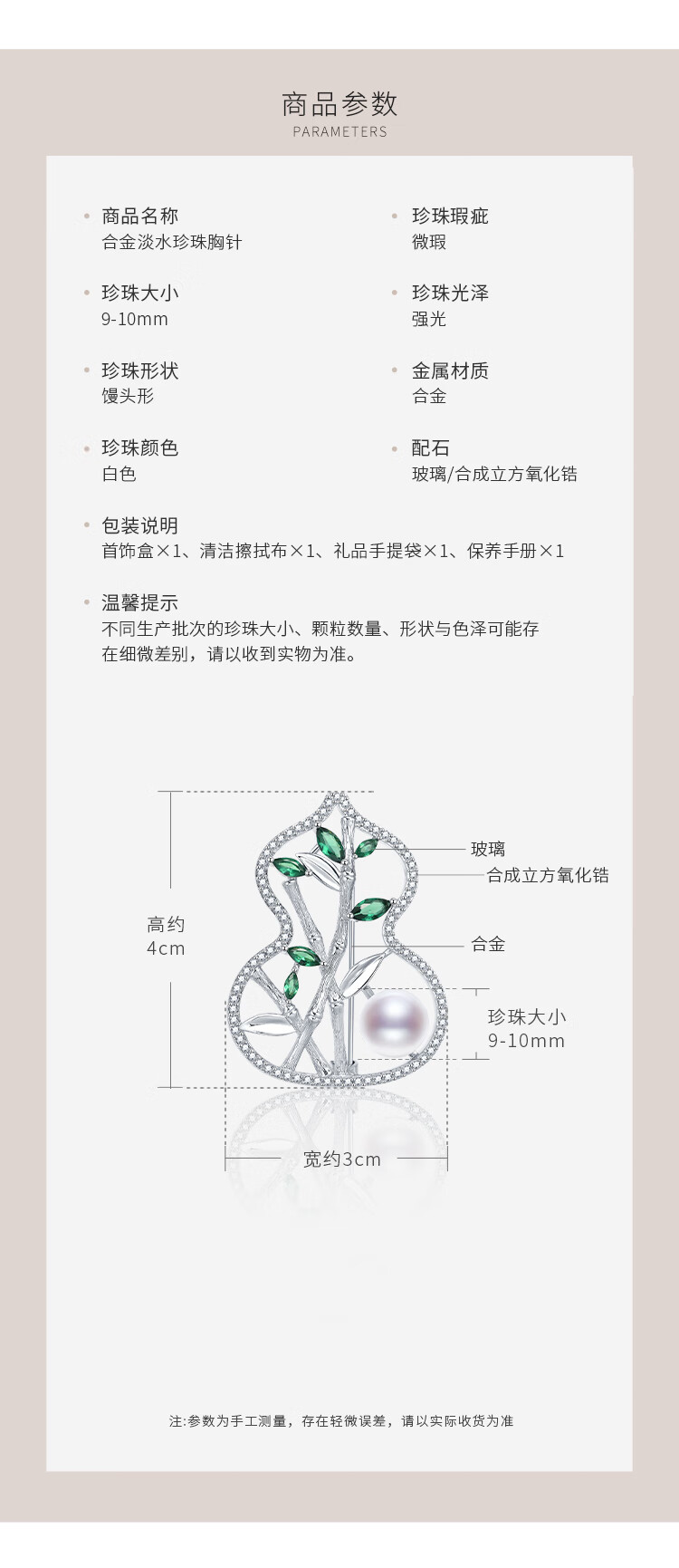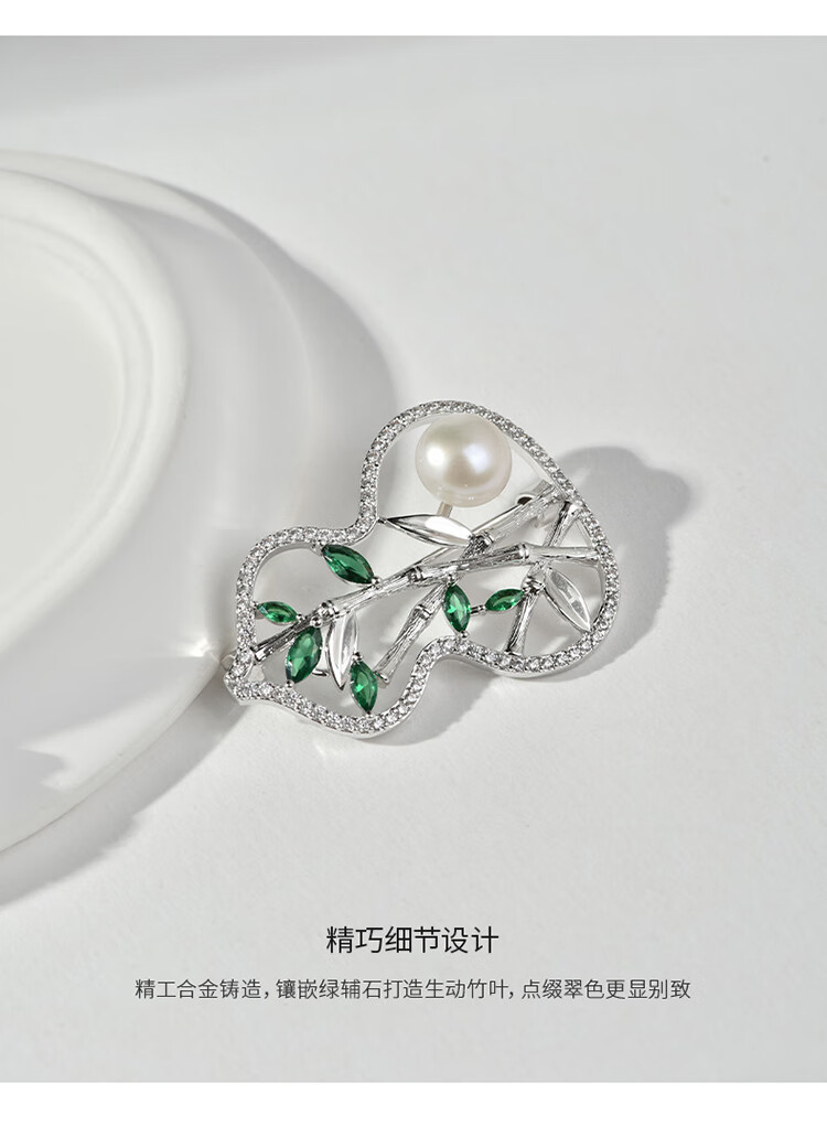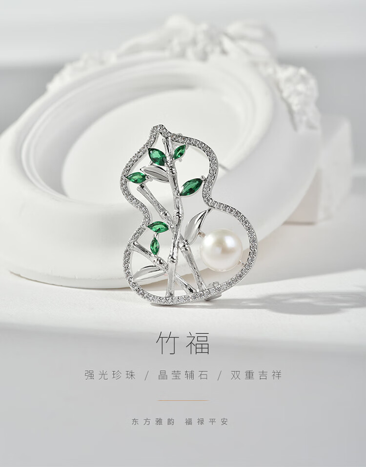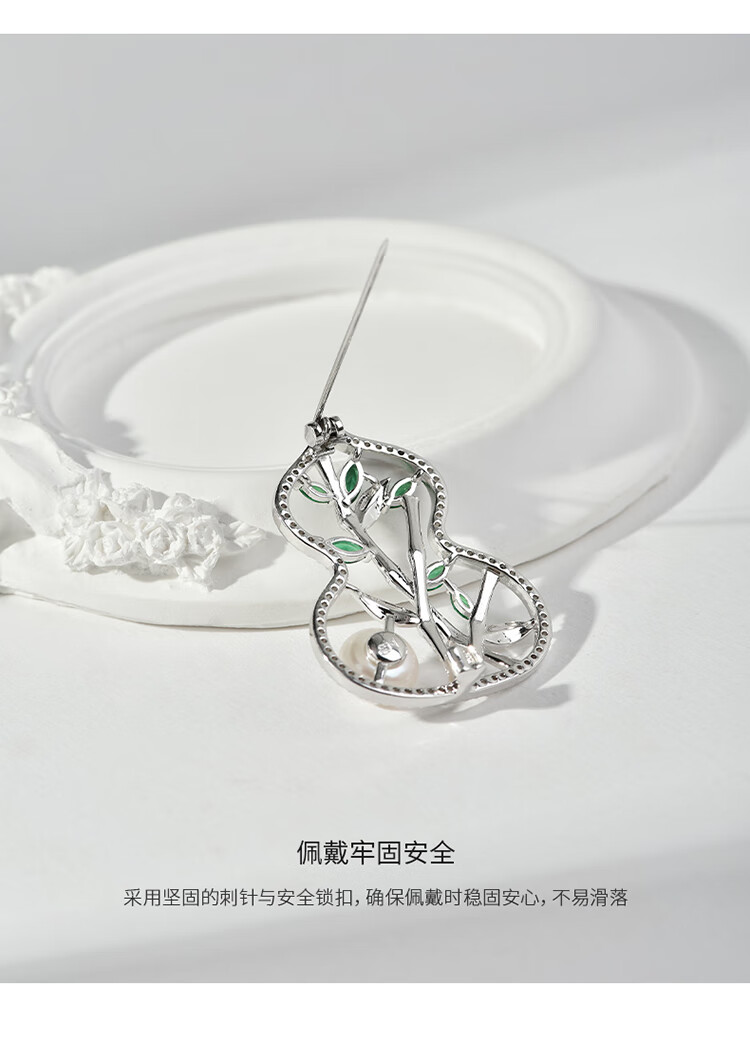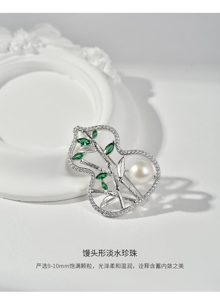 京润珍珠胸针女竹福淡水珍珠精致披肩开衫扣新中式葫芦节日礼物送妈妈