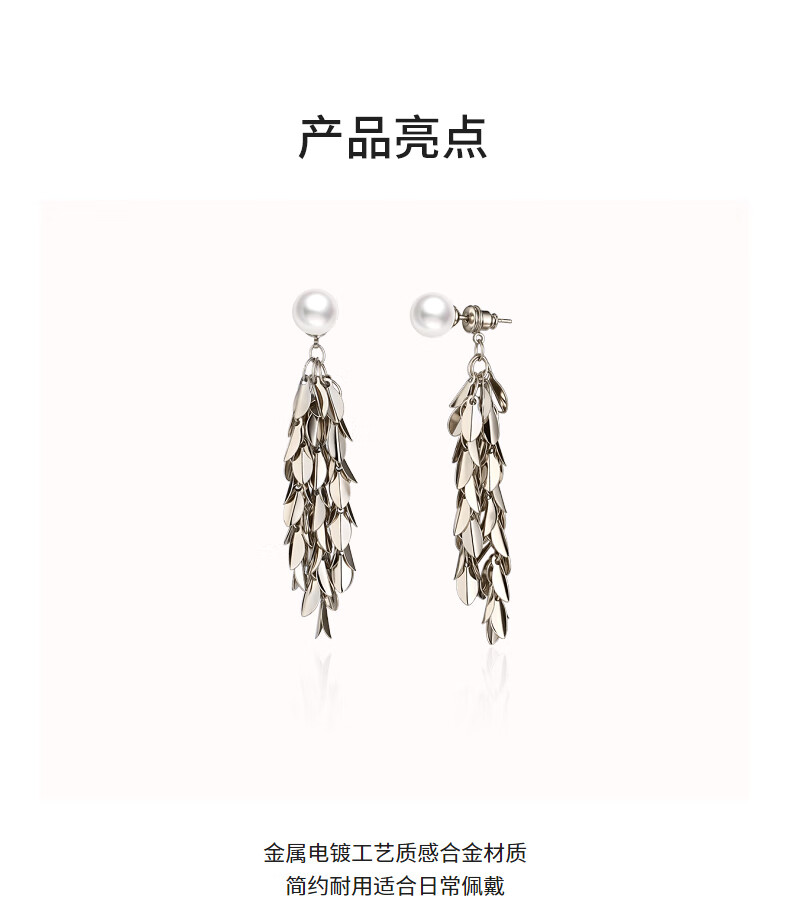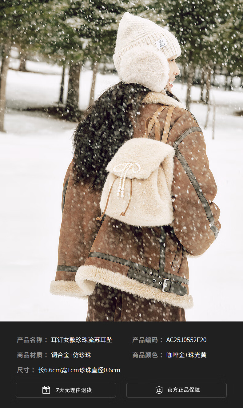 AJIDOU阿吉豆耳钉女款珍珠流苏耳坠新年跨年礼物 咖啡金+珠光黄 2个