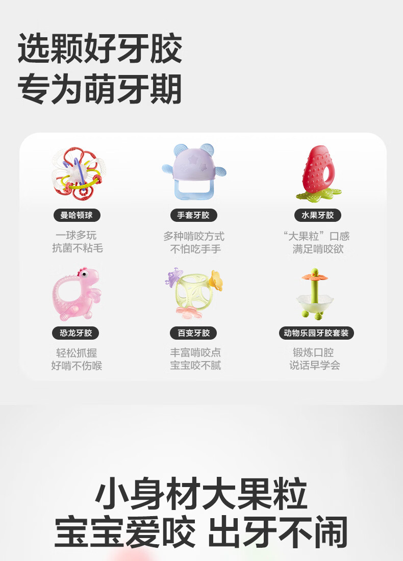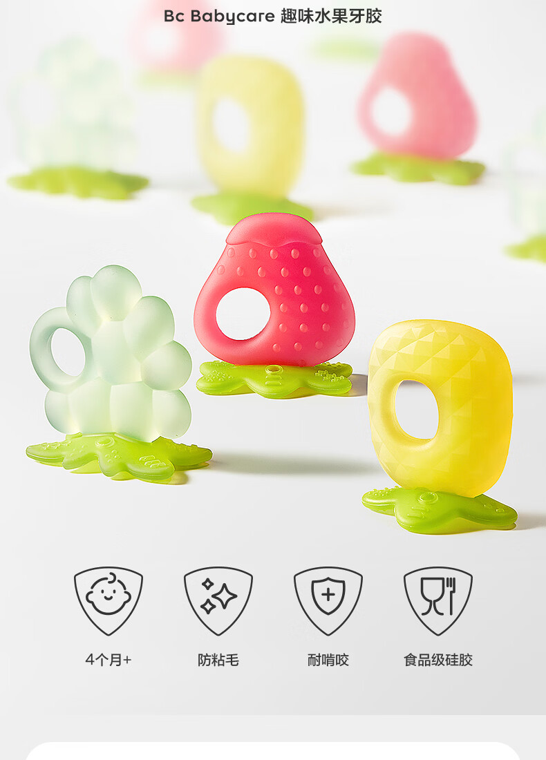 babycare宝宝牙胶磨牙咬咬胶棒婴儿玩具水果安抚牙胶婴儿用品组合3只装
