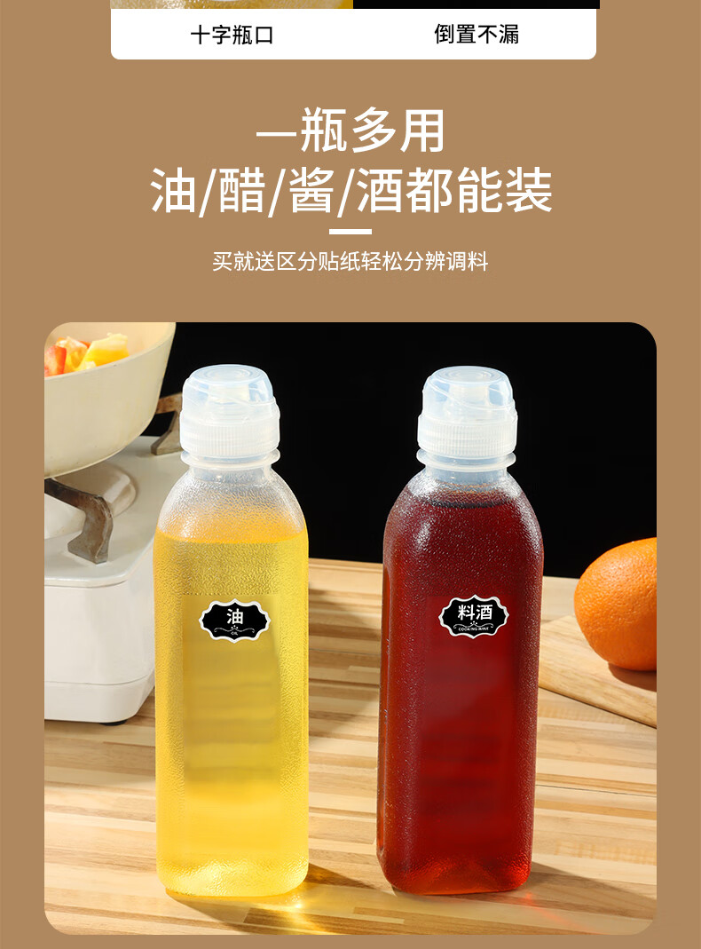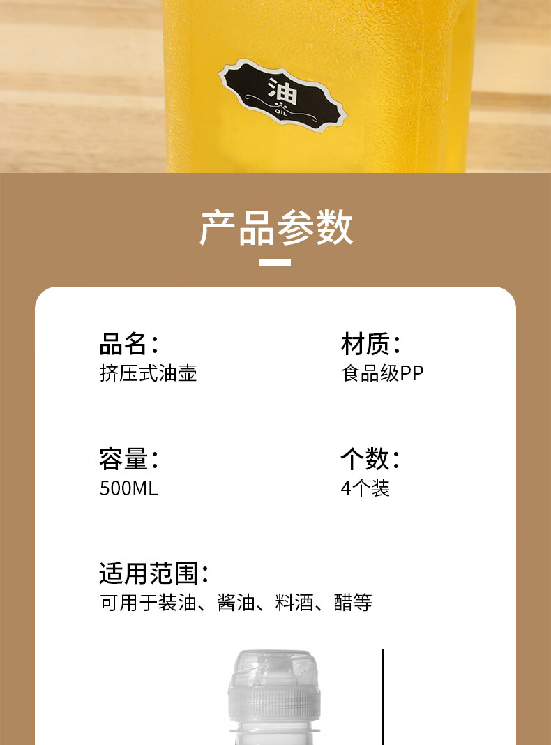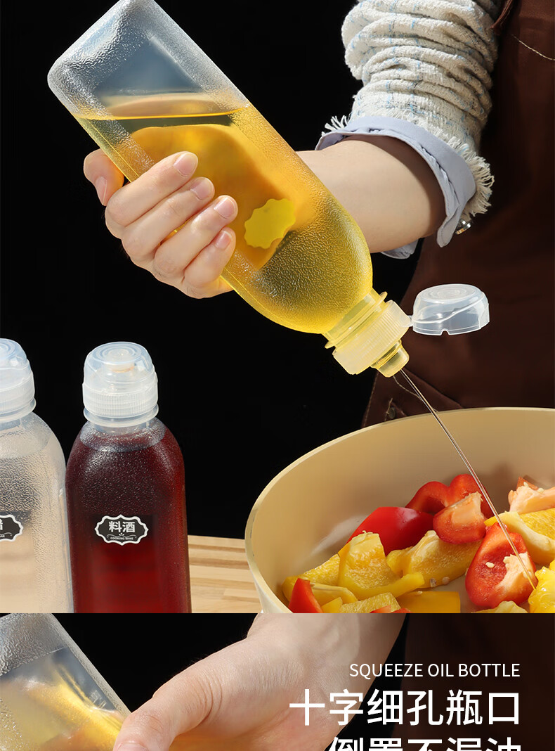 拜杰尖叫油壶500ml*4个装挤酱瓶醋壶酱油瓶喷油瓶调料收纳挤压瓶