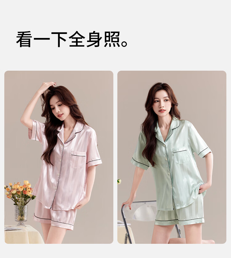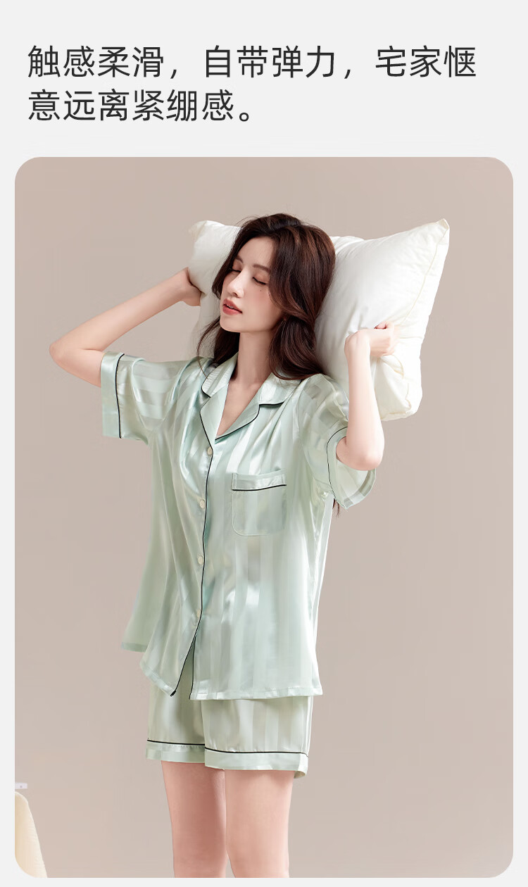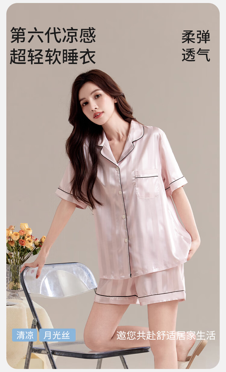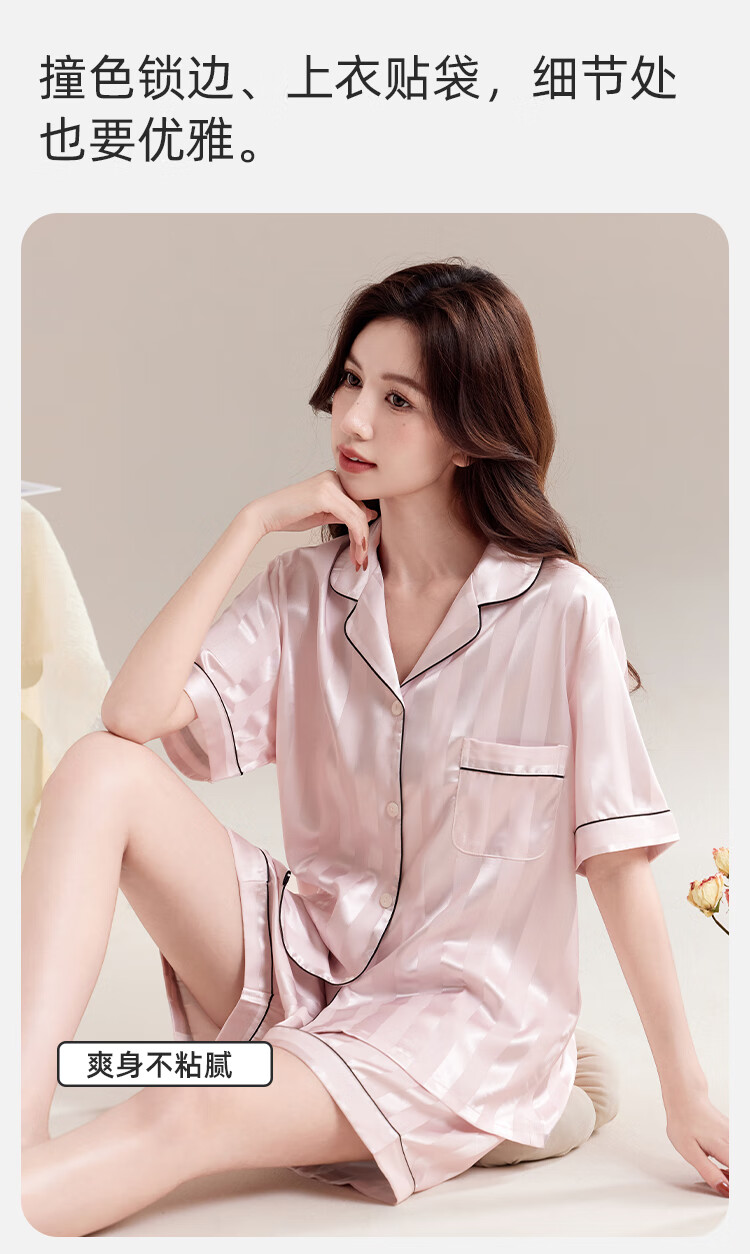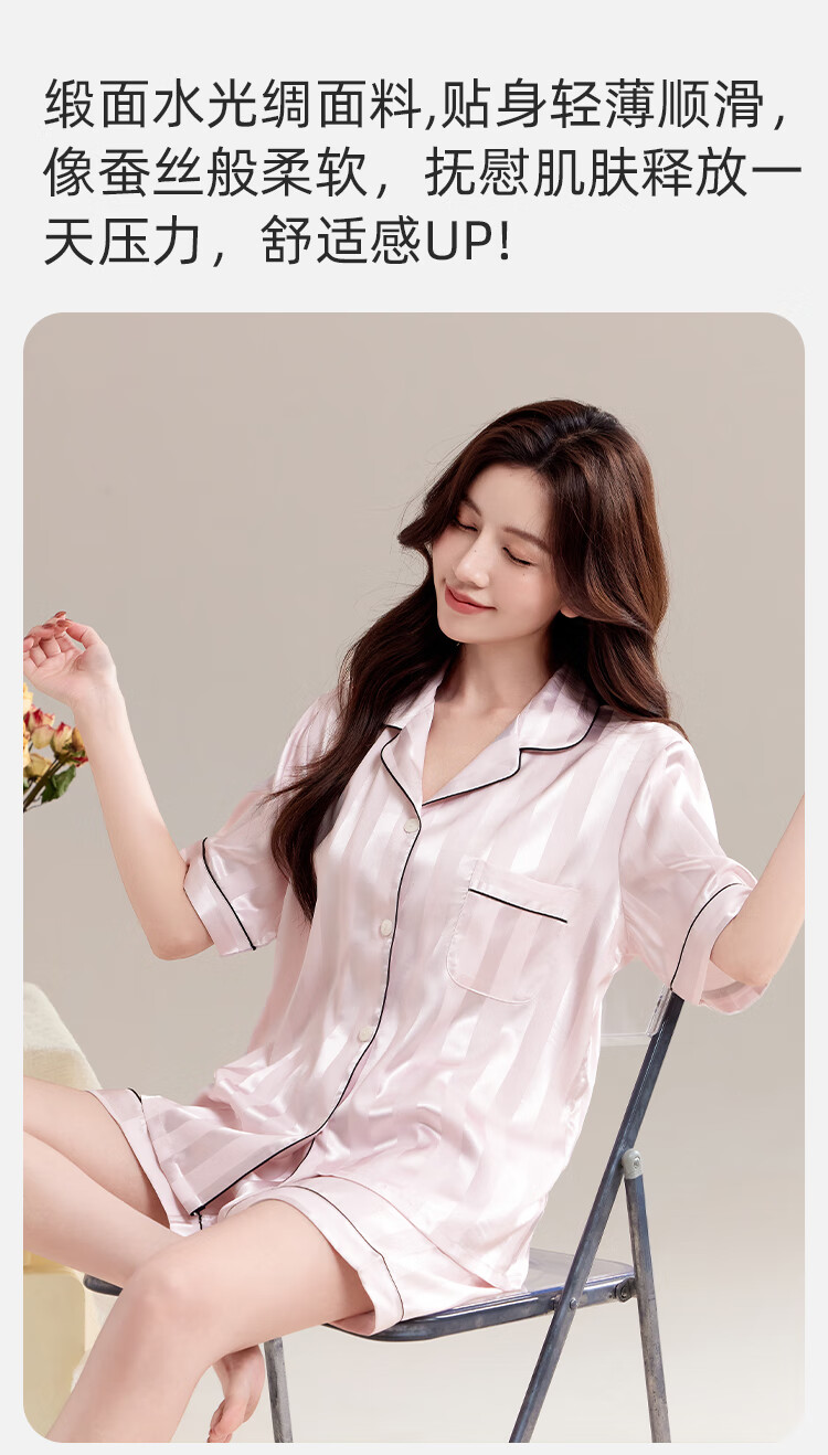 都市丽人睡衣女士睡衣夏季缎面仿真丝冰丝宽松短袖短裤开衫可外穿家居2XL