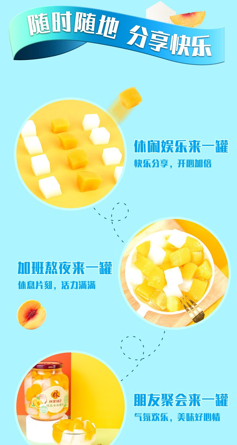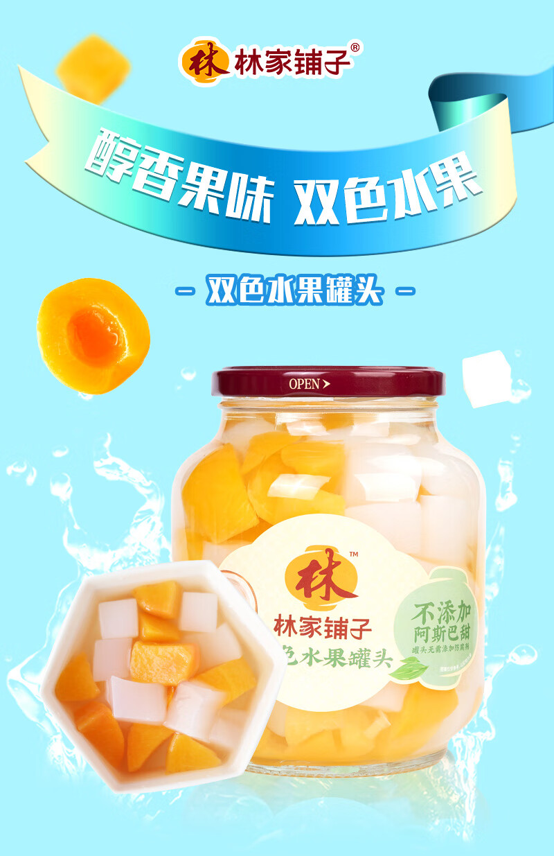 林家铺子双色水果罐头黄桃椰果大罐装商超同款 1000g*2罐