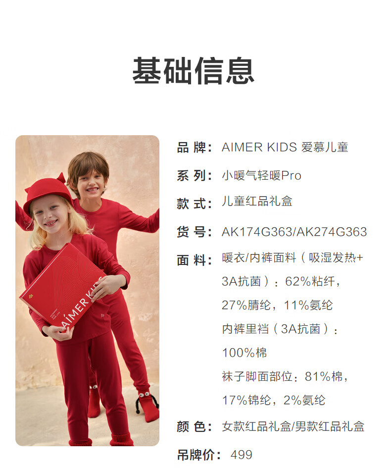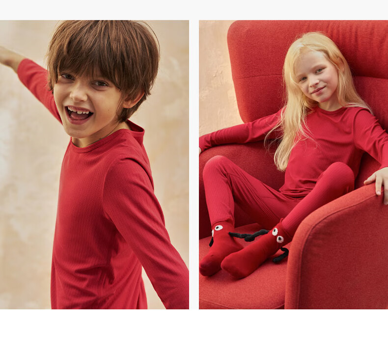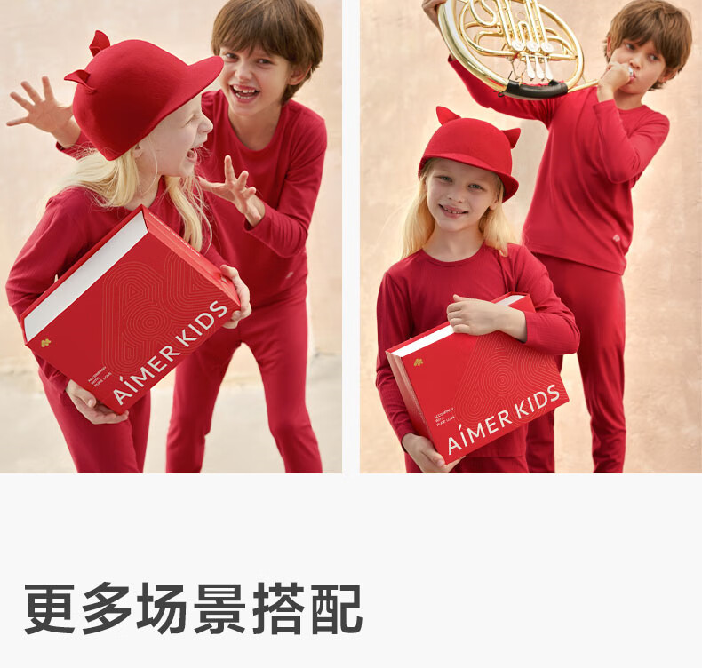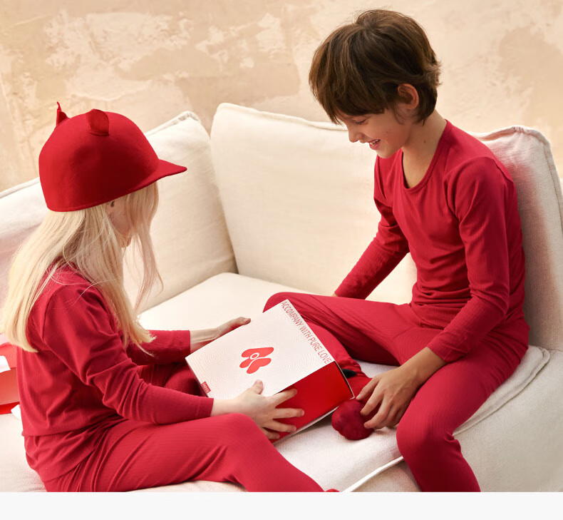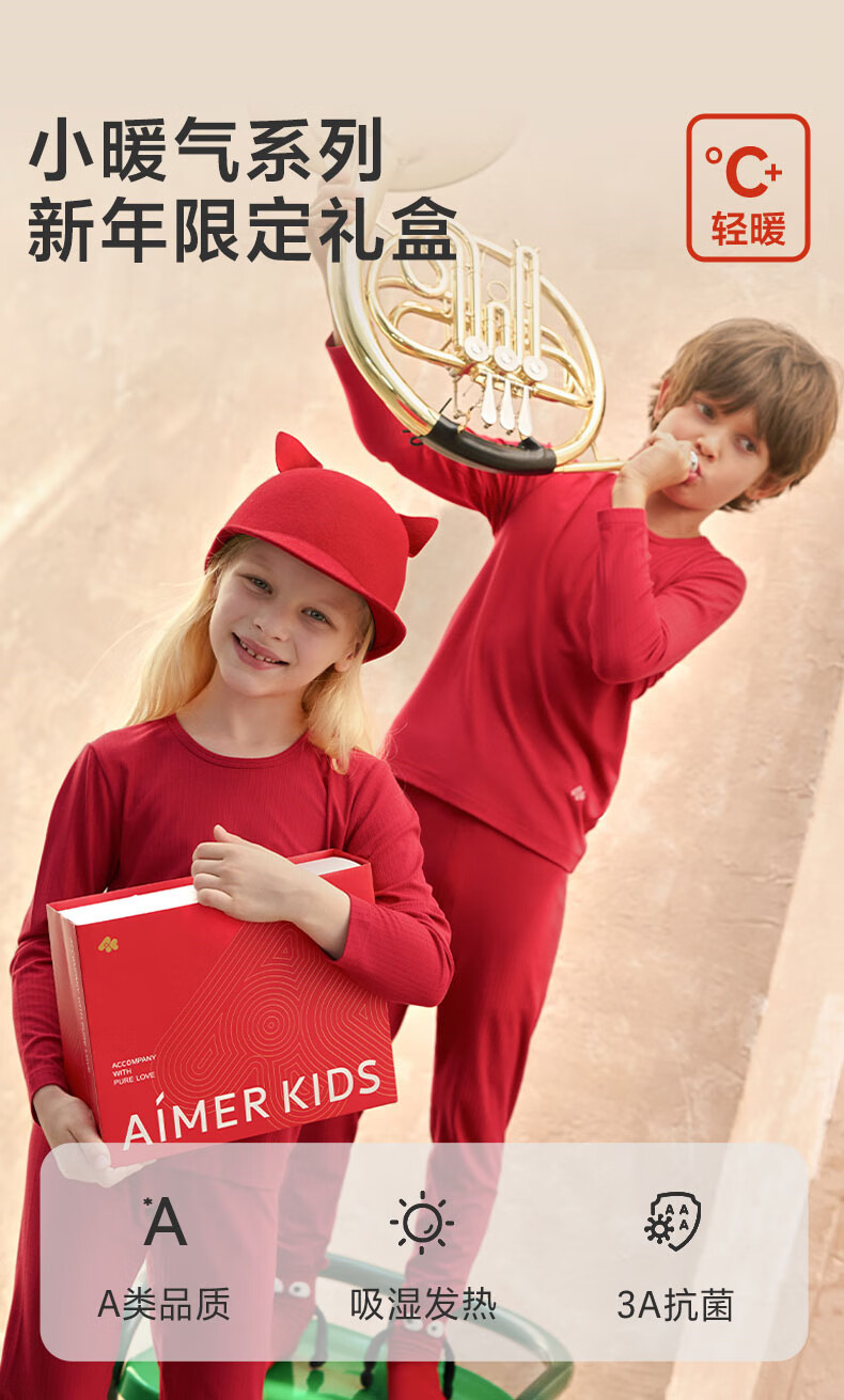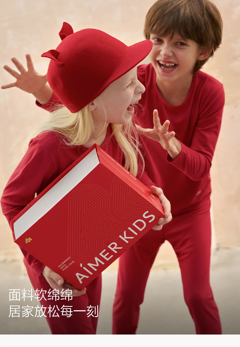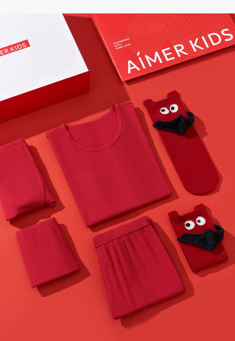 爱慕儿童保暖内衣红品礼盒男童本命年小暖气轻暖袜子内裤男170