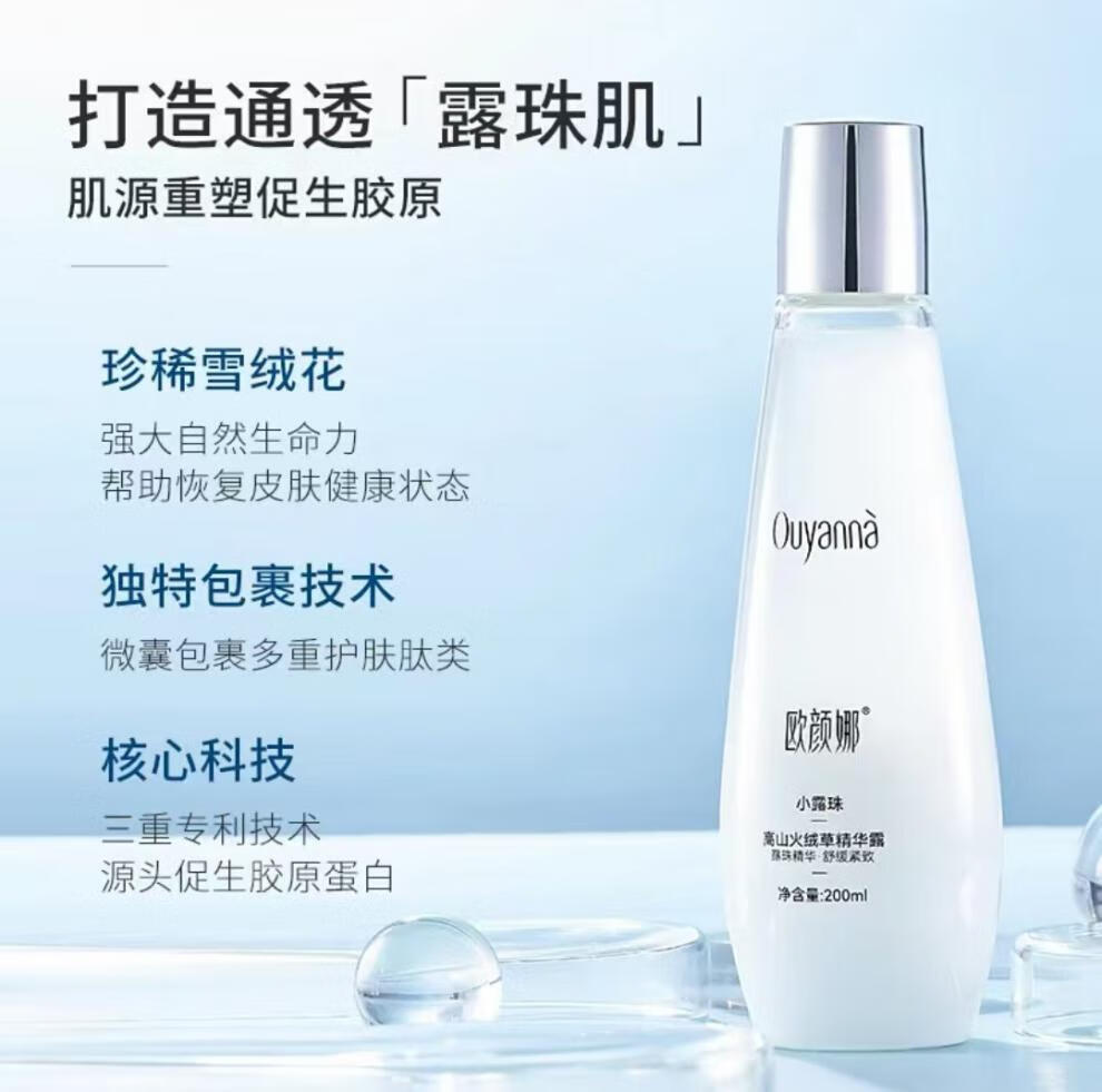 法玛奇(FAVMARCH)小露珠200ml欧颜娜高山火绒草小露珠精华保湿植萃水精萃露舒缓肌 欧颜娜小露珠200ml*1瓶