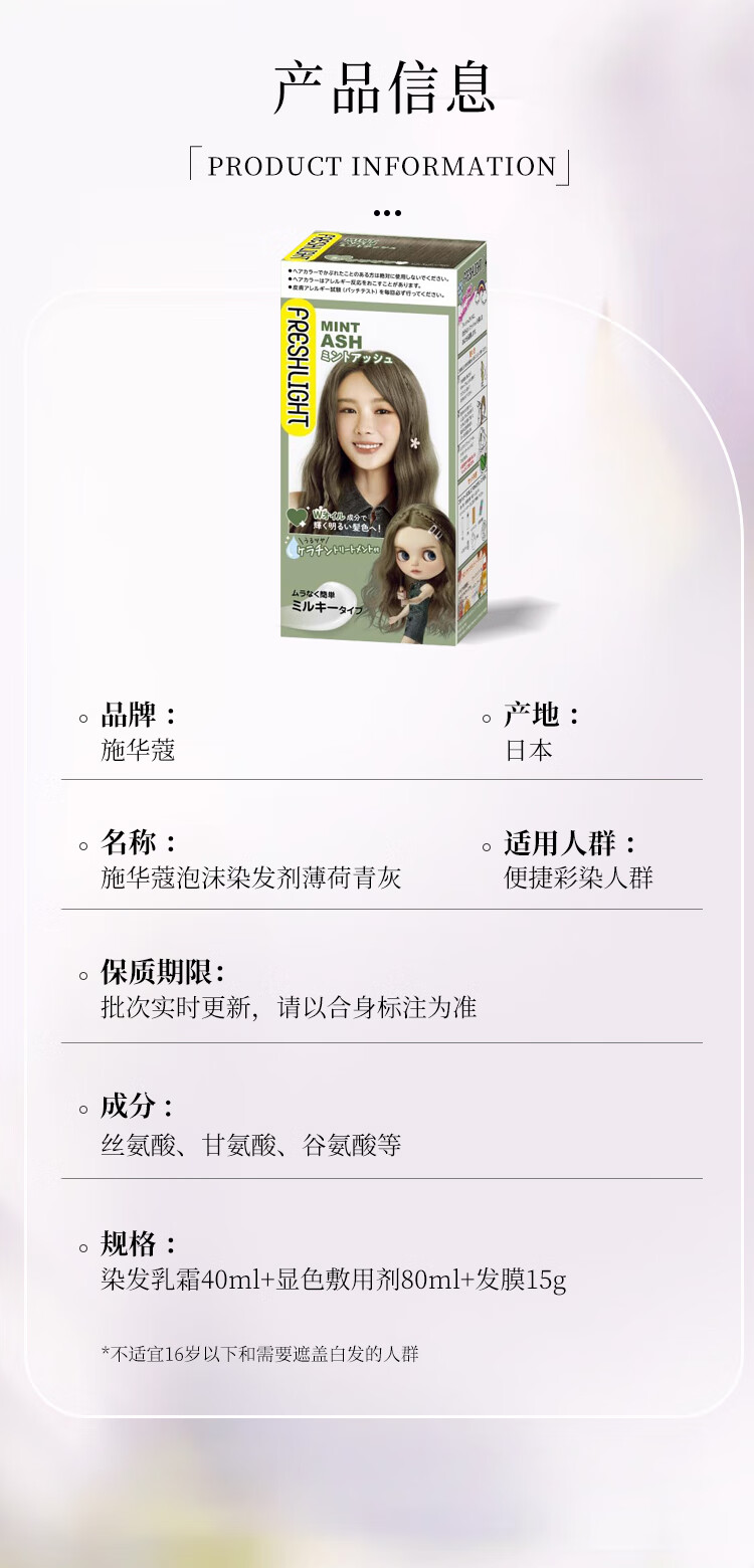 施华蔻(Schwarzkopf)泡泡染发剂薄荷青灰 男女通用不沾头皮日本原装进口