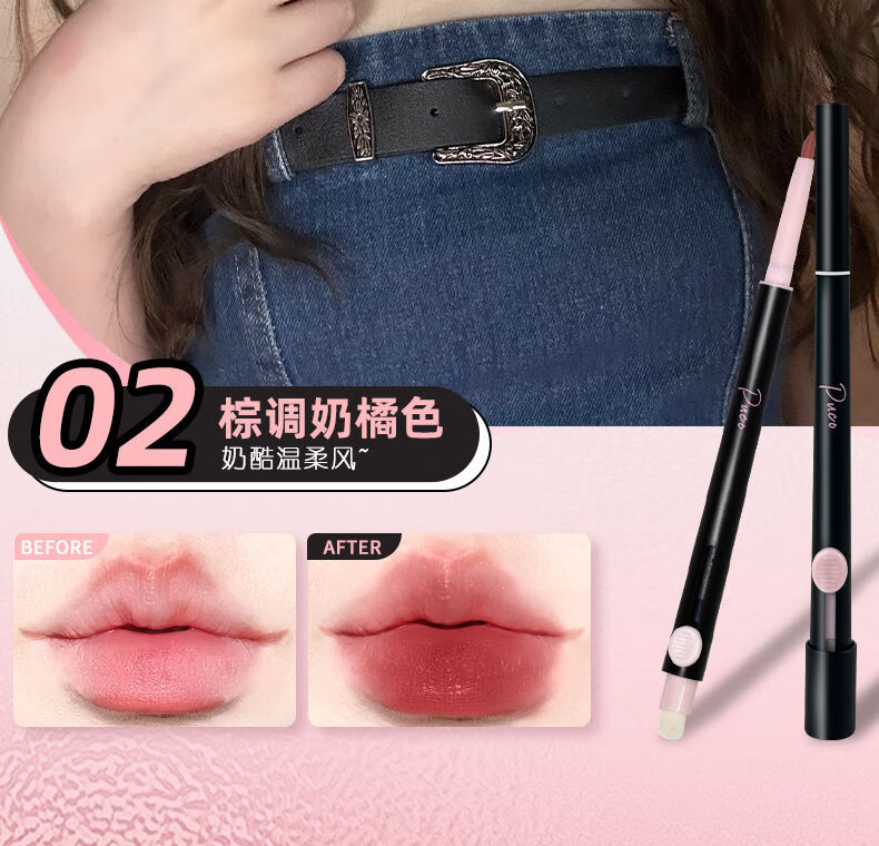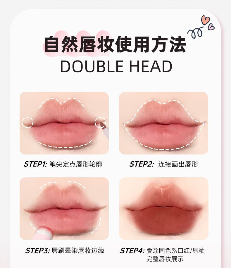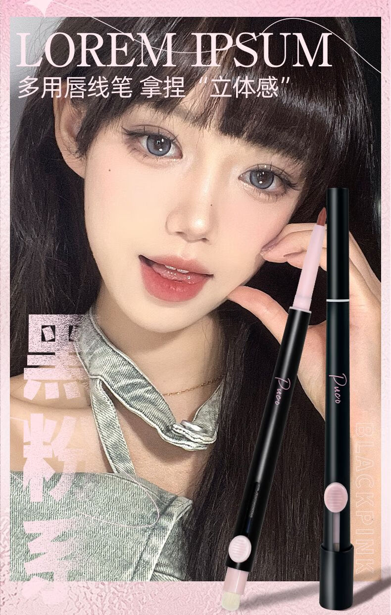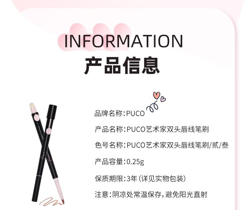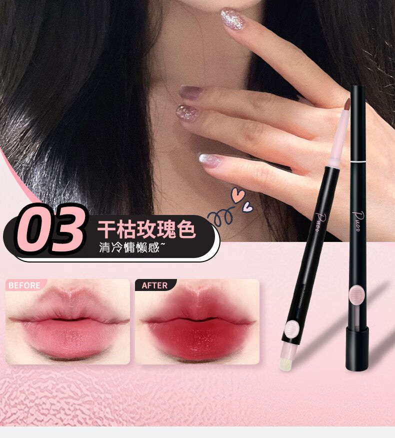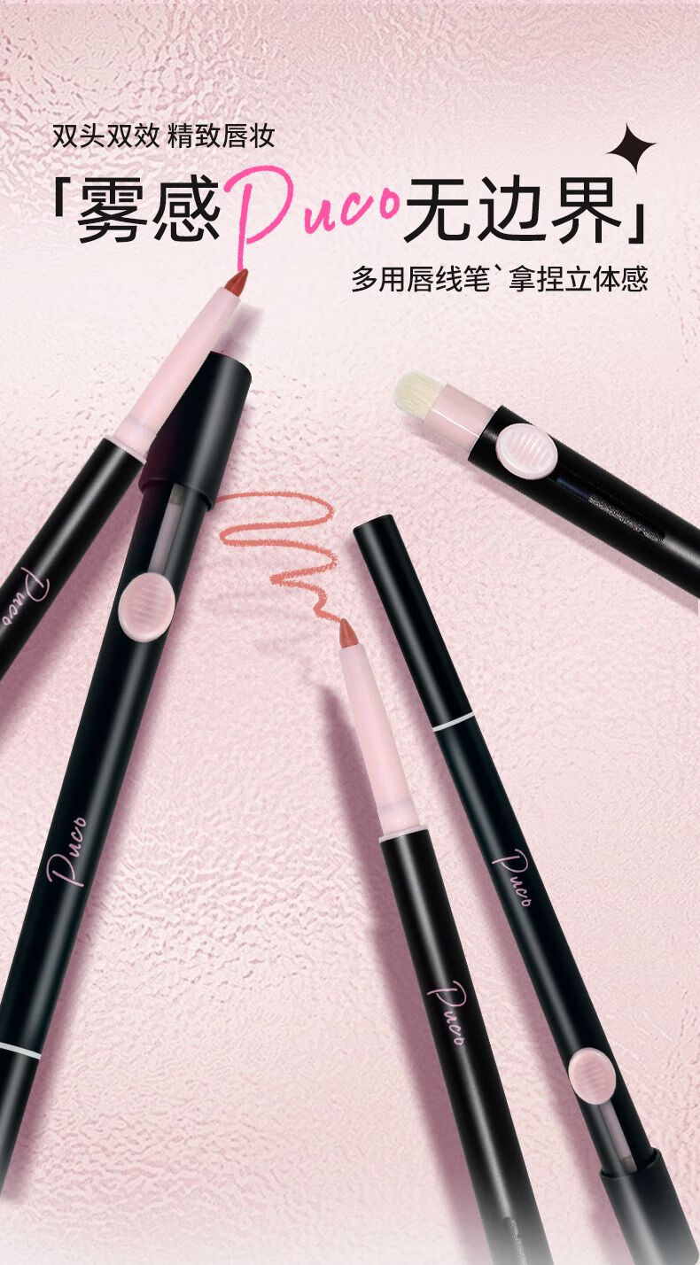 PUCO艺术家双头唇线笔刷口红晕染丰唇嘟嘟唇刷勾勒唇形01乌龙奶咖色