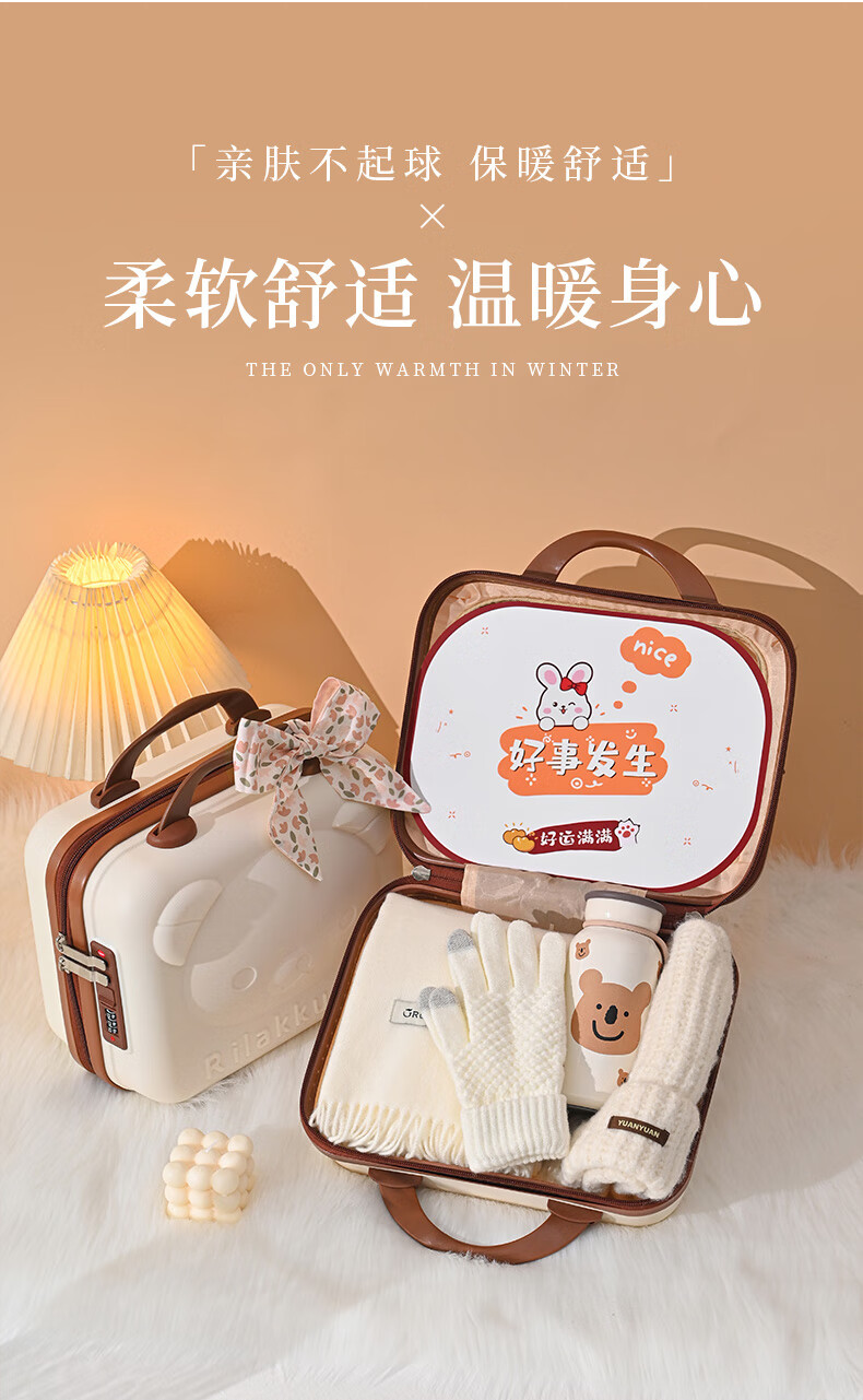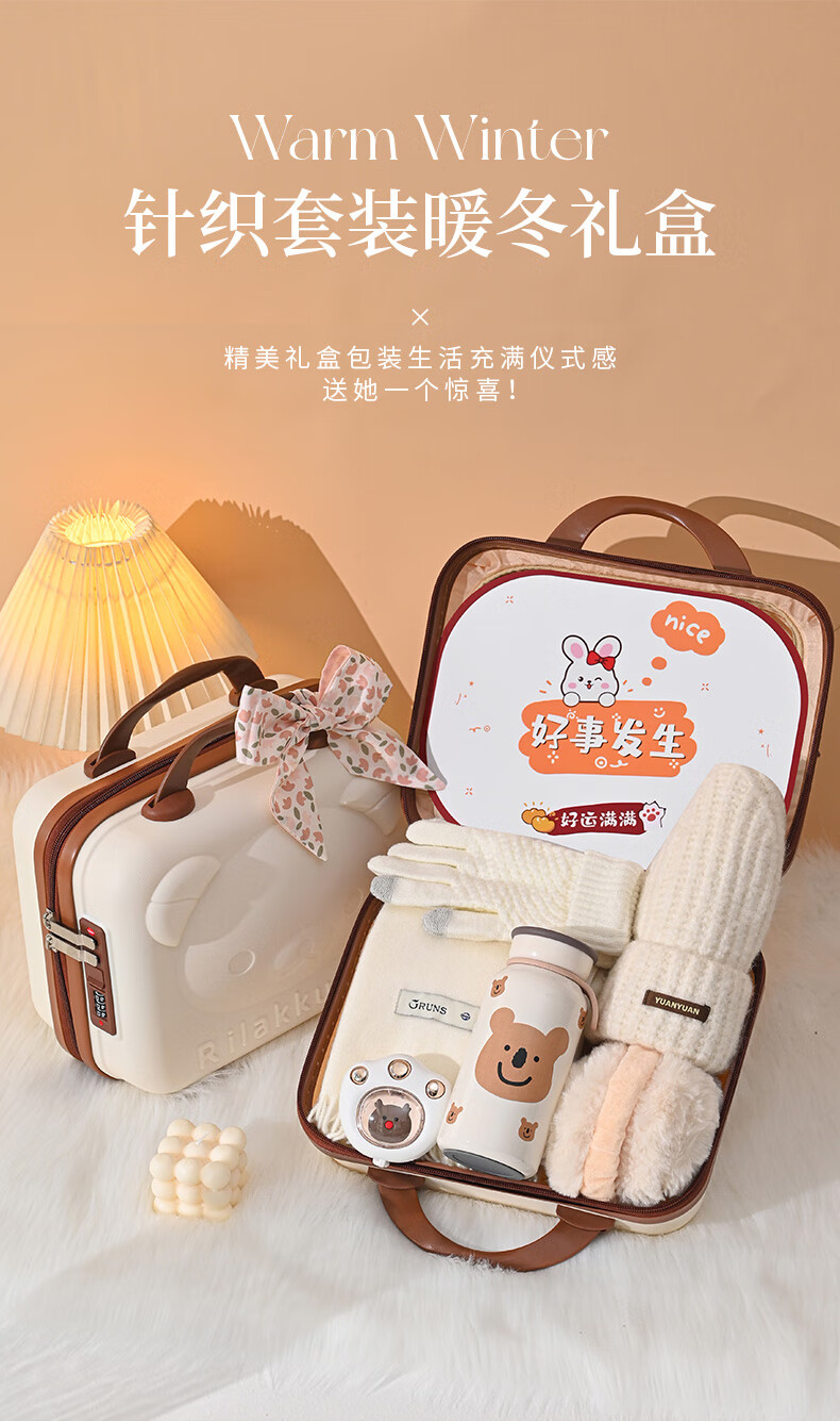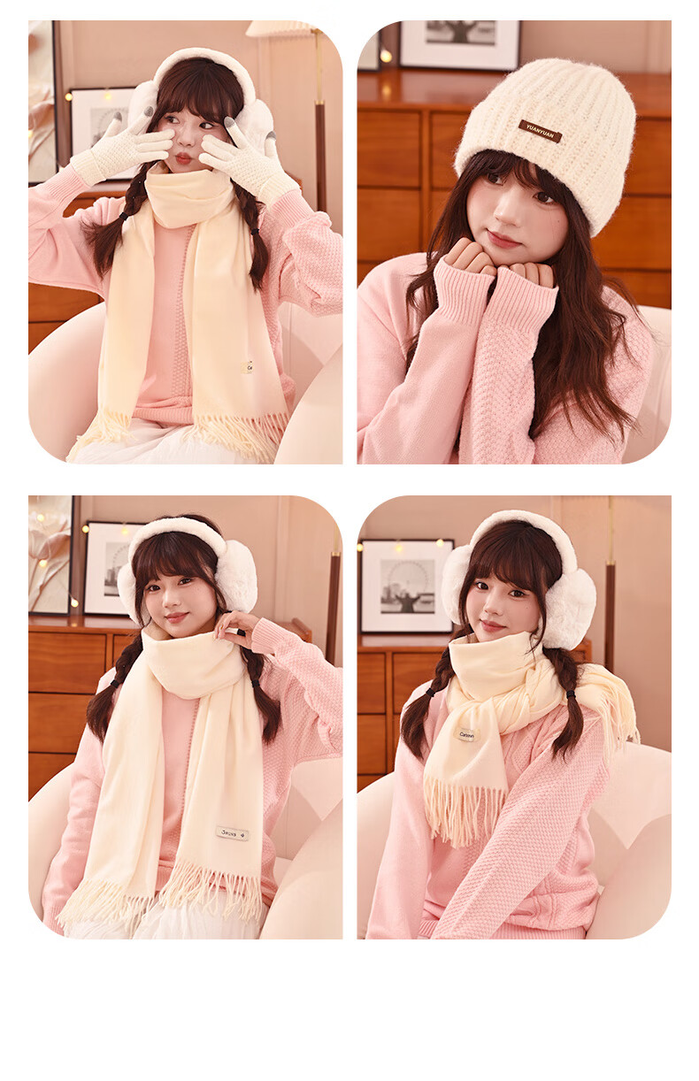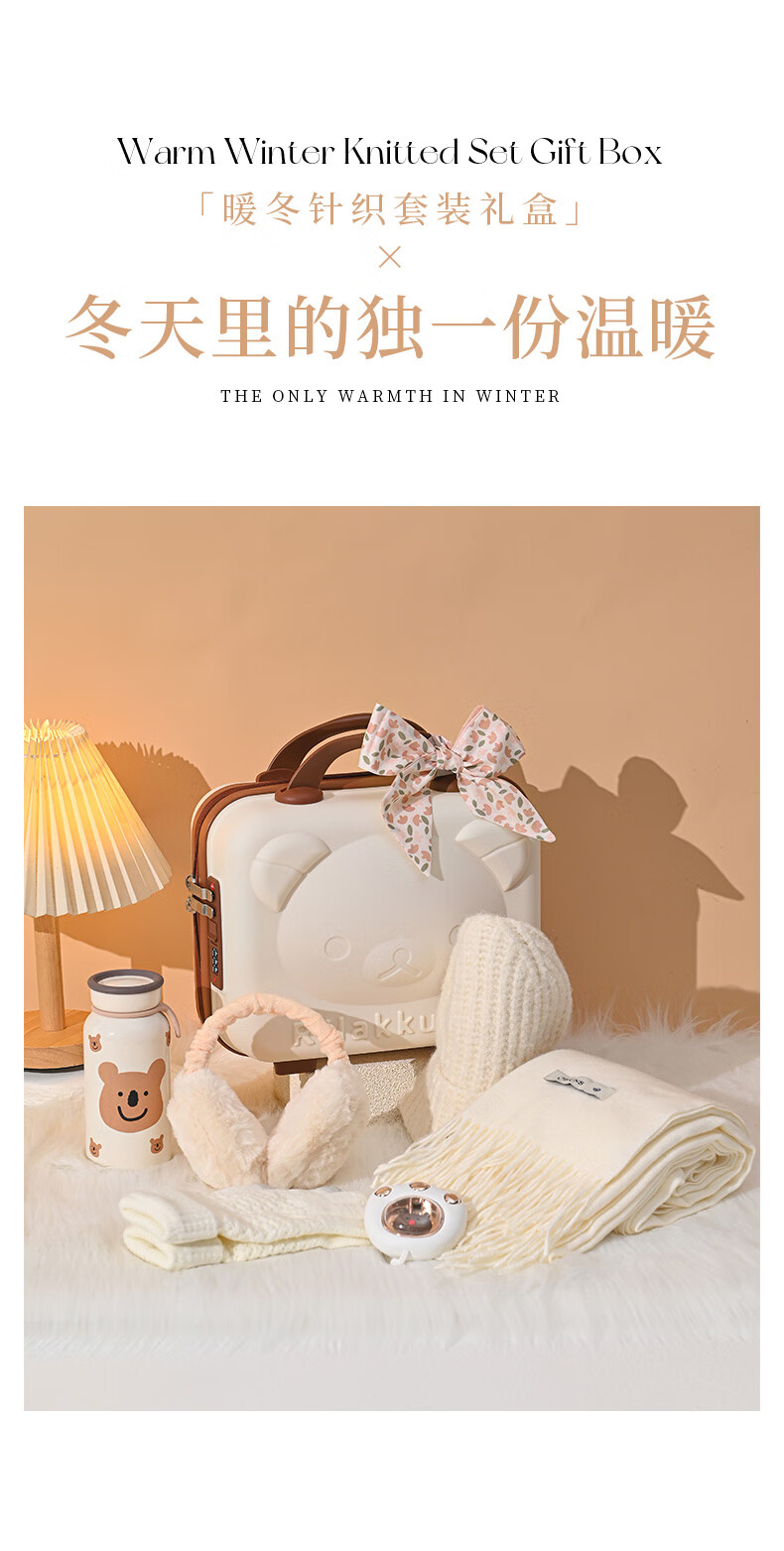 尹木夕围巾冬生日新年礼物女生送朋友学生入冬四件套围巾帽子手套礼品 Q159暖心小熊三件套【围巾+帽子+手套】
