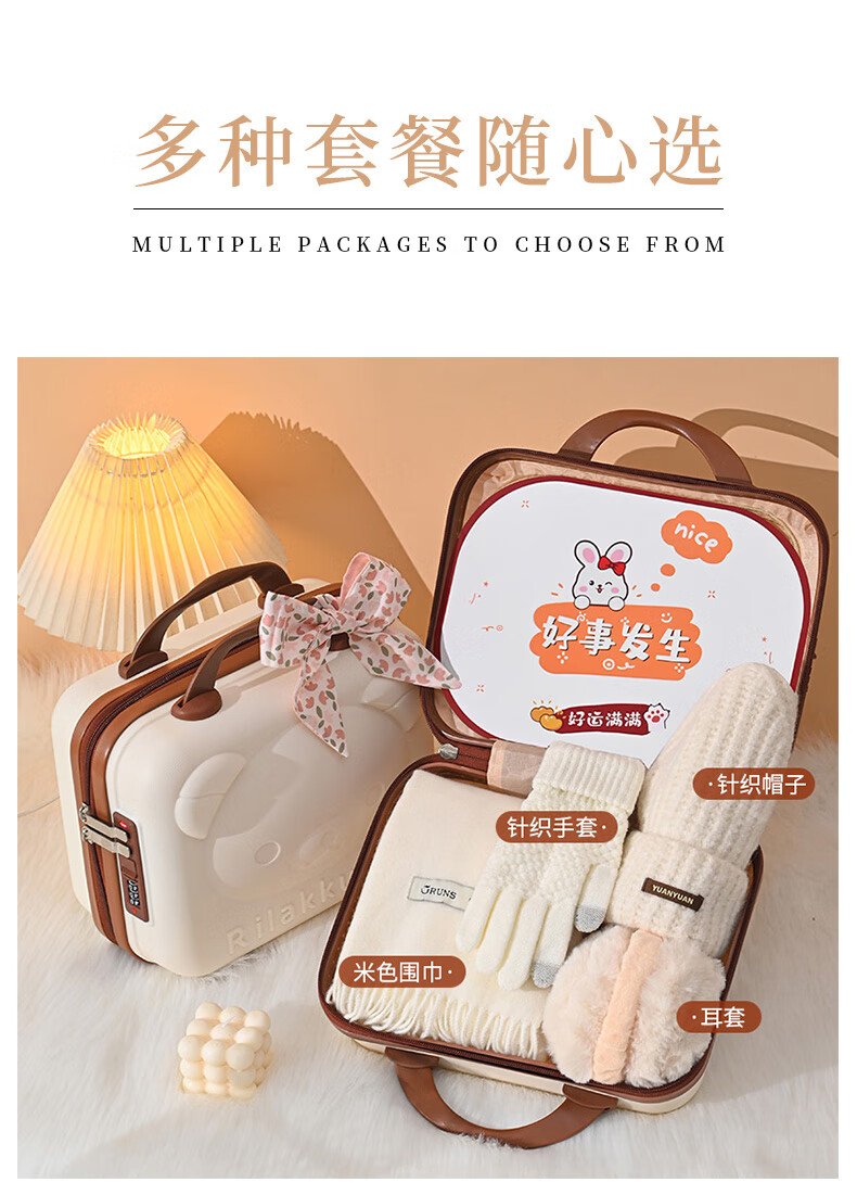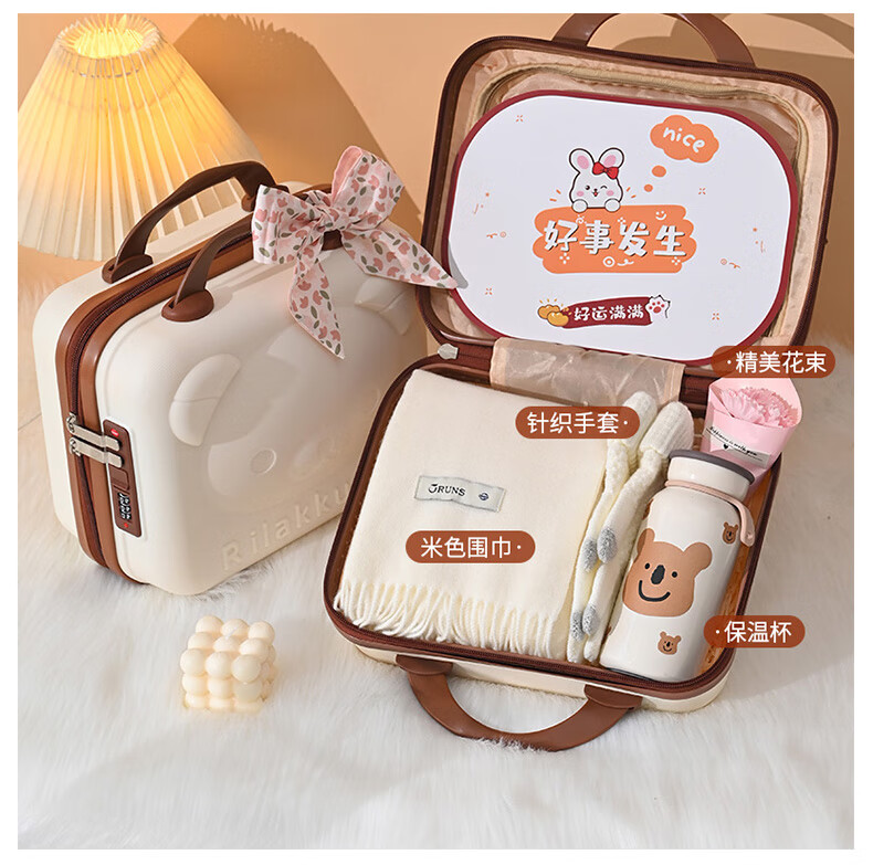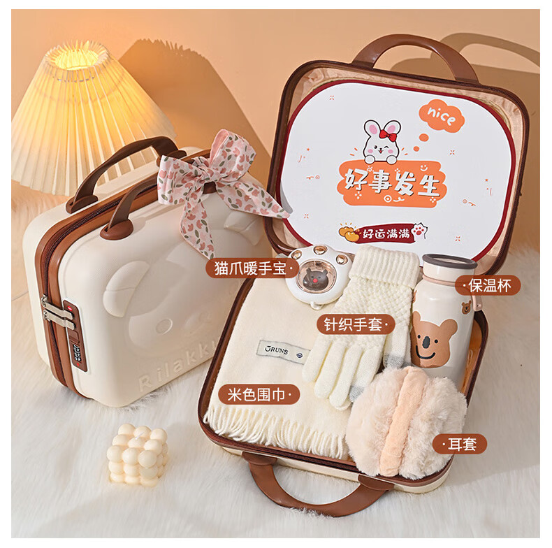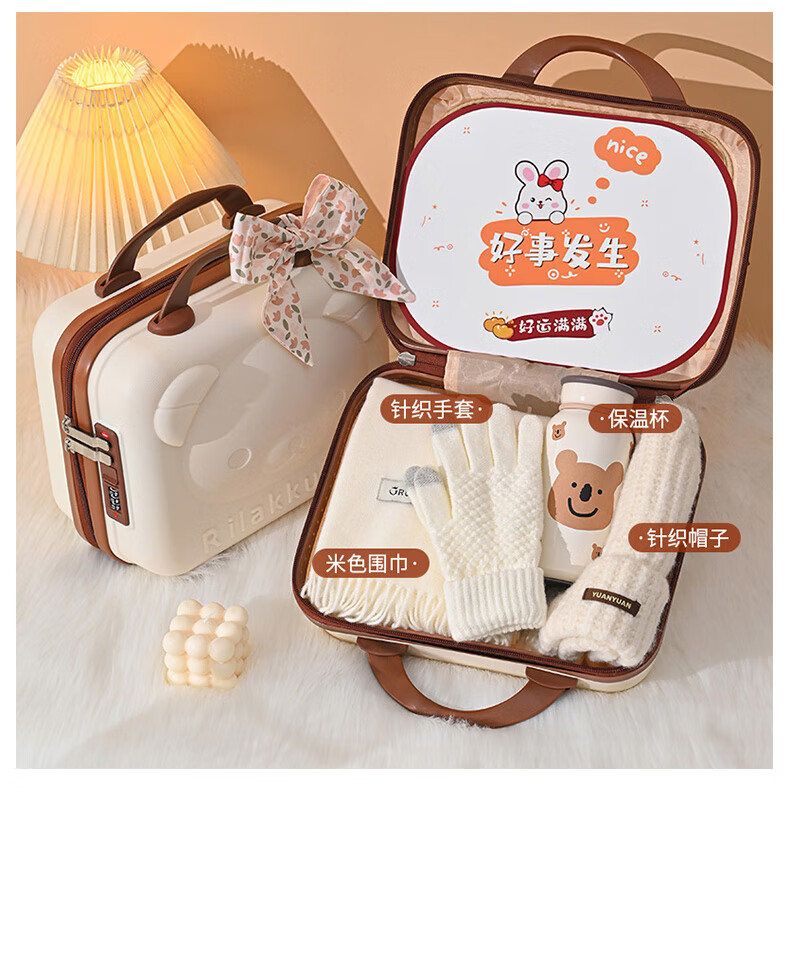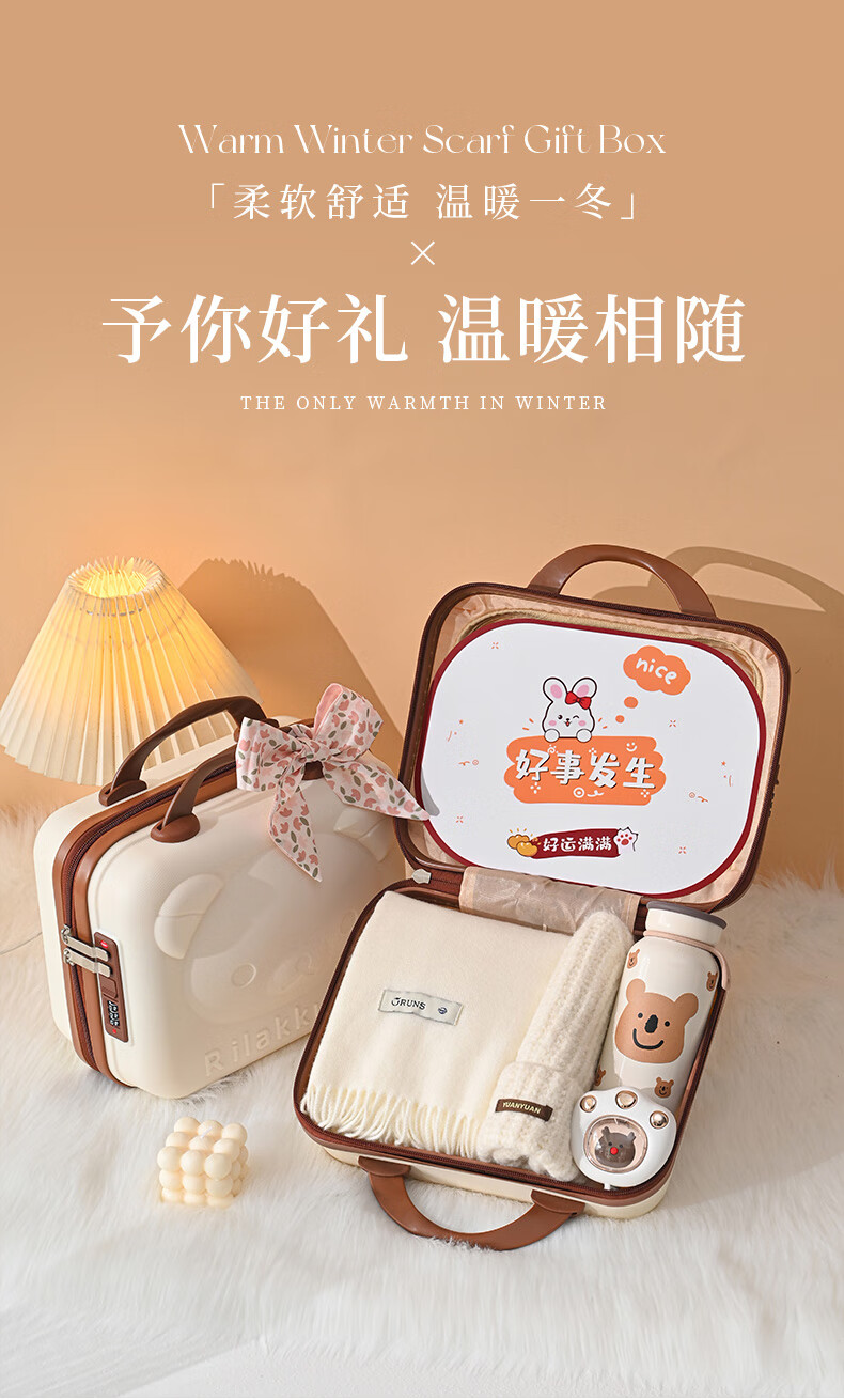 尹木夕围巾冬生日新年礼物女生送朋友学生入冬四件套围巾帽子手套礼品 Q159暖心小熊三件套【围巾+帽子+手套】