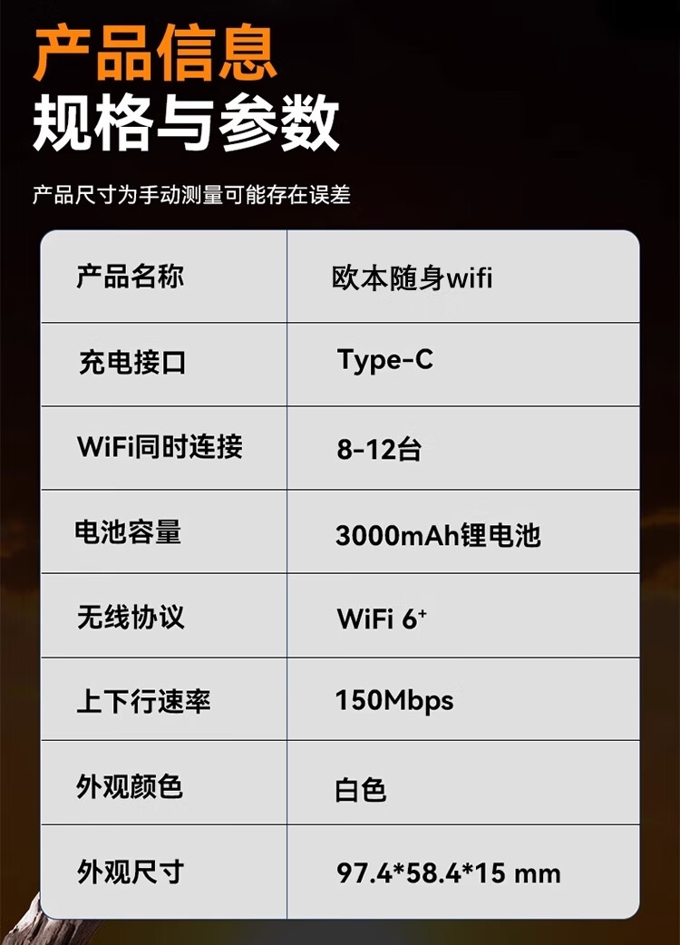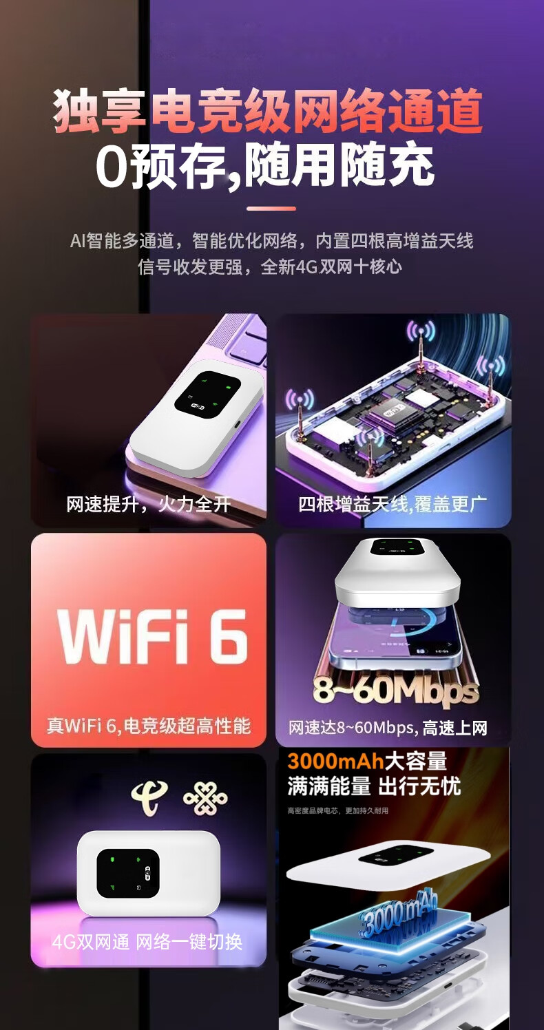 欧本2025随身wifi6+精密工业级 行走的随行宽带路由器 移动便捷式无线上网卡设备神器 内置卡3000毫安 【超值推荐】【旗舰版】wifi6+网速增强