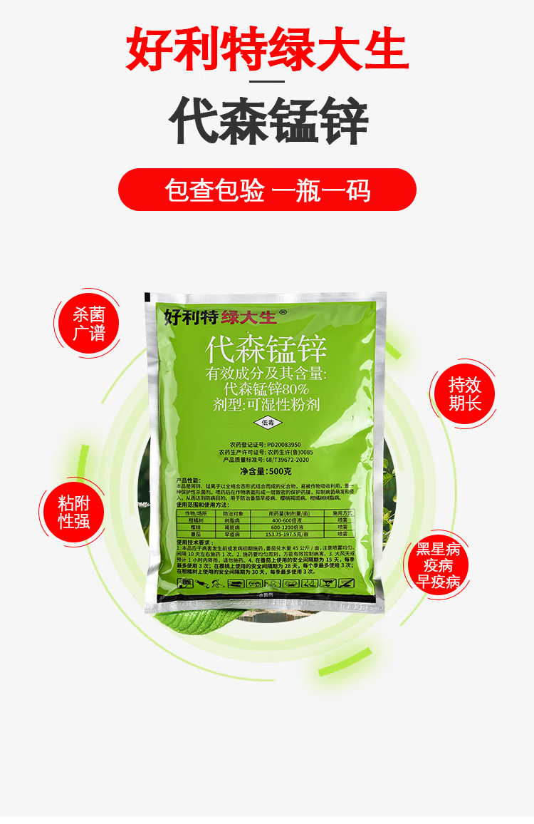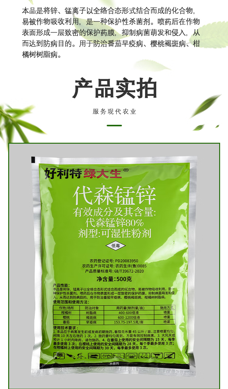 好利特绿大生80%代森锰锌果树蔬菜番茄樱桃早疫褐斑树脂病炭疽杀菌剂