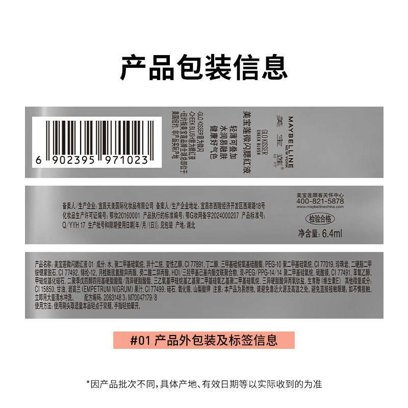 美宝莲水灵灵腮红高光液膨胀色修容提亮液体腮红01融融蜜瓜新年礼物女