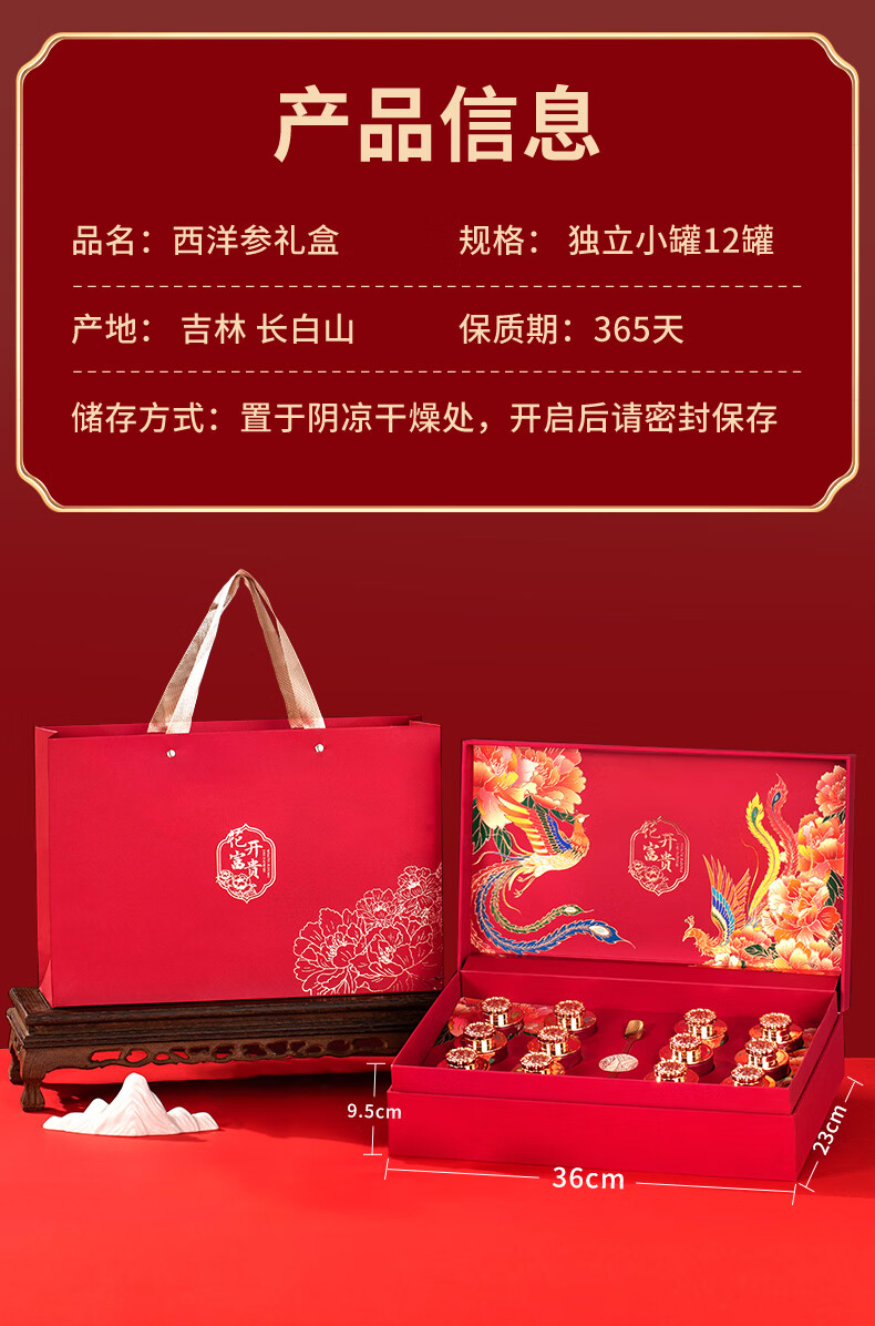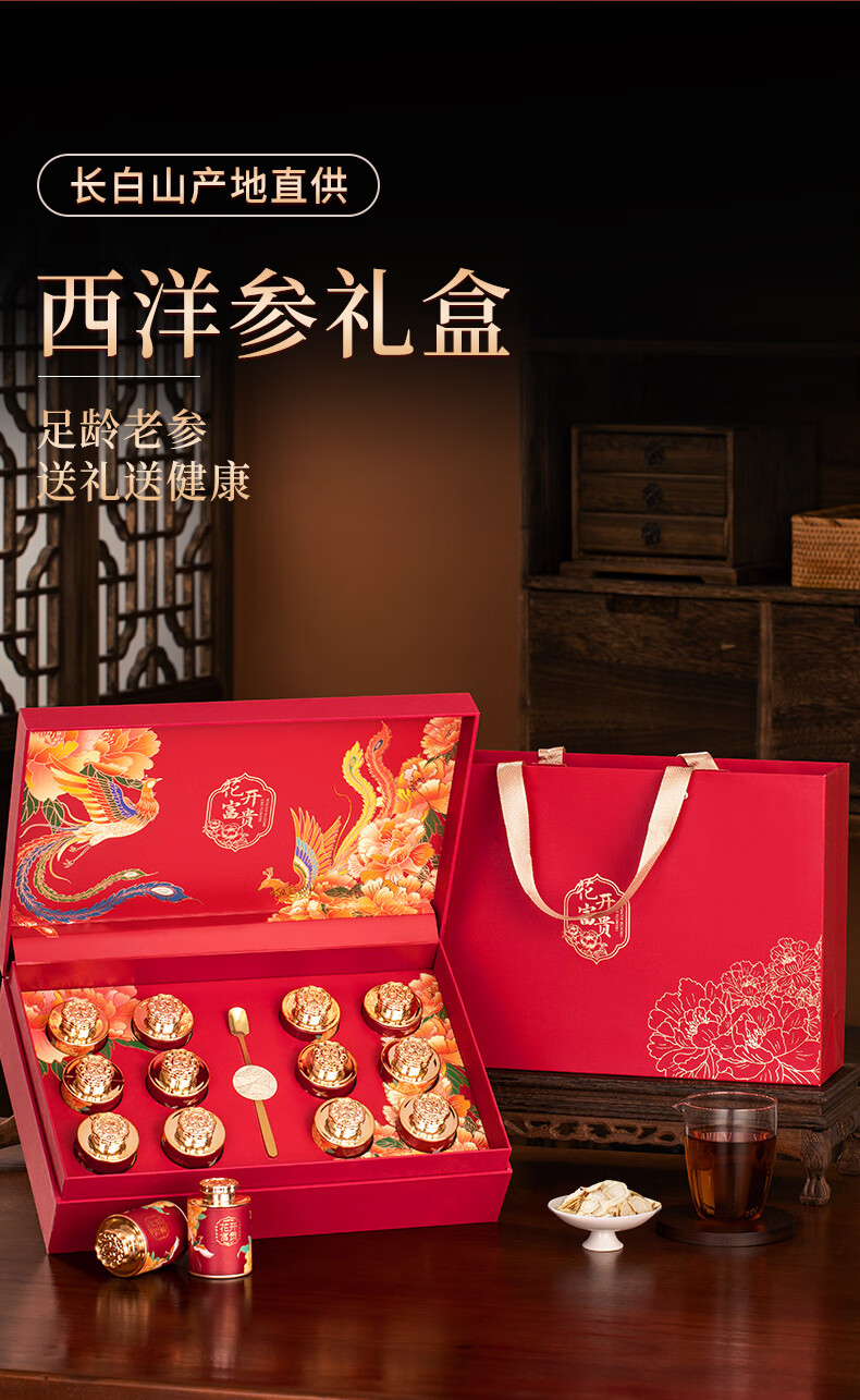 卉芋国风滋补西洋参年货礼盒组合 高皂苷参花旗参送长辈领导礼品