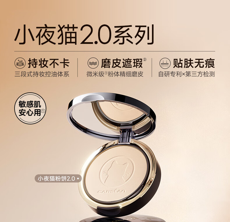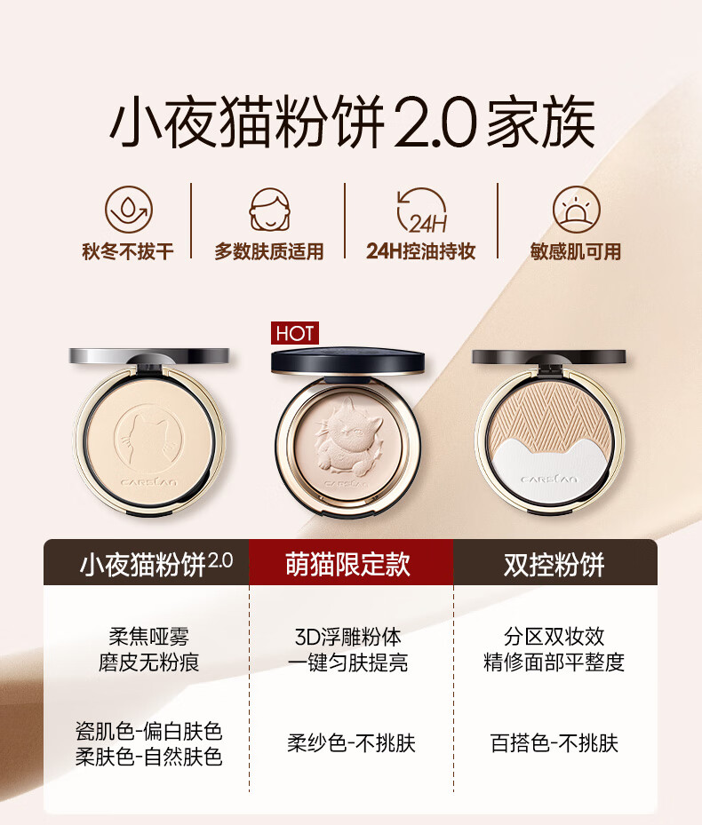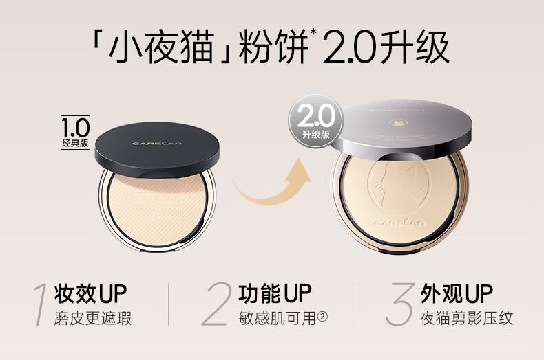 卡姿兰(Carslan)小夜猫粉饼定妆散粉控油遮瑕持久防汗不脱妆升级 02柔肤色9g 新年