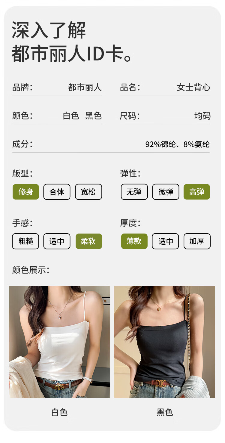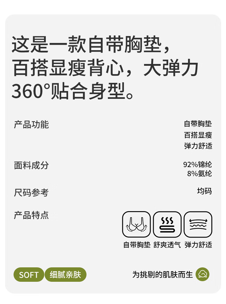 都市丽人吊带背心女内搭四季文胸一体带胸垫纯色打底美背内衣外穿上衣