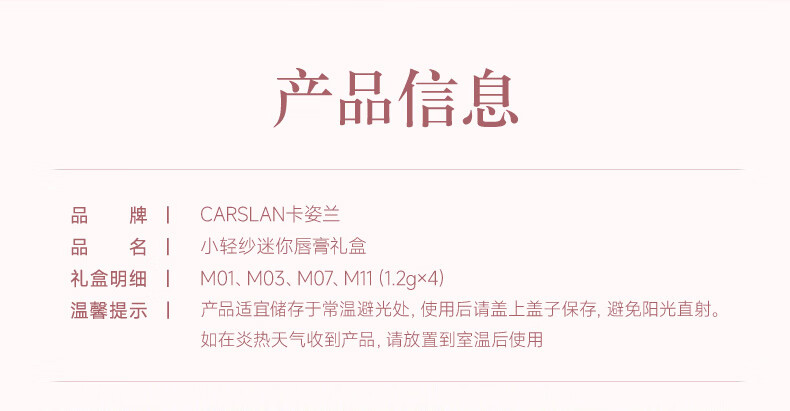 卡姿兰(Carslan)小轻纱迷你口红礼盒口红小支装1.2g*4 显白持久不易掉色新年礼物