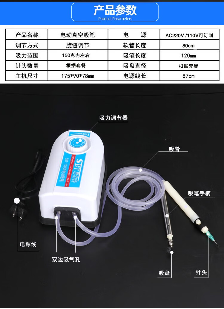 宿尚电动吸笔 真空吸笔SMT手工贴片机 IC吸笔LED灯珠贴片 五槽喂料架 吸笔 3个针头 2吸盘