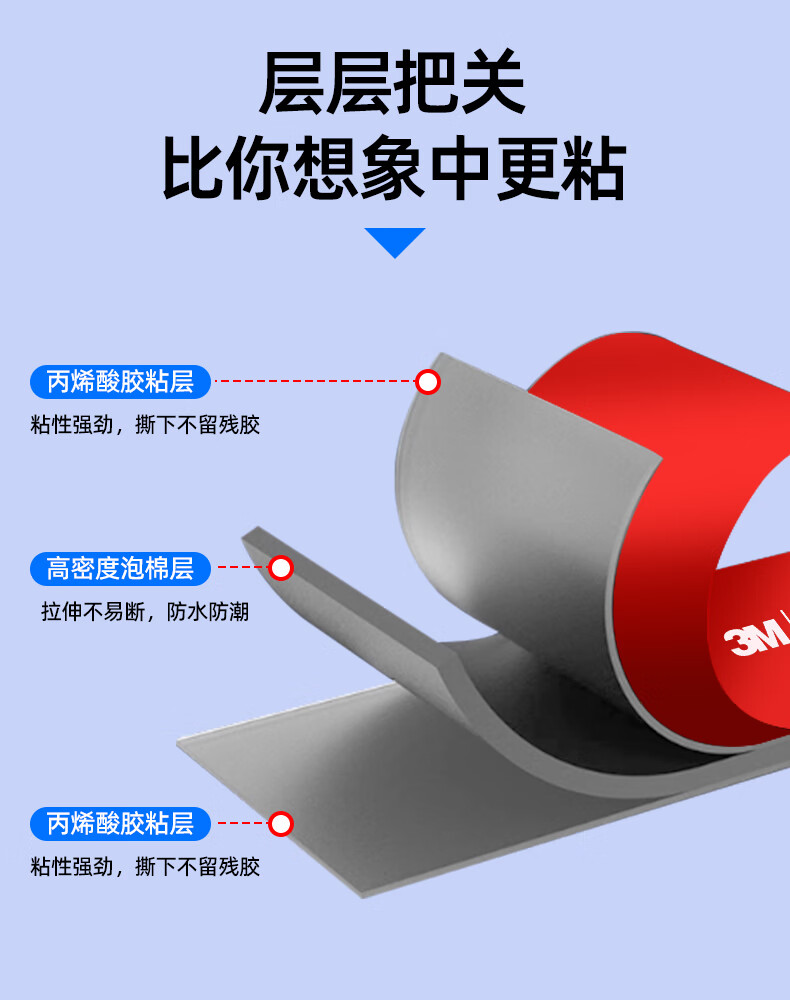 3M高粘度强力双面背胶耐高温汽车ETC墙面固定无痕泡棉海绵粘胶贴片 方形20*20mm*10片装【灰色】