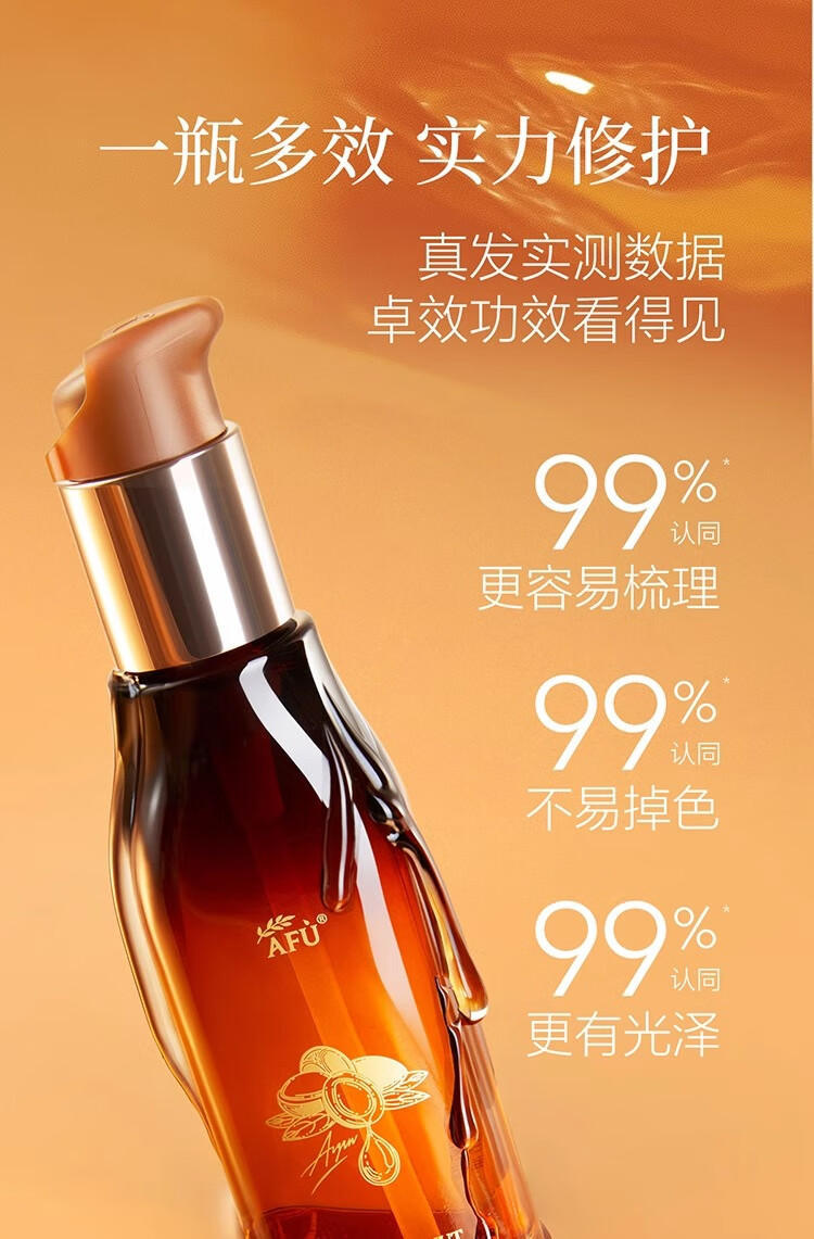 阿芙(AFU)摩洛哥护发精油改善毛躁打结柔顺易梳清爽亮发防静电官方正品 100ml(奢润款)