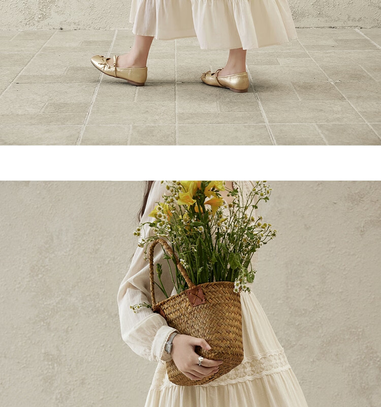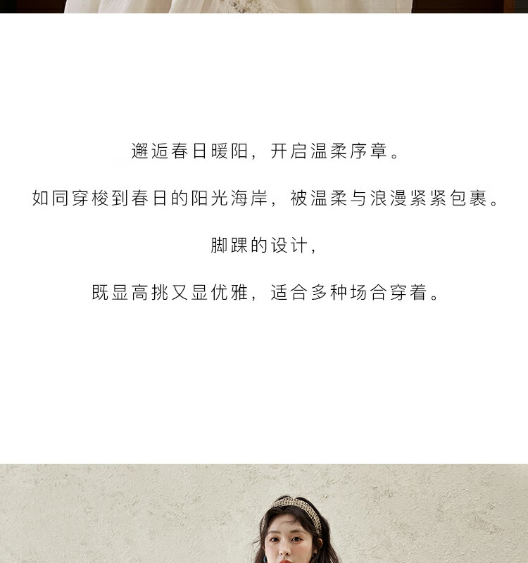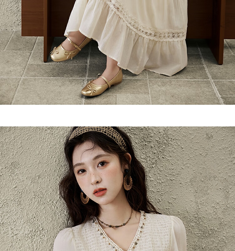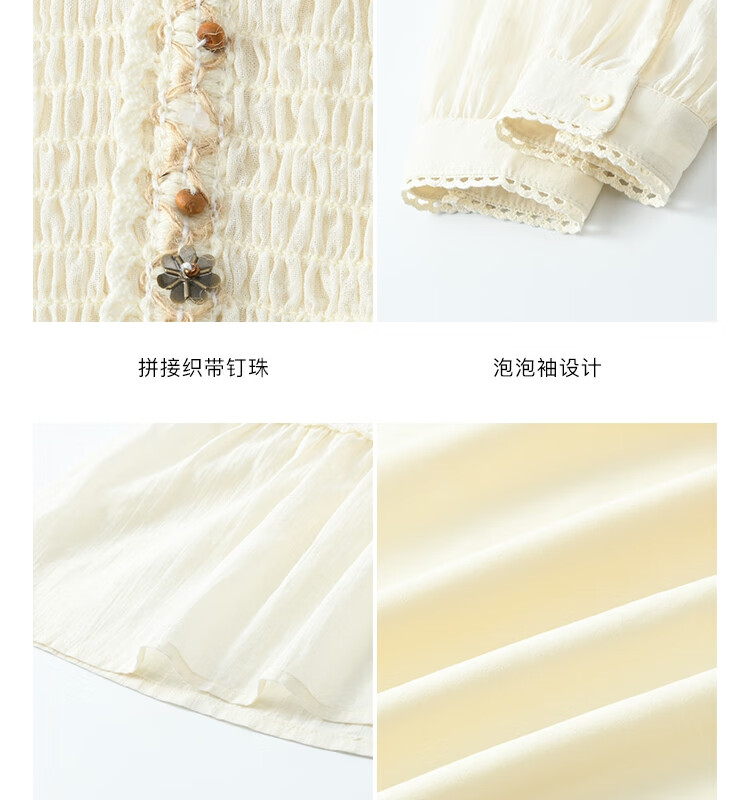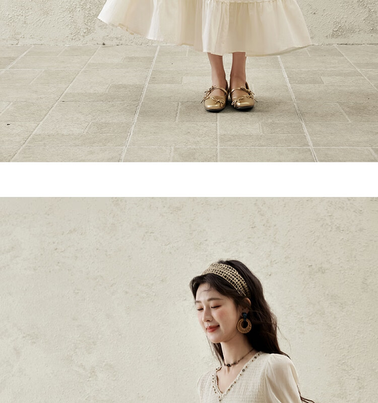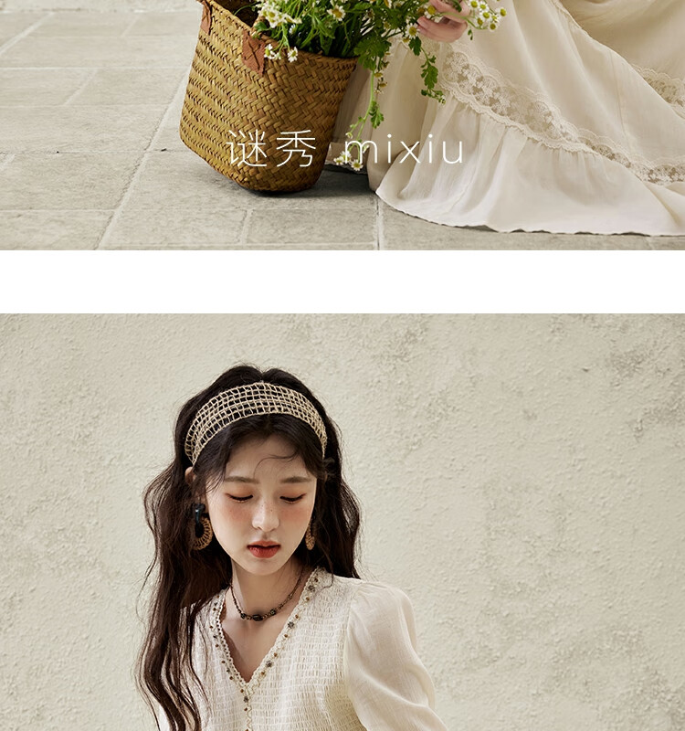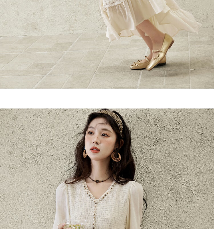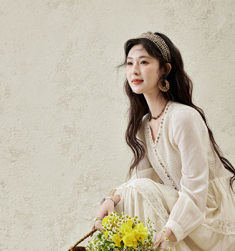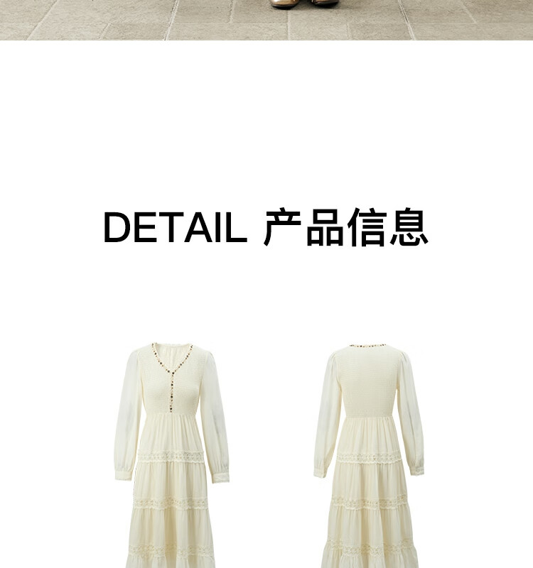 谜秀杏色连衣裙女2025春夏季花边蕾丝拼接复古收腰显瘦度假风长裙 奶糖杏 长款 M