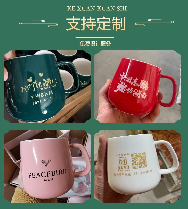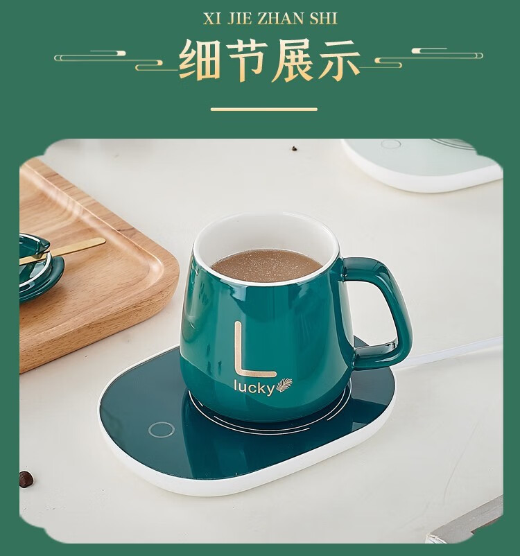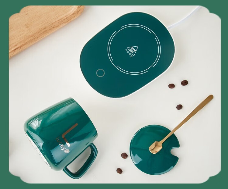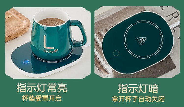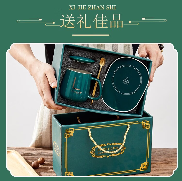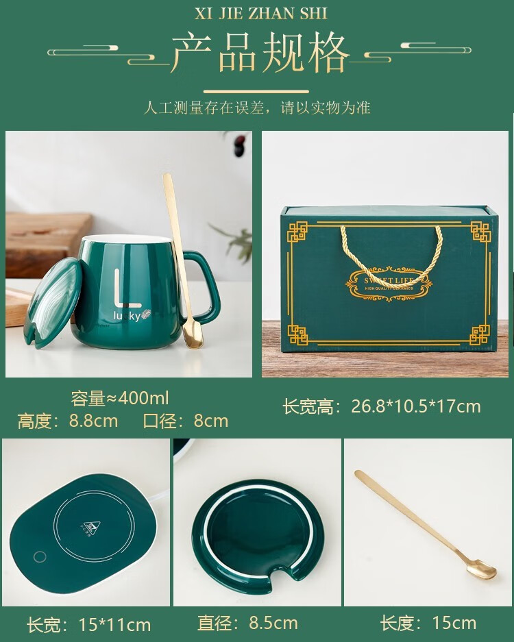 栀臻55度恒温杯加热咖啡杯公司商务定制logo礼品送客户马克杯保温杯 绿色恒温杯礼盒套装 400ml