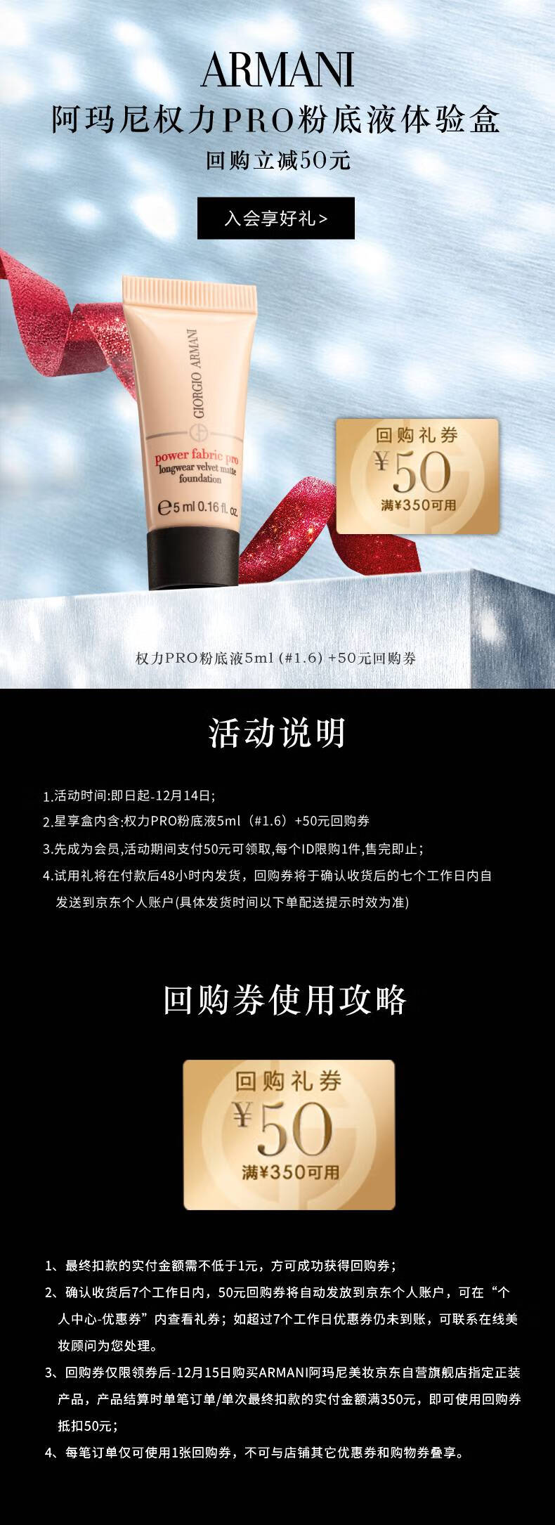 阿玛尼权力PRO粉底液体验礼(权力PRO粉底液5ml #1.6)享大额回购券