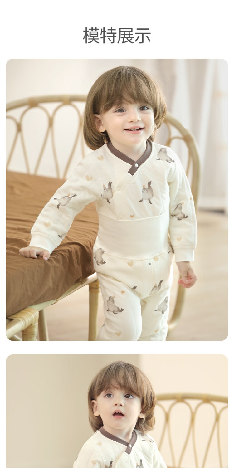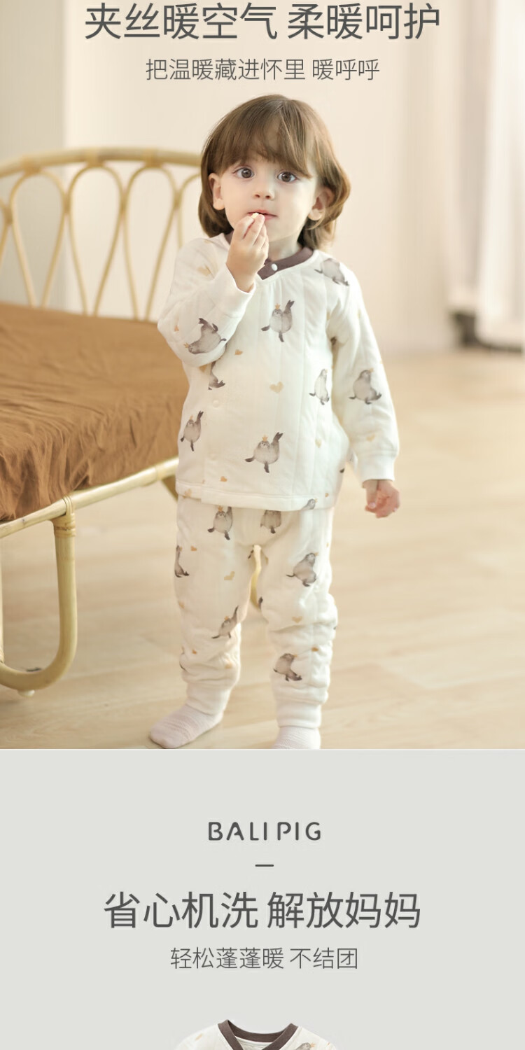 巴厘小猪宝宝秋衣秋裤夹丝加厚保暖男童睡衣女童秋冬分体衣服儿童内衣套装 可爱豹击 80