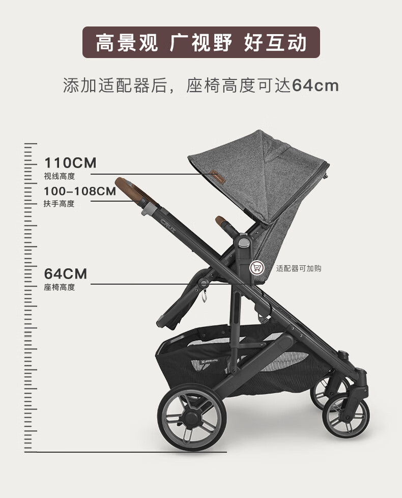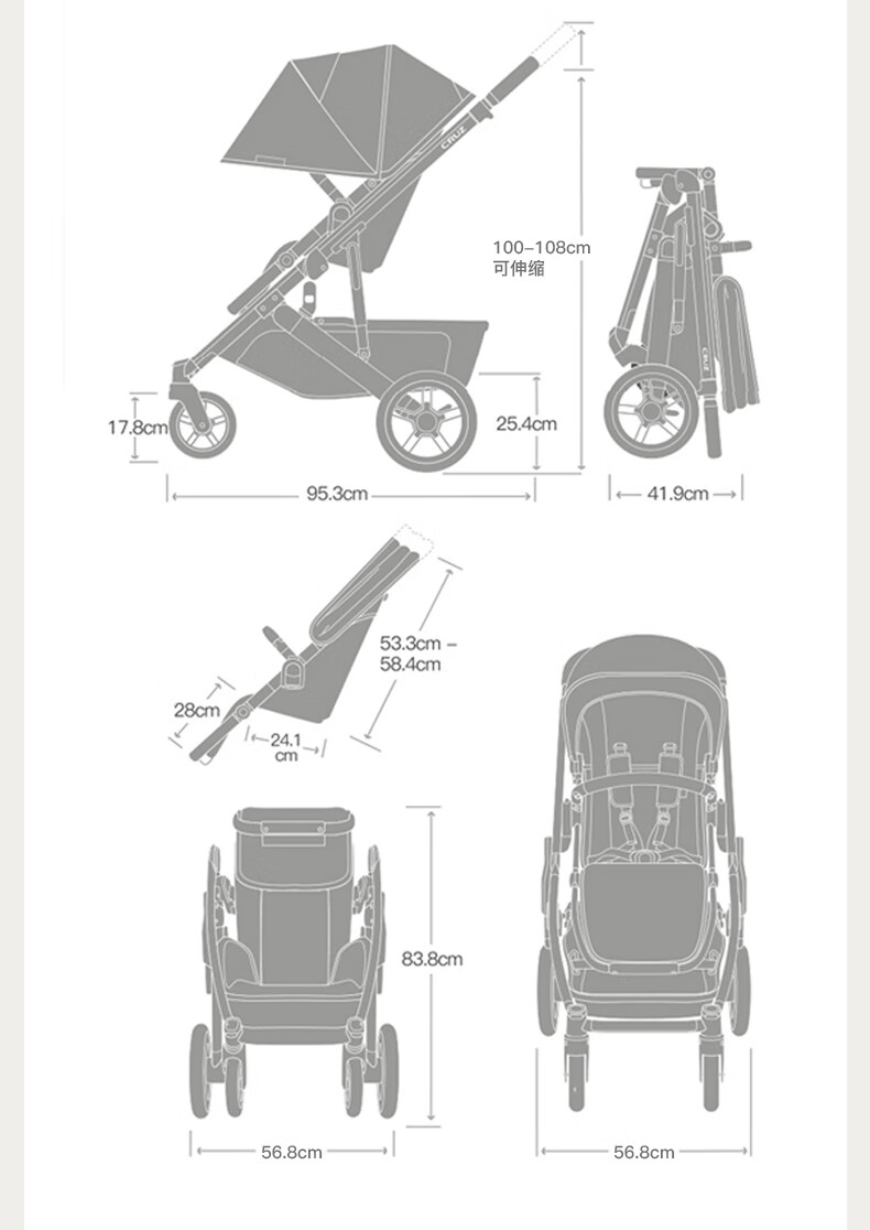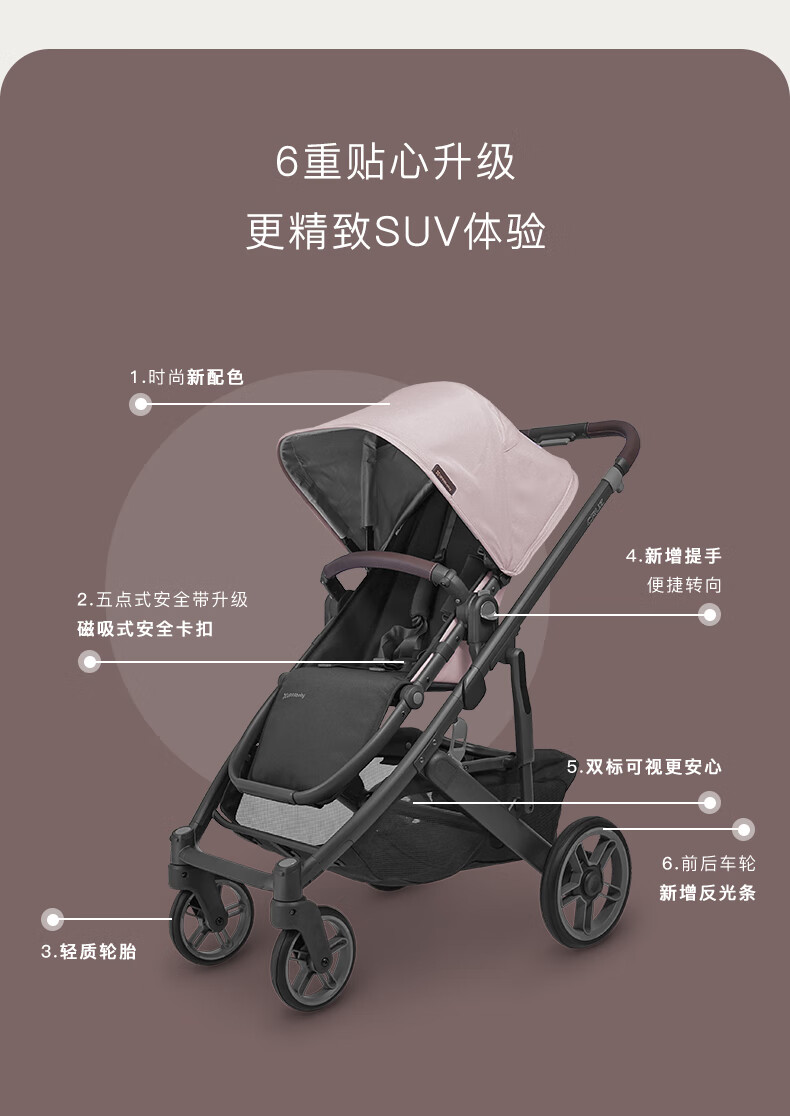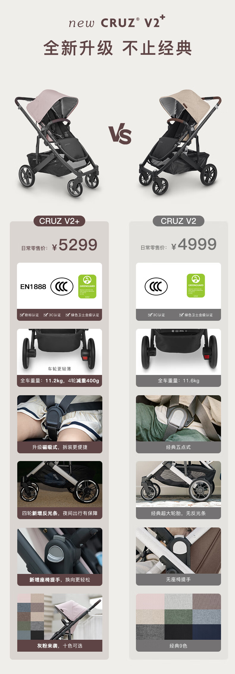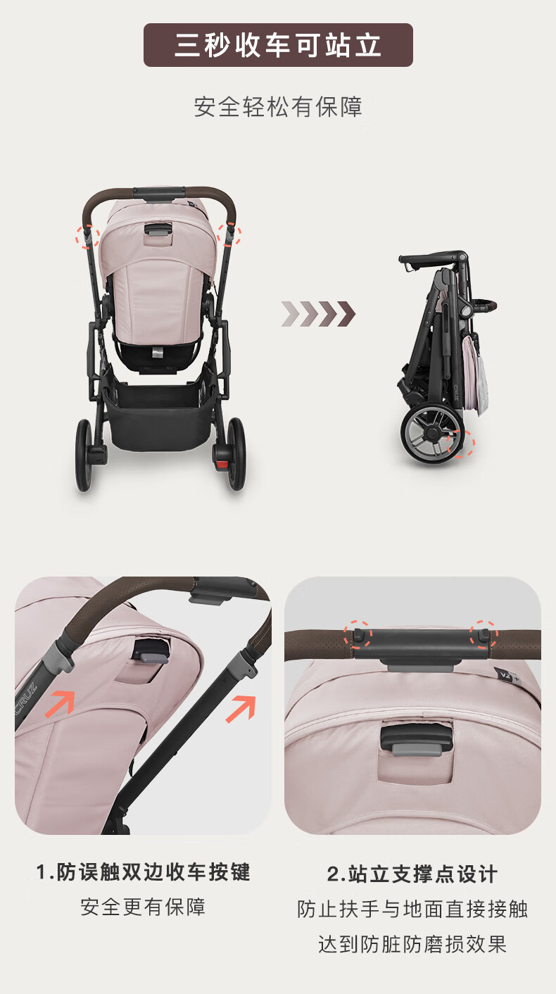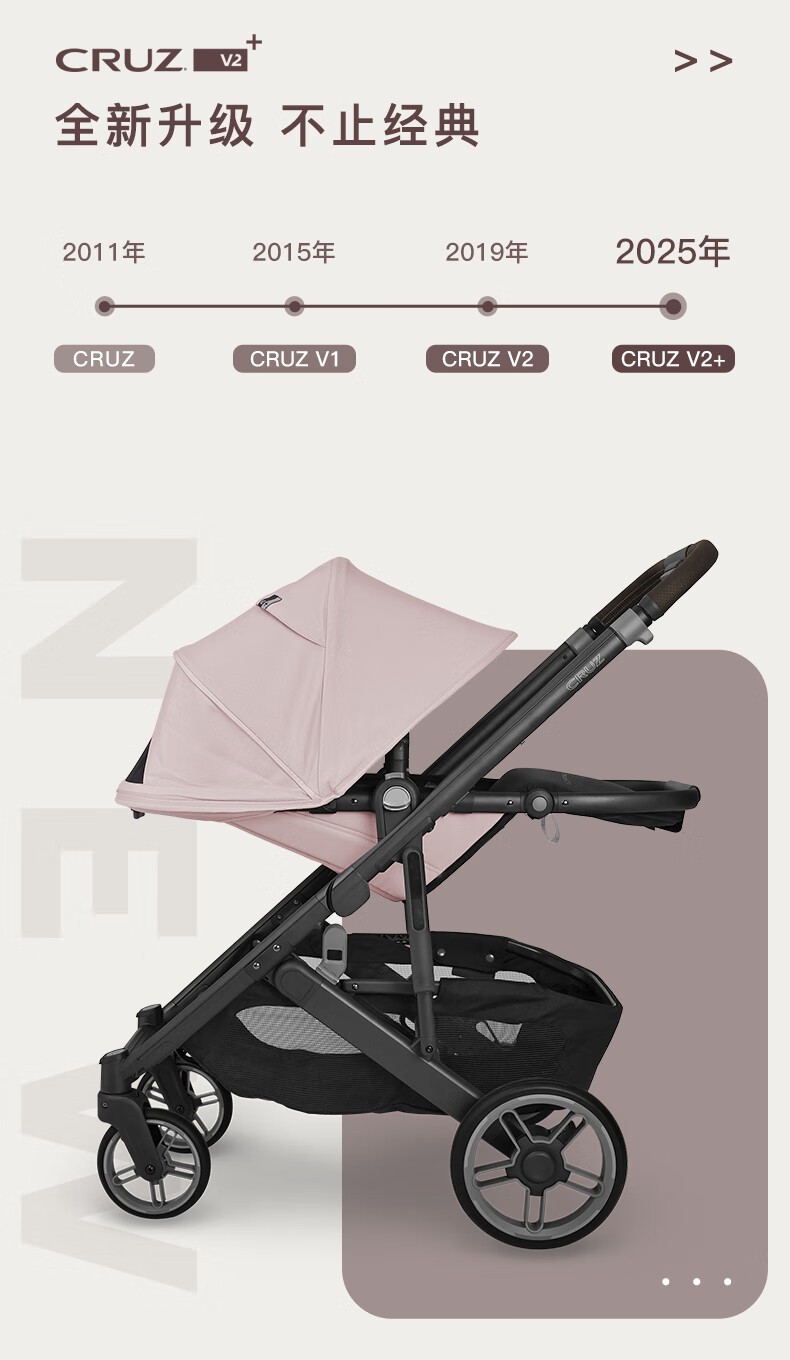 UPPAbabyCRUZ V2+婴儿车高景观婴儿推车双向 可坐可躺 易折叠 宝宝手推车 【CRUZ V2+】灰粉色-新品升级