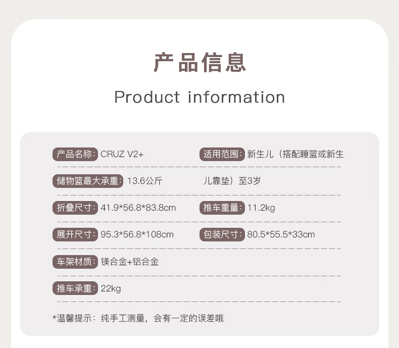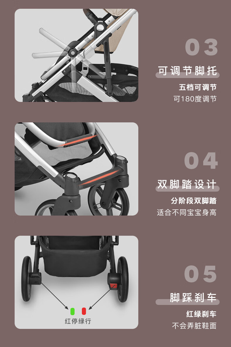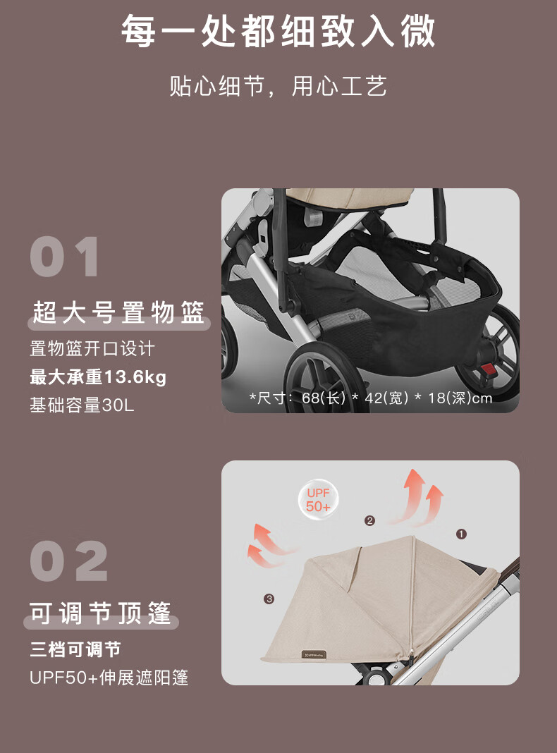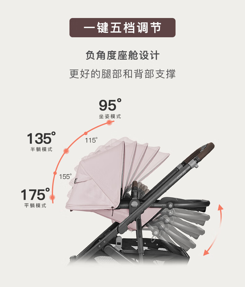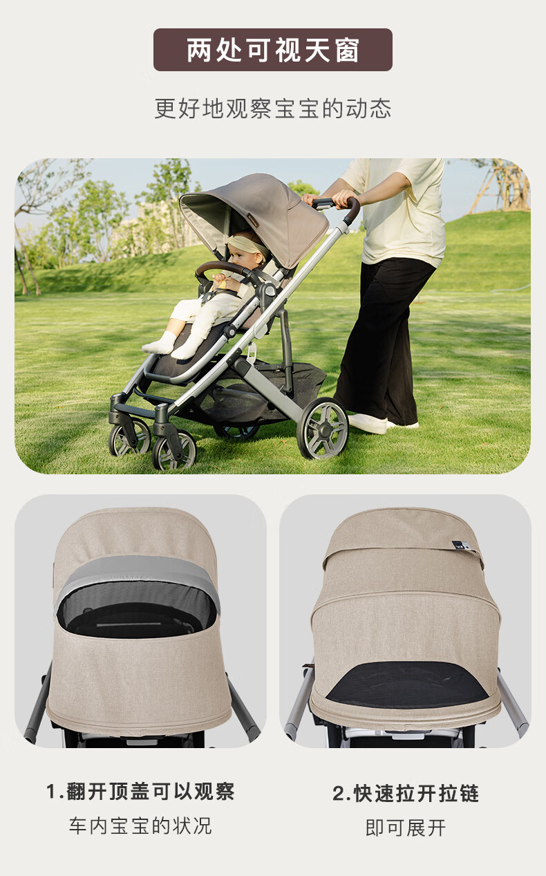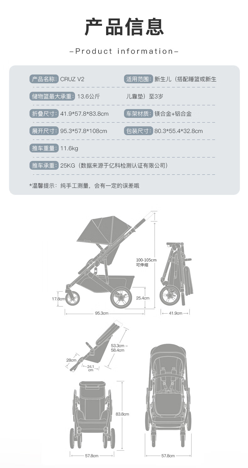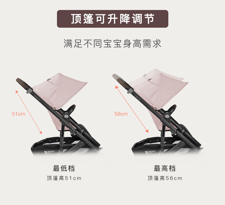 UPPAbabyCRUZ V2+婴儿车高景观婴儿推车双向 可坐可躺 易折叠 宝宝手推车 【CRUZ V2+】灰粉色-新品升级