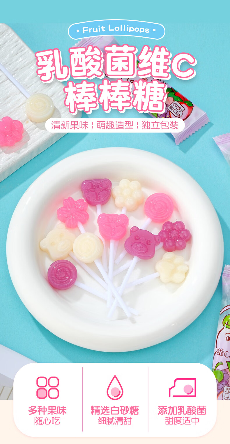 乳酸菌维c棒棒糖多口味水果味高颜值网红儿童糖果零食散装 20支