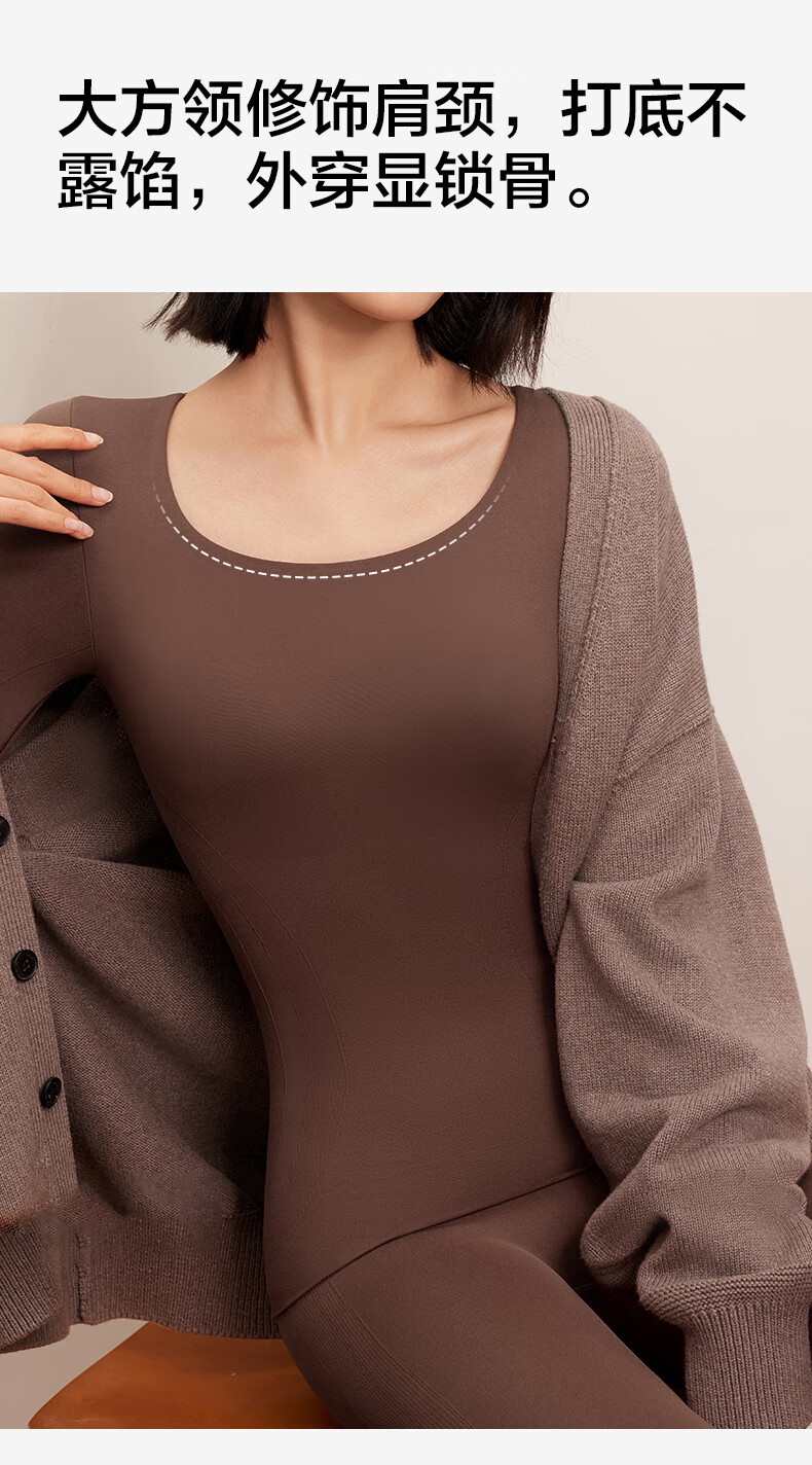 有棵树塑身保暖内衣女修身套装秋冬带胸垫打底衫美体塑型秋衣秋裤 砖红棕 XL 【塑身款尺码偏小】