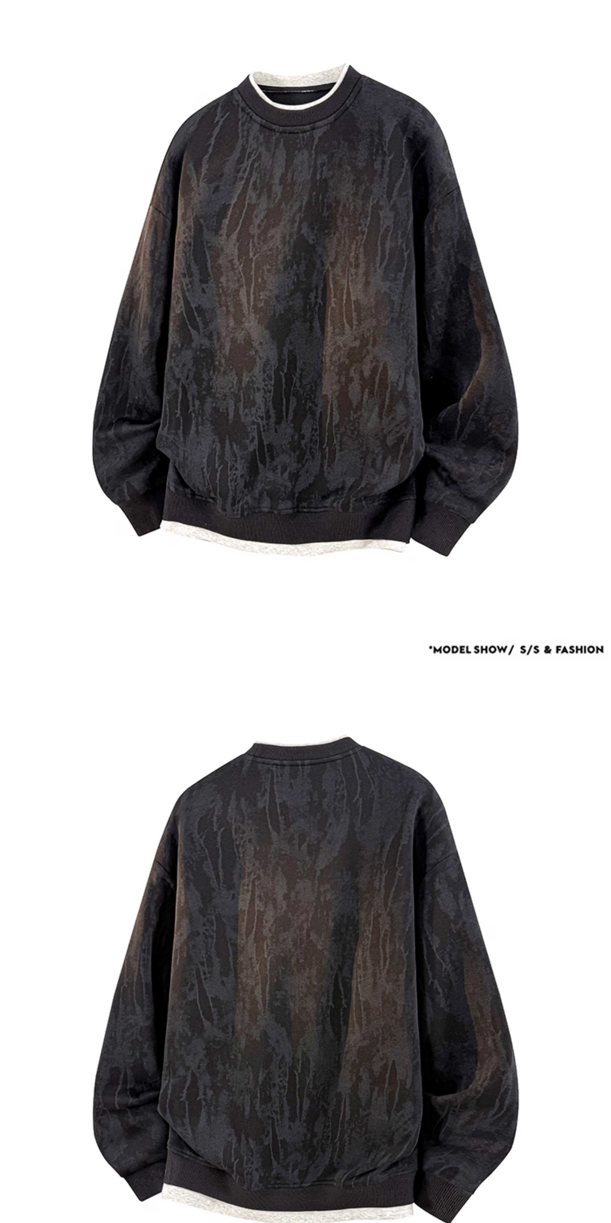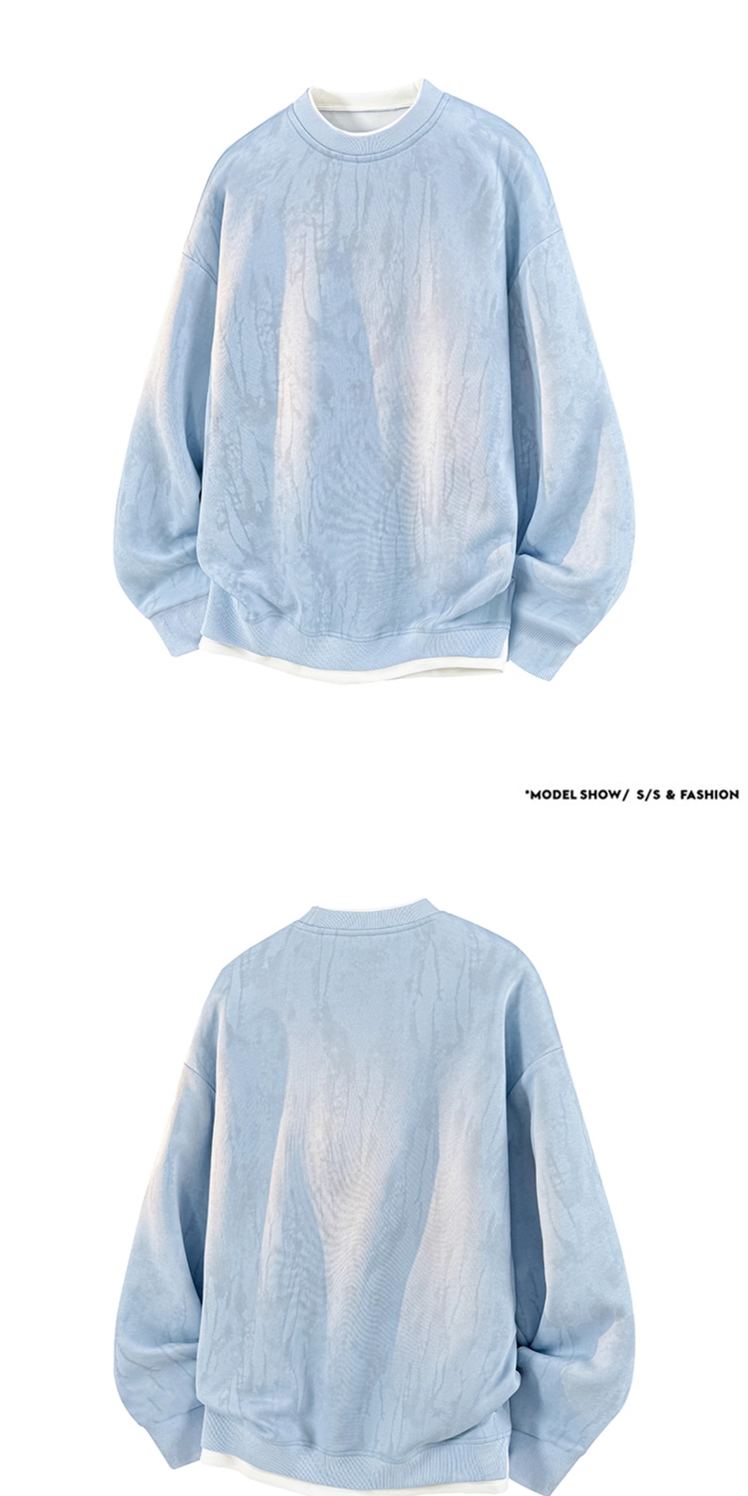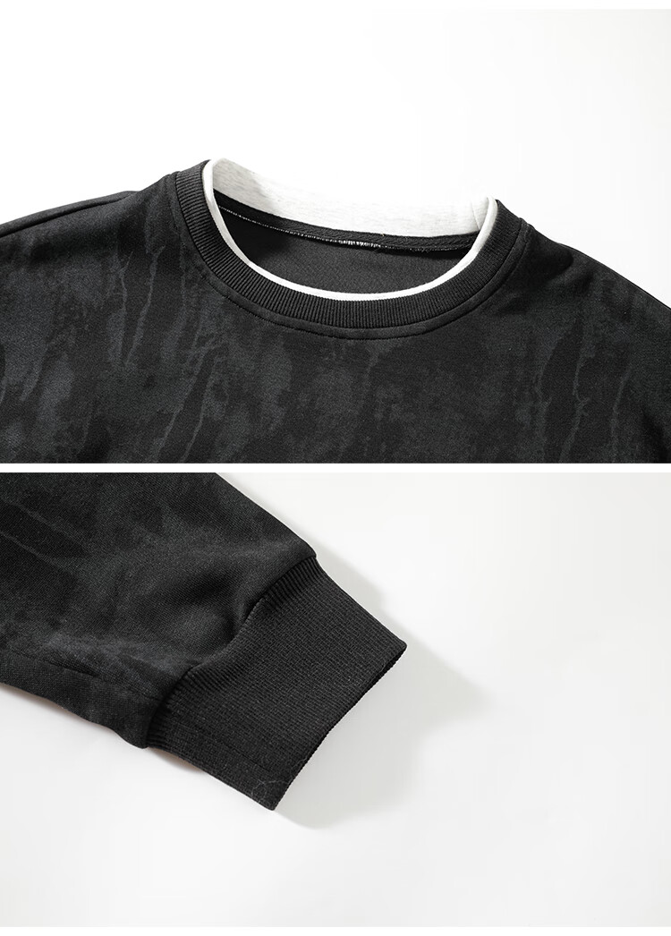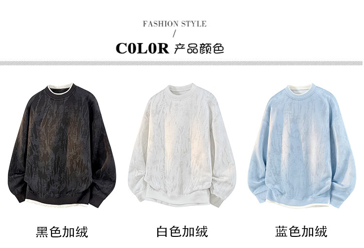 真维斯(Jeanswest)加绒加厚假两件卫衣男秋冬季2025新款扎染重磅圆领保暖打底衫 蓝色加绒 【加绒保暖】 XL 建议141-160斤