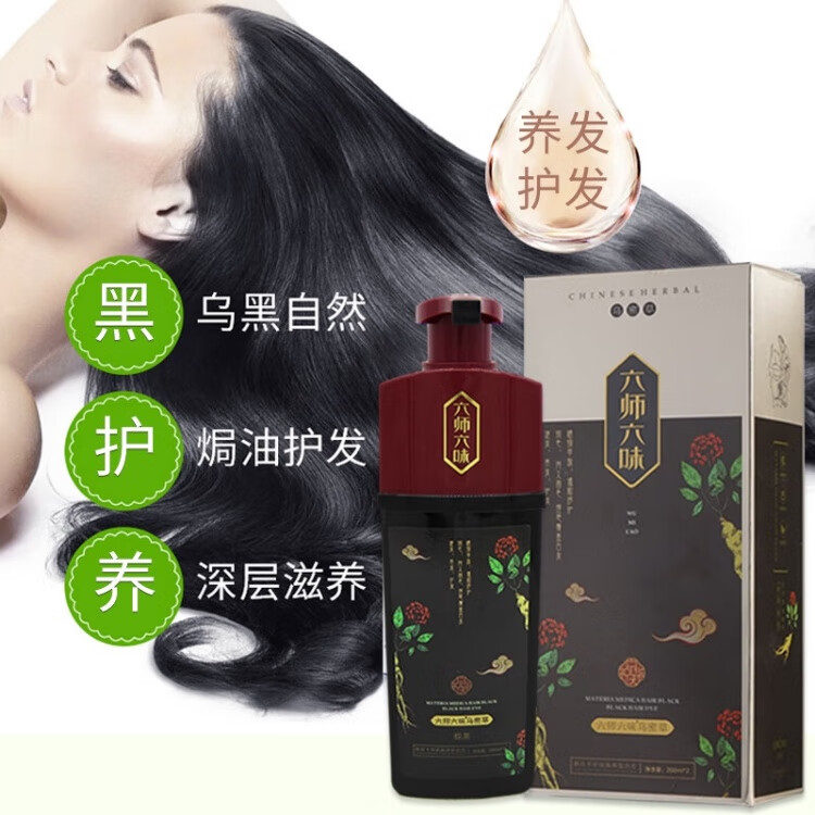 六师六味乌密草清水植物一洗黑遮白发染发膏剂 咖啡色1盒