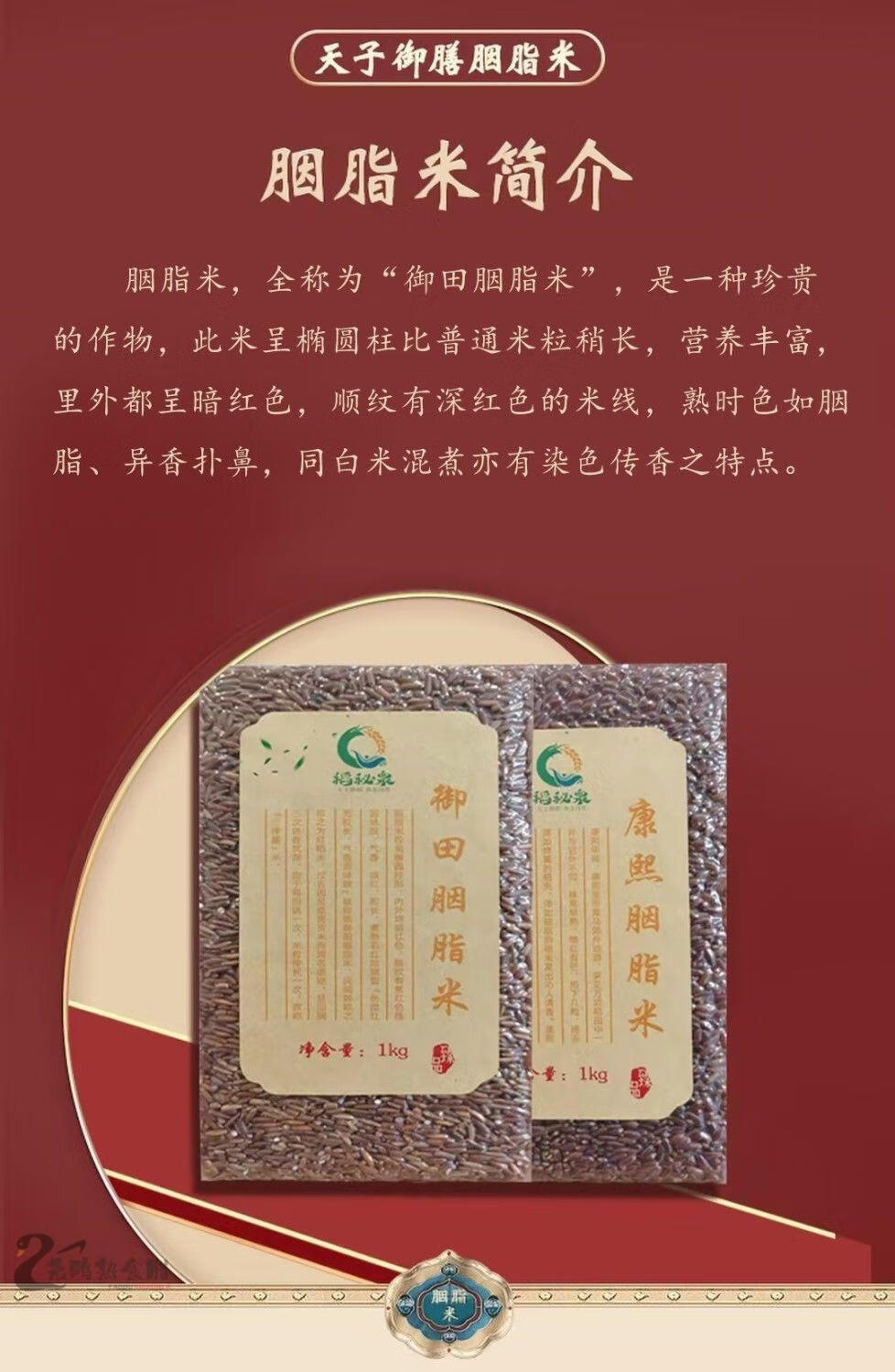 稻秘泉康熙胭脂米唐山特产唐山大米胭脂红贡米御田胭脂稻2斤 御田胭脂米1kg
