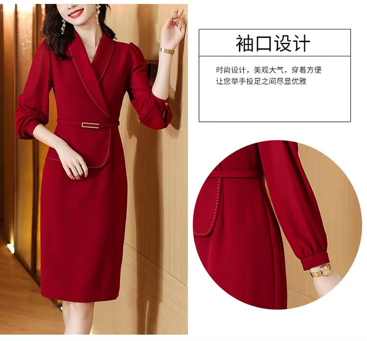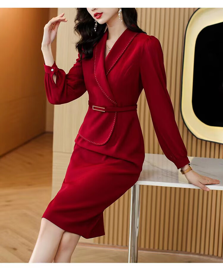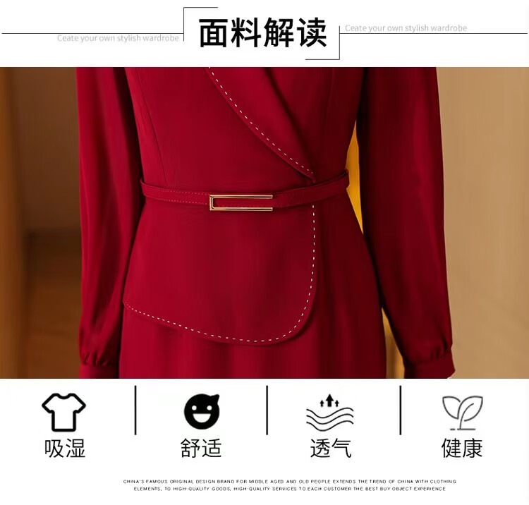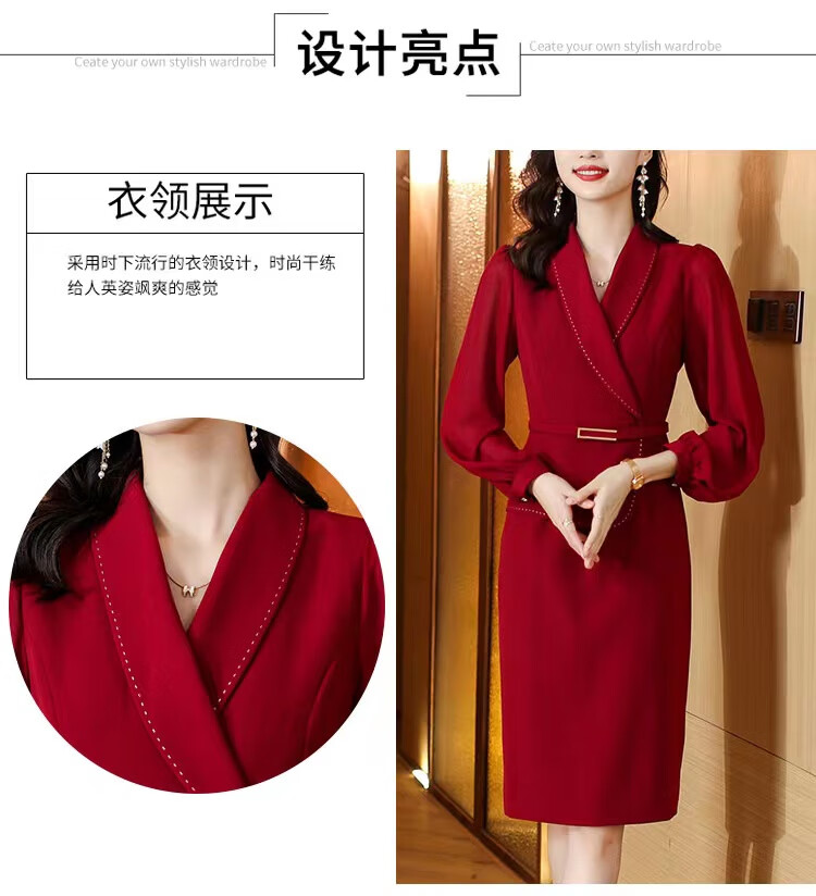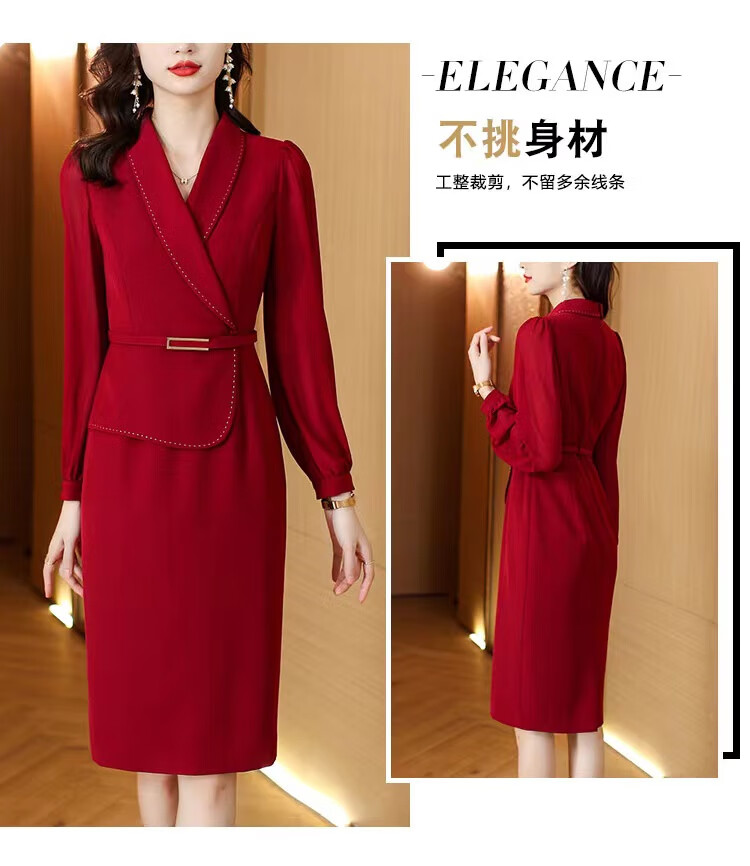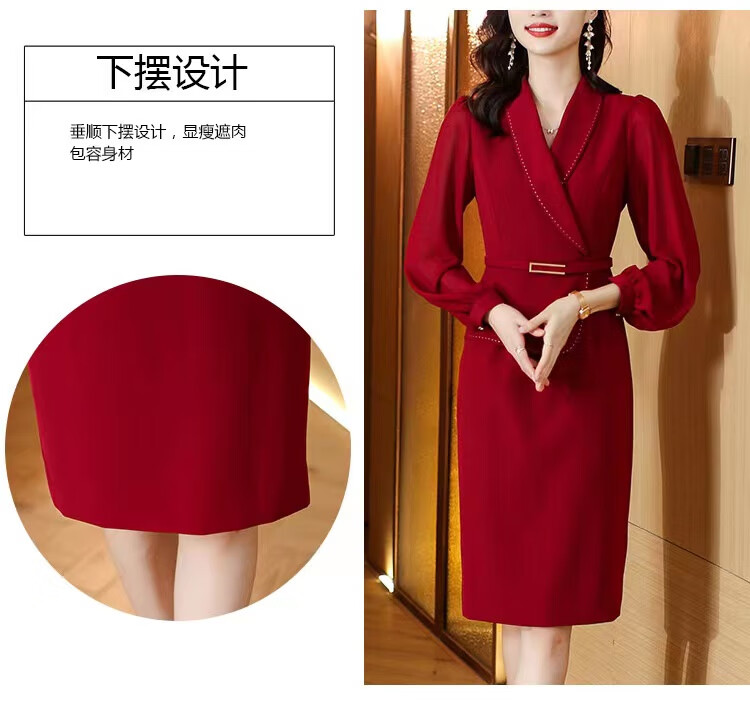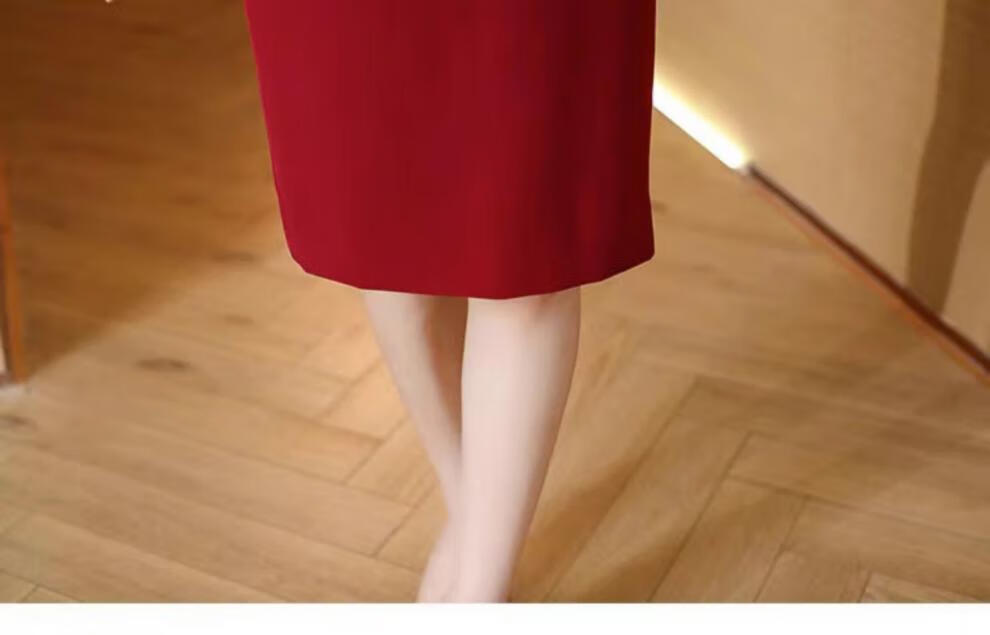 皮尔卡丹(pierre cardin)妈妈喜服婚宴平时可穿气质连衣裙2026新款职业装女士西装包臀裙子 酒红色 M 【80-100斤】