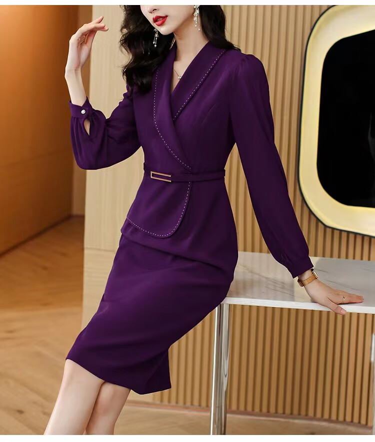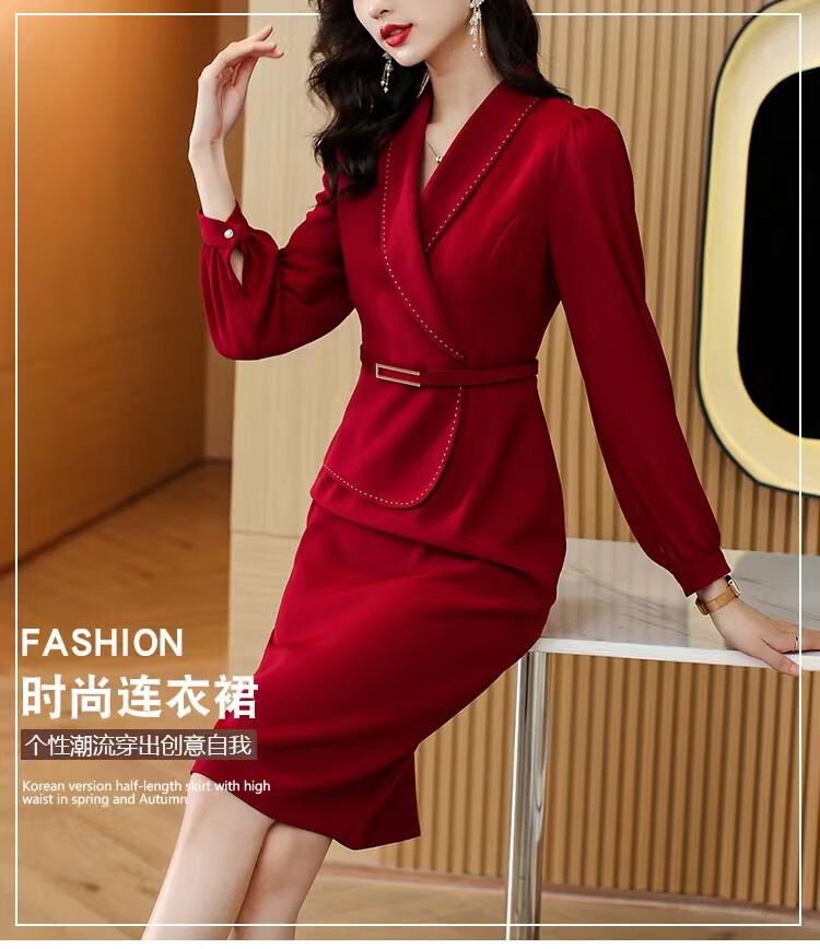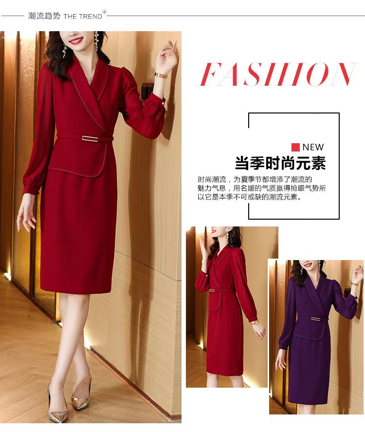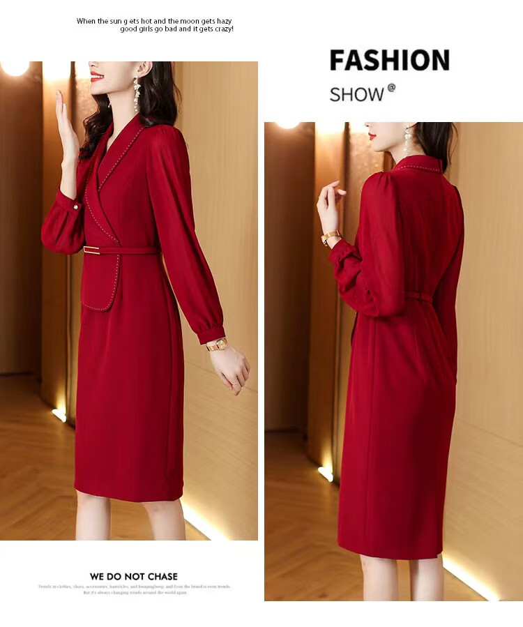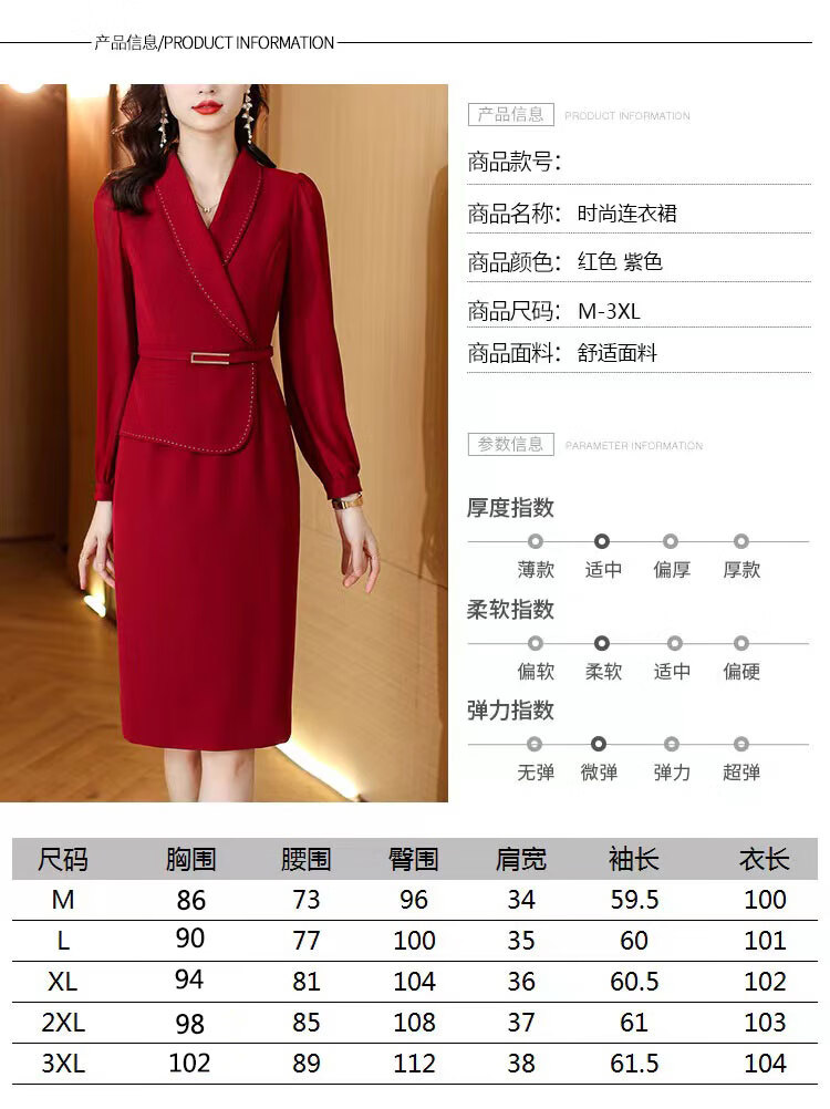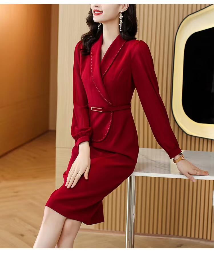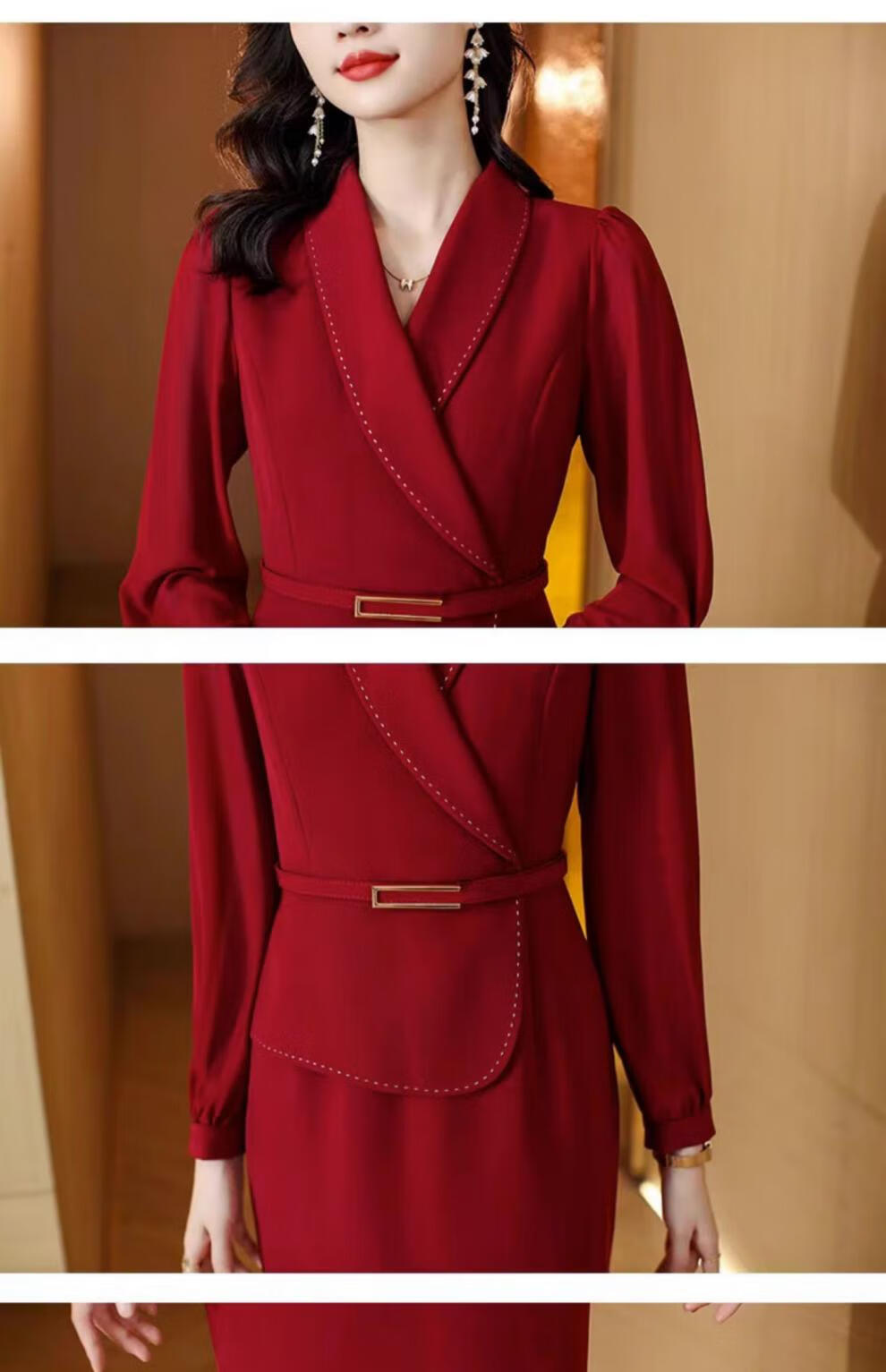 皮尔卡丹(pierre cardin)妈妈喜服婚宴平时可穿气质连衣裙2026新款职业装女士西装包臀裙子 酒红色 M 【80-100斤】