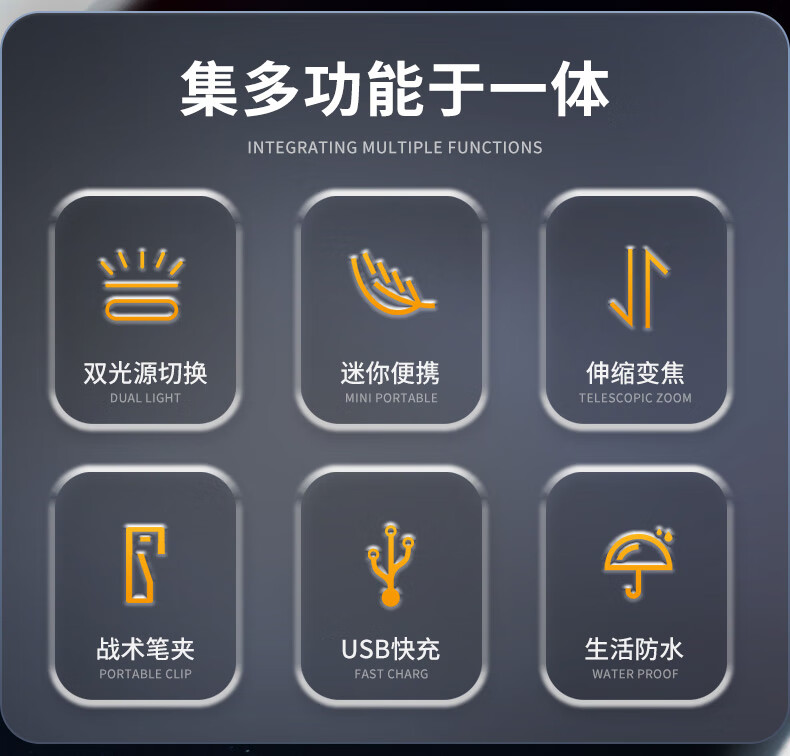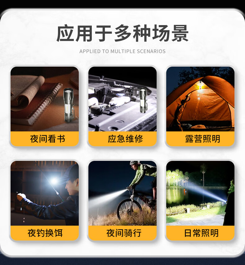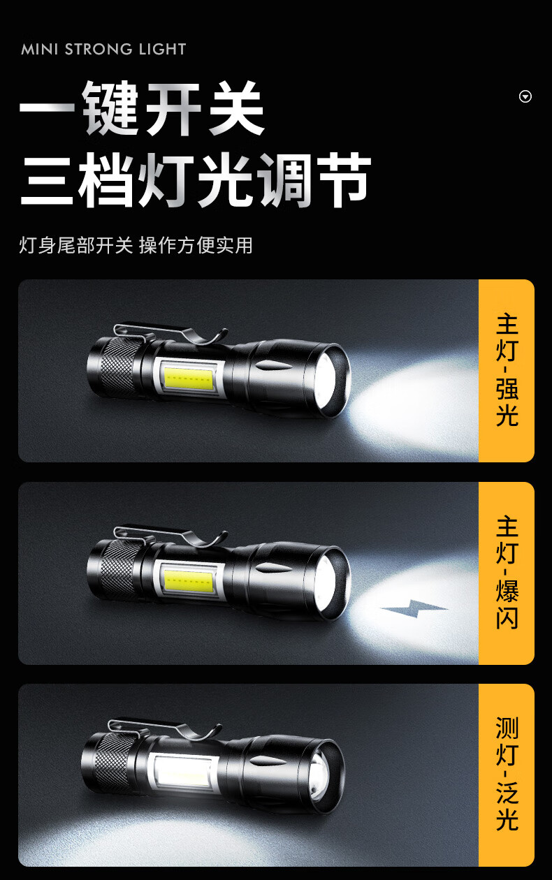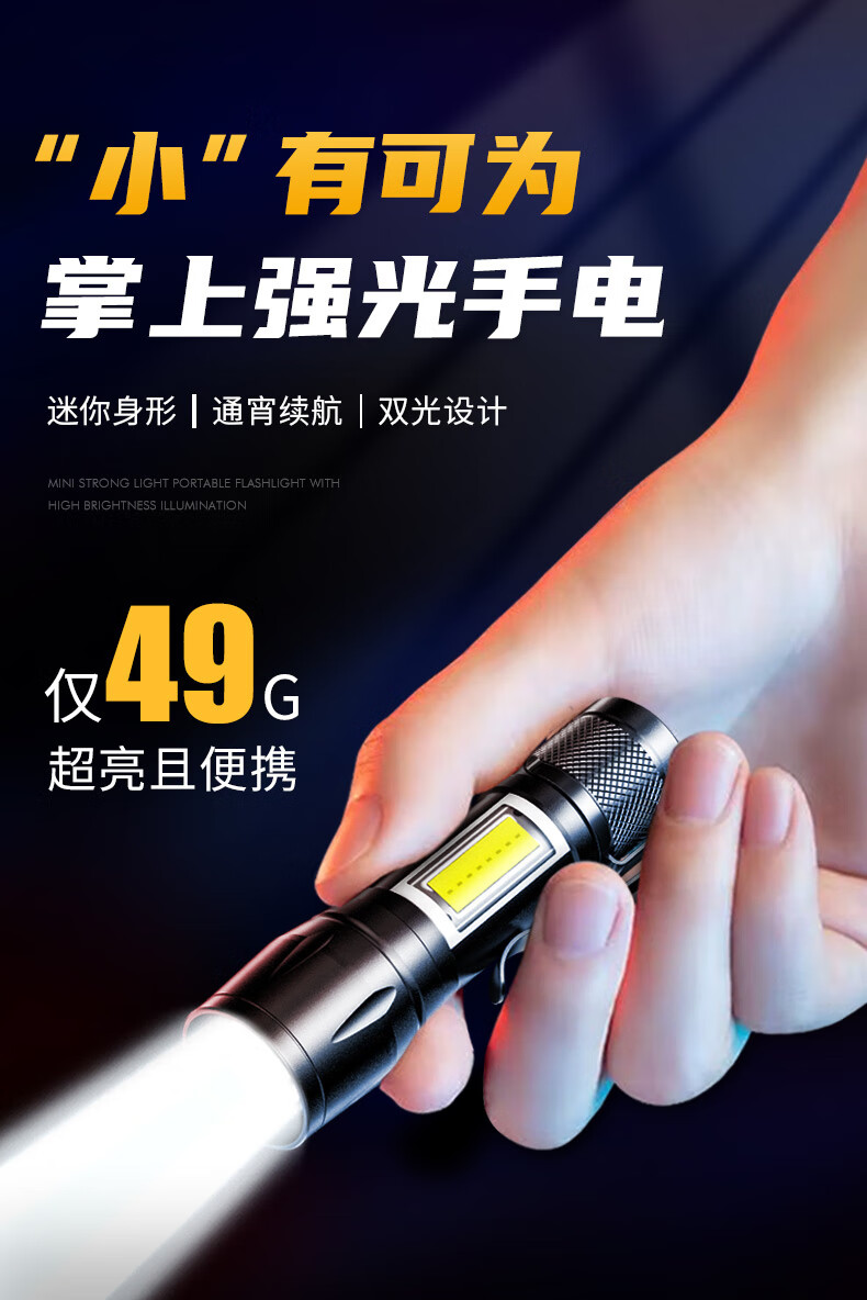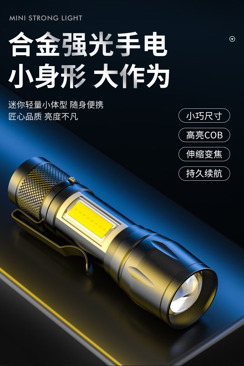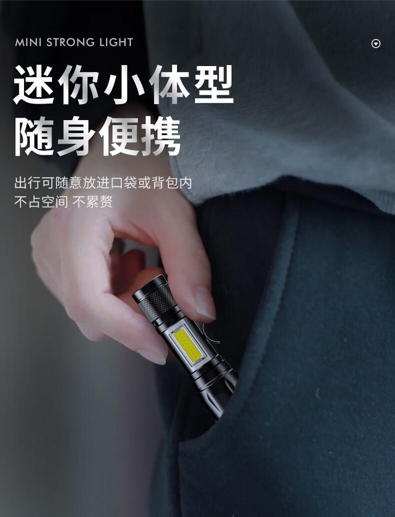 SHENYU迷你小手电筒强光远射可充电LED调焦户外家用便携袖珍COB工作灯