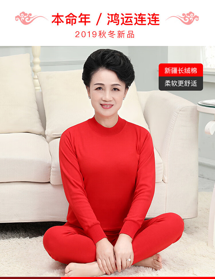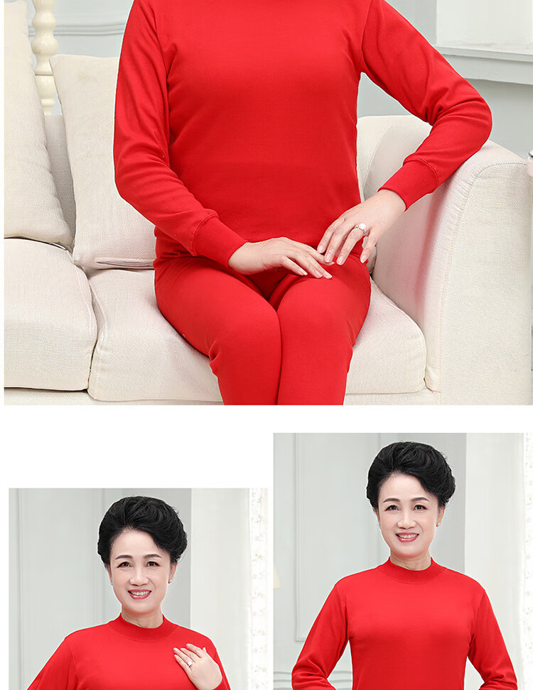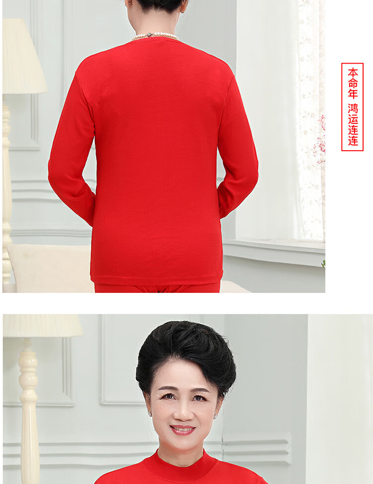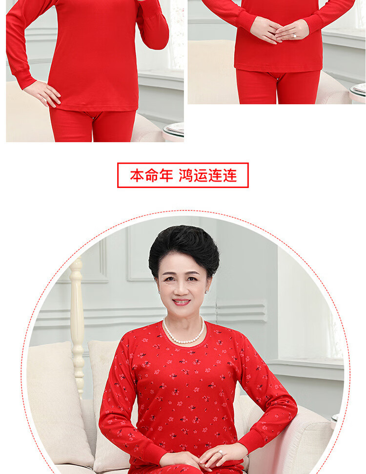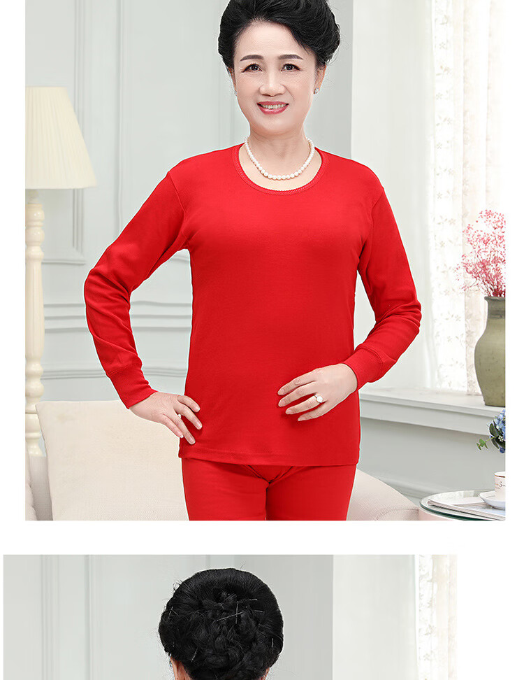中老年人本命年士纯棉妈妈保暖内衣套装大红棉毛衫大码秋衣秋裤 大红纯色(中领) 4XL