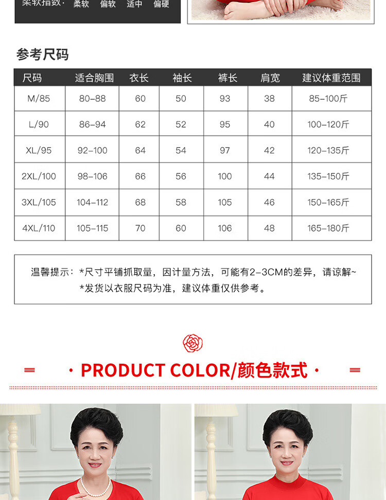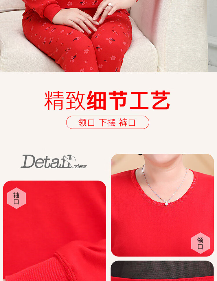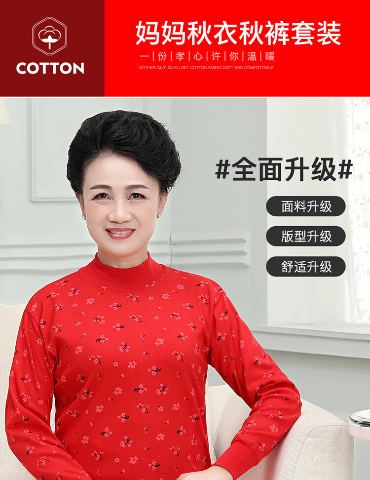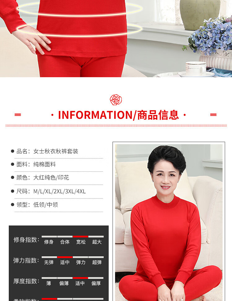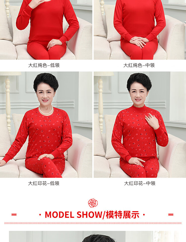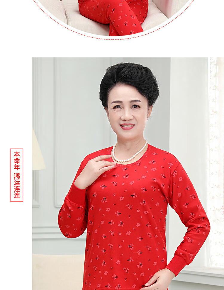 中老年人本命年士纯棉妈妈保暖内衣套装大红棉毛衫大码秋衣秋裤 大红纯色(中领) 4XL