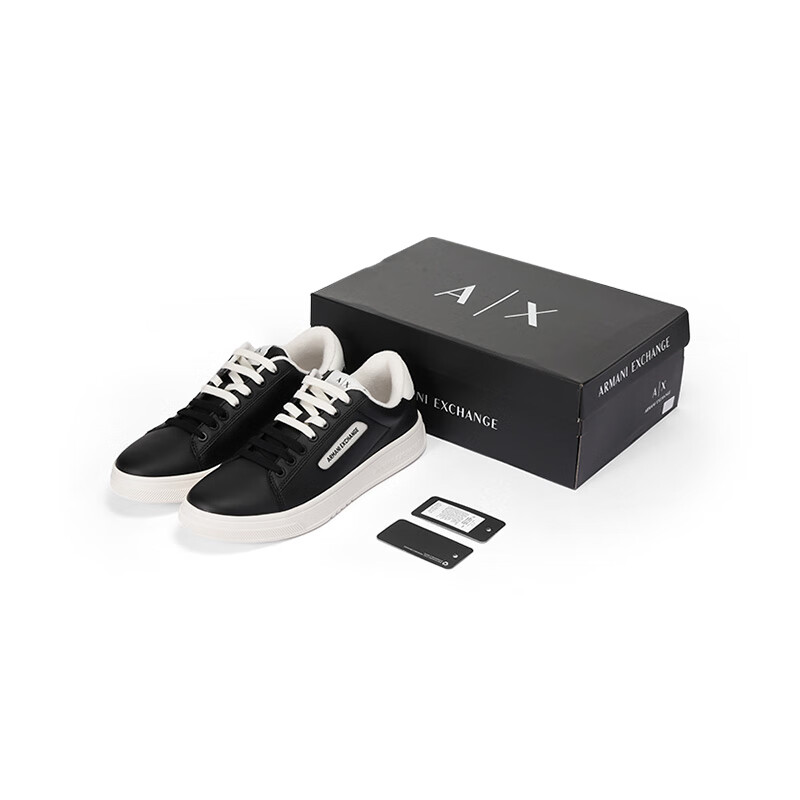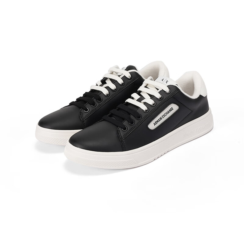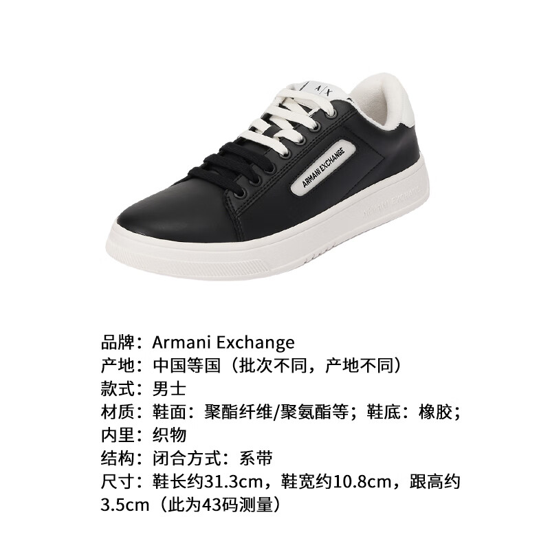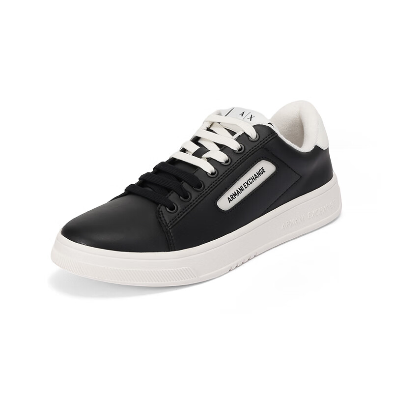 阿玛尼(ARMANI)AX 新品 男士厚底系带板鞋运动休闲鞋礼物男 XUX203 XV805 N814 黑色白尾 40