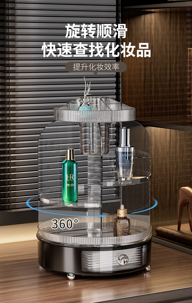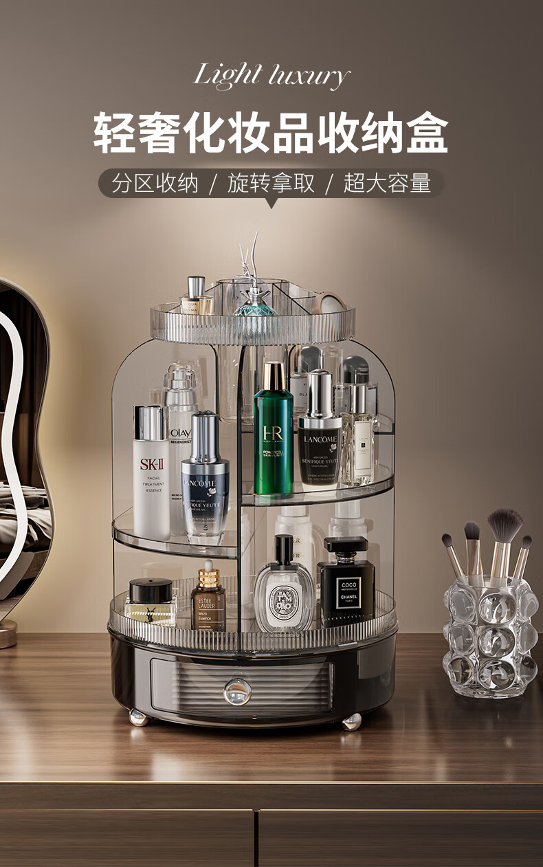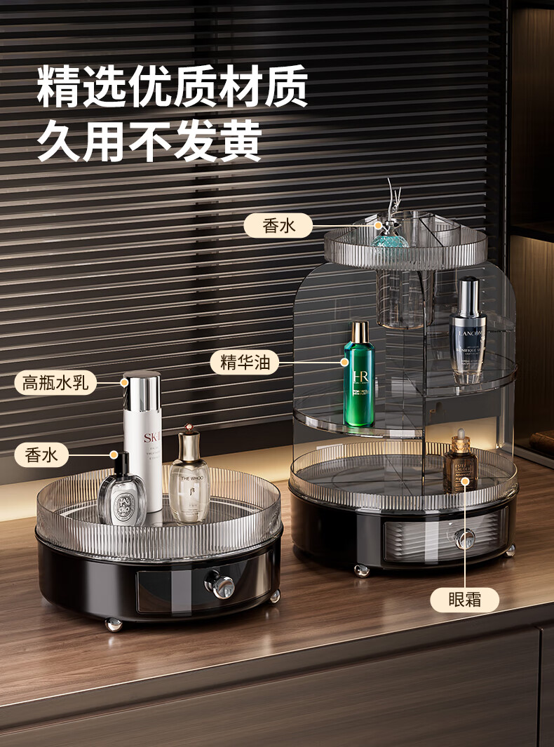 KAMAN旋转化妆品收纳盒2025新款黑色高级感护肤品置物架化妆刷桶口红盒 旋转化妆盒【高款】1个