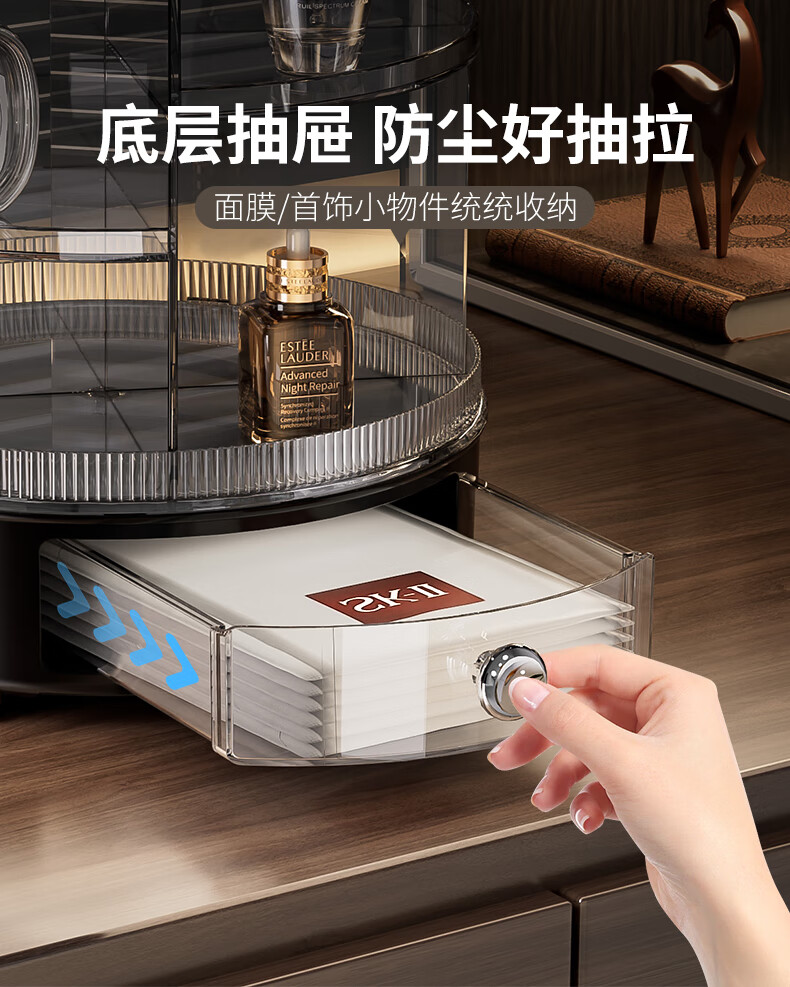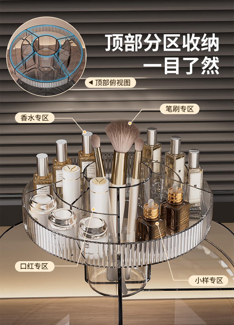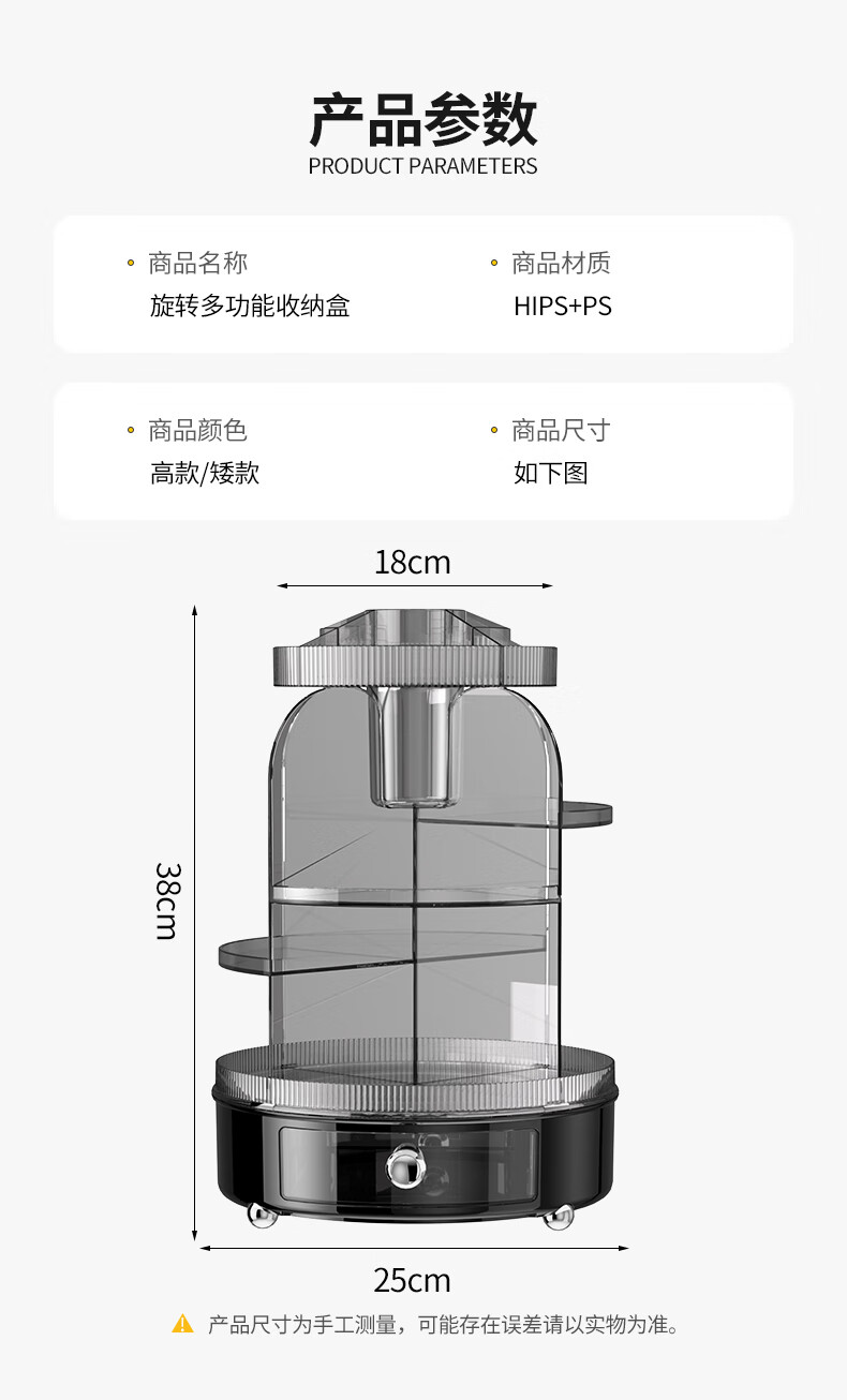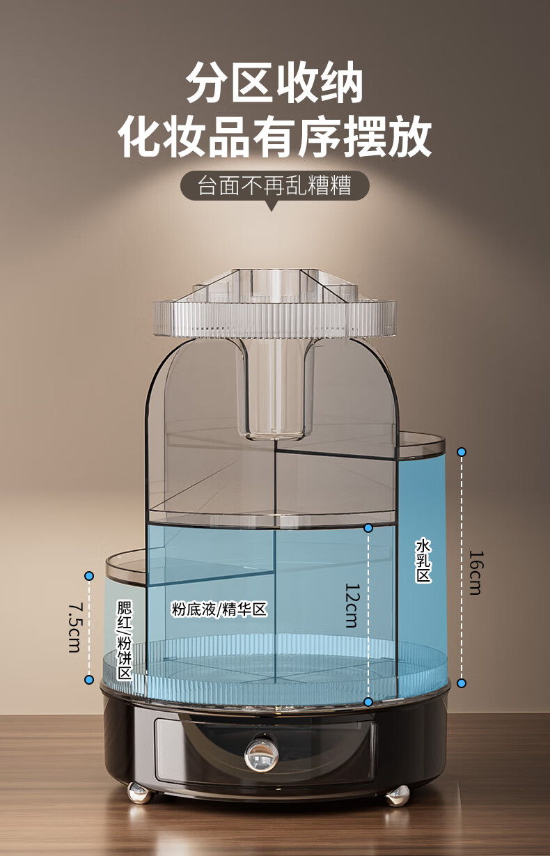 KAMAN旋转化妆品收纳盒2025新款黑色高级感护肤品置物架化妆刷桶口红盒 旋转化妆盒【高款】1个