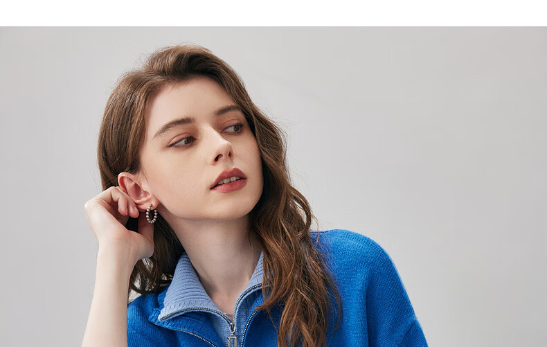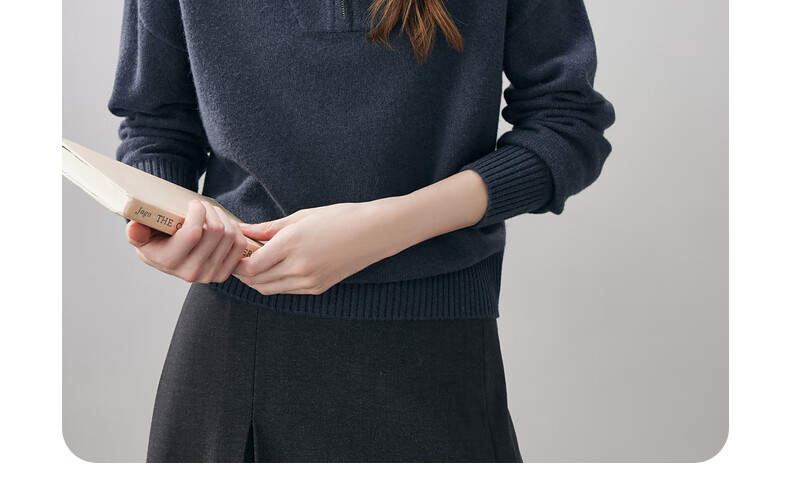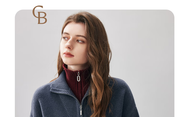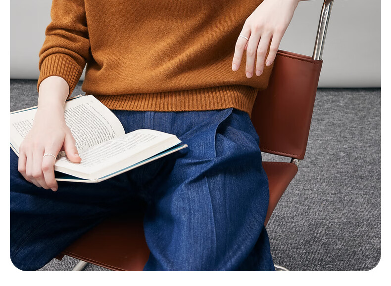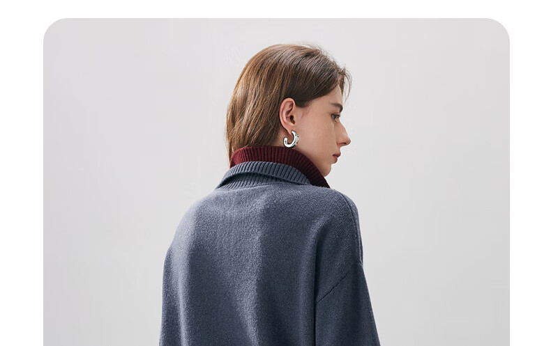 科蒙博卡2025秋冬新款翻领加厚羊毛衫女装假两件针织衫宽松撞色毛衣 焦糖色 M