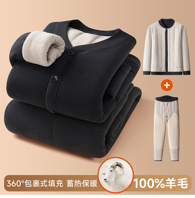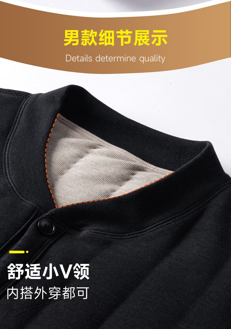 中老年人男装保暖内衣套装爸爸冬装加绒开衫棉衣爷爷冬季加厚衣服 灰色 B02 6XL 建议160-180斤